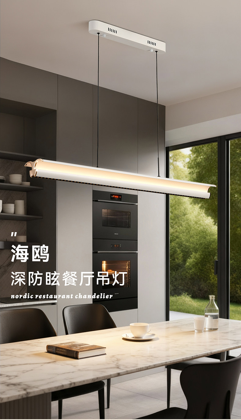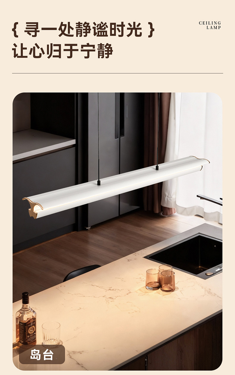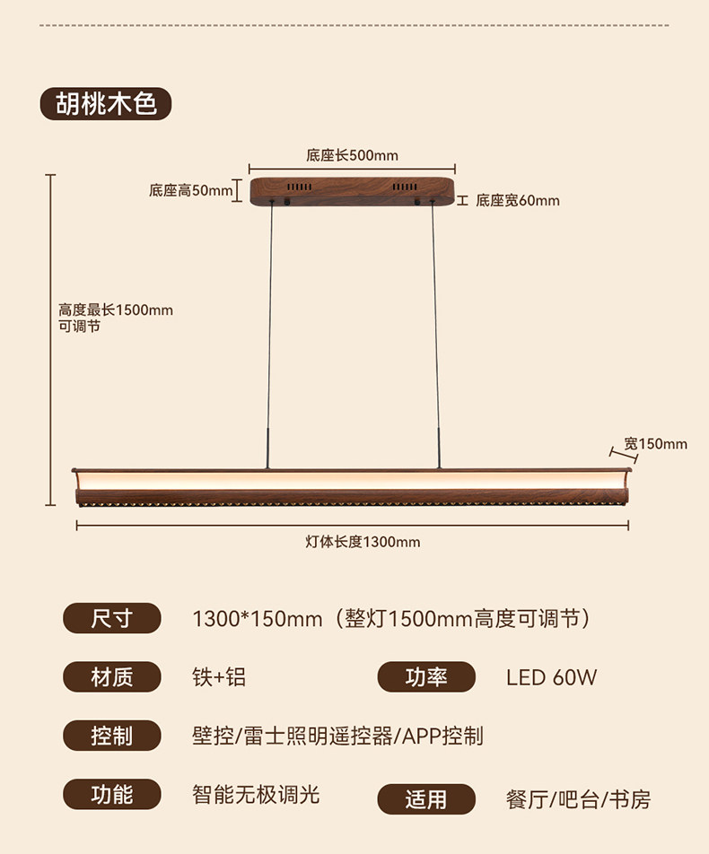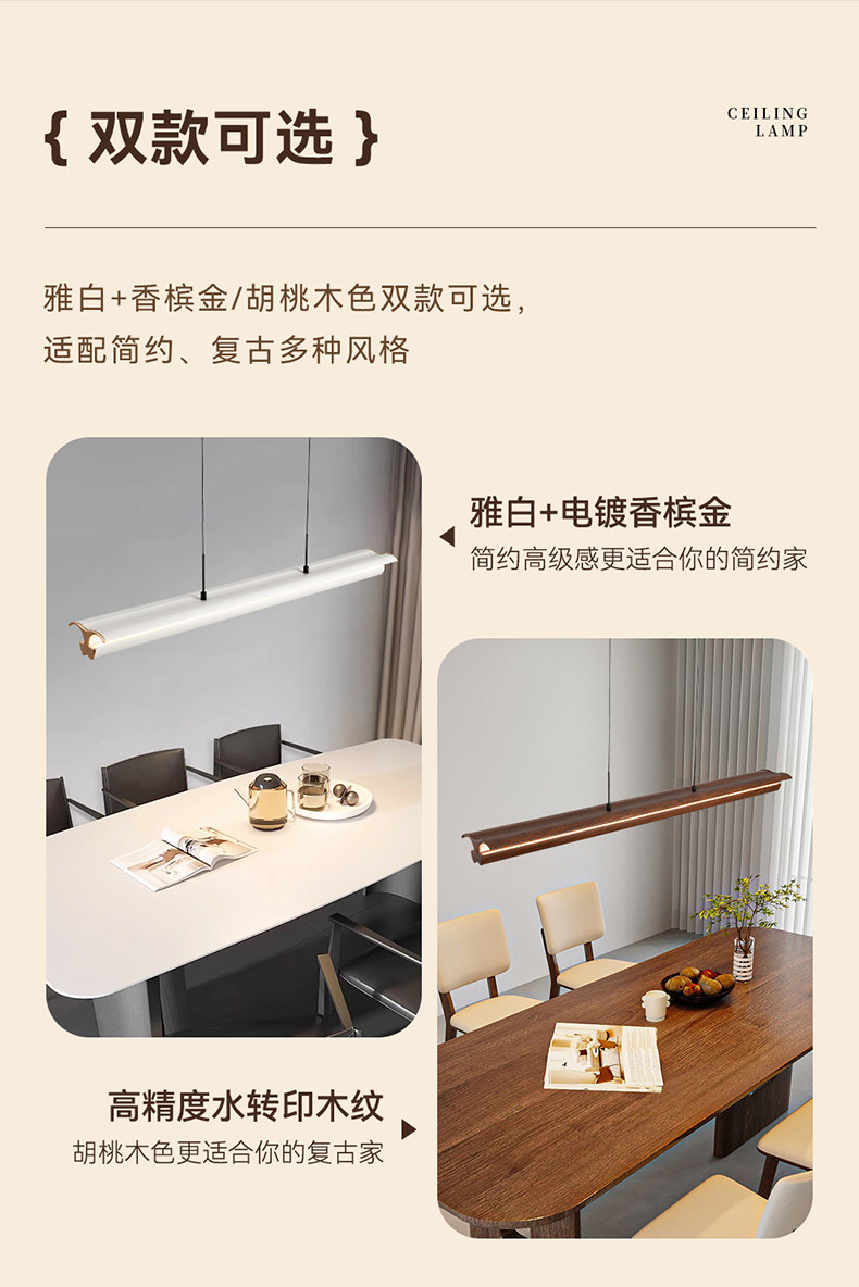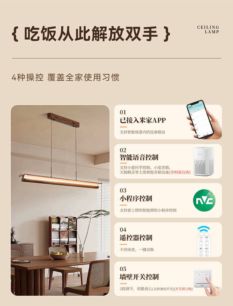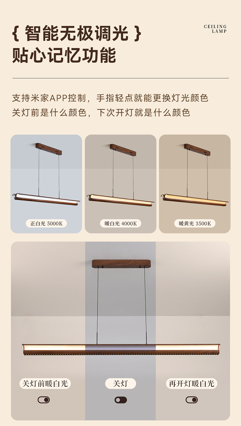 Nvc Lighting Mid-Century Walnut-Colored Smart Dining Room Chandelier Song-Style Aesthetic Eye-Protection Anti-Glare Island Bar Lamp