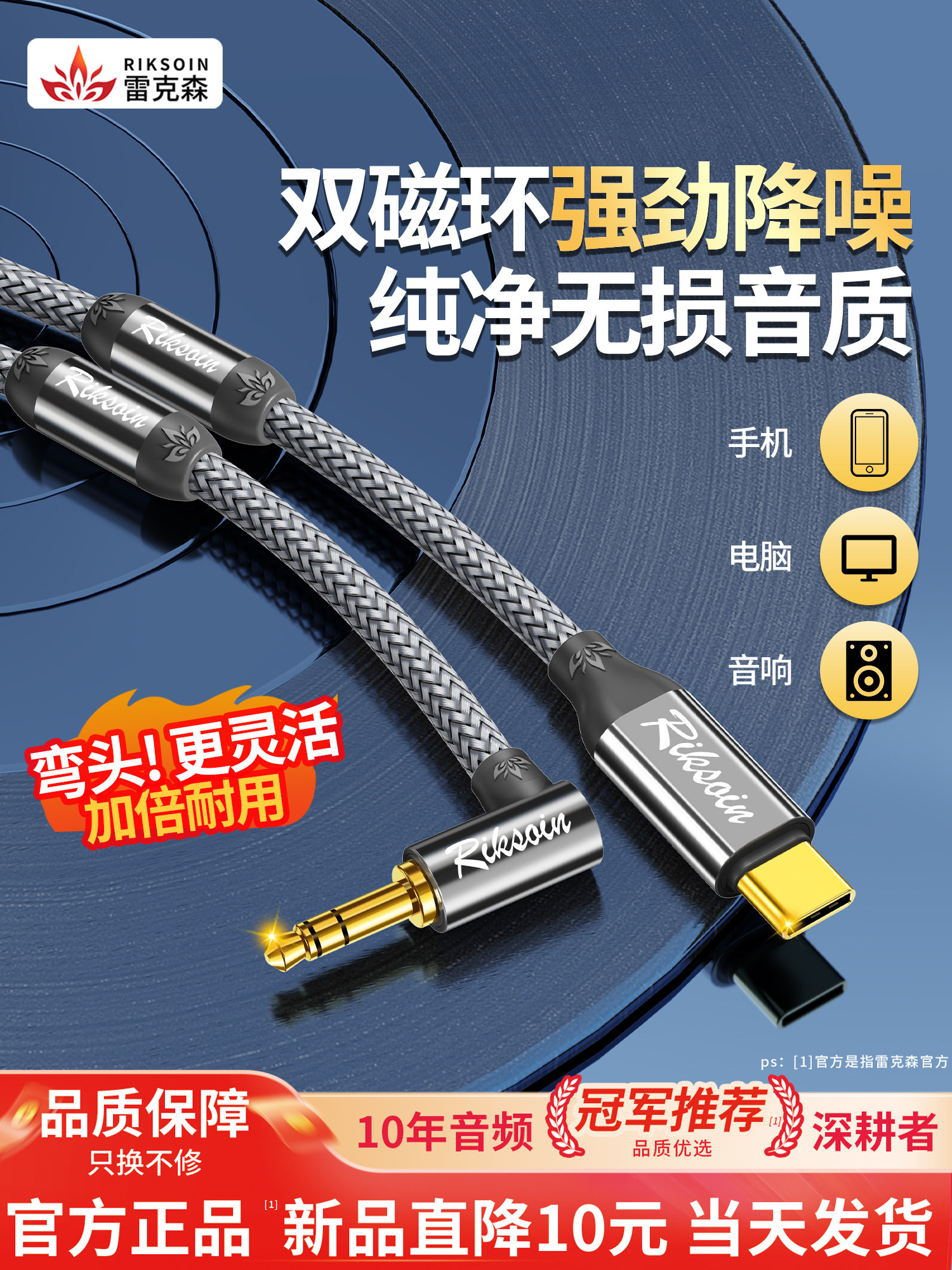Rexon Type-C to 3.5mm Audio Cable with Right-Angle Connector for Car Audio Speakers, Aux Magnetic Ring, Strong Noise Reduction, Computer and Mobile Phone Output Adapter for Car Playback, Headphone Cable Connection Line