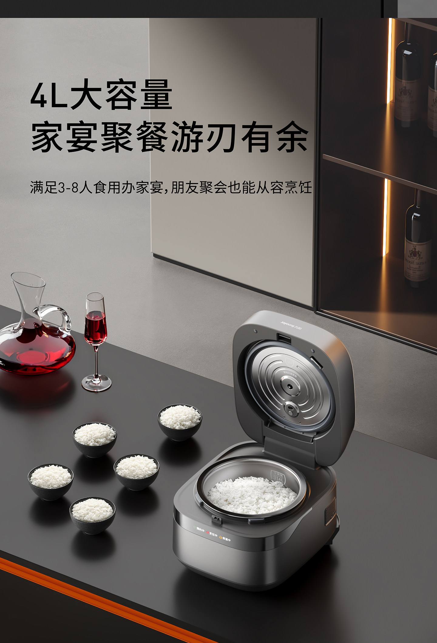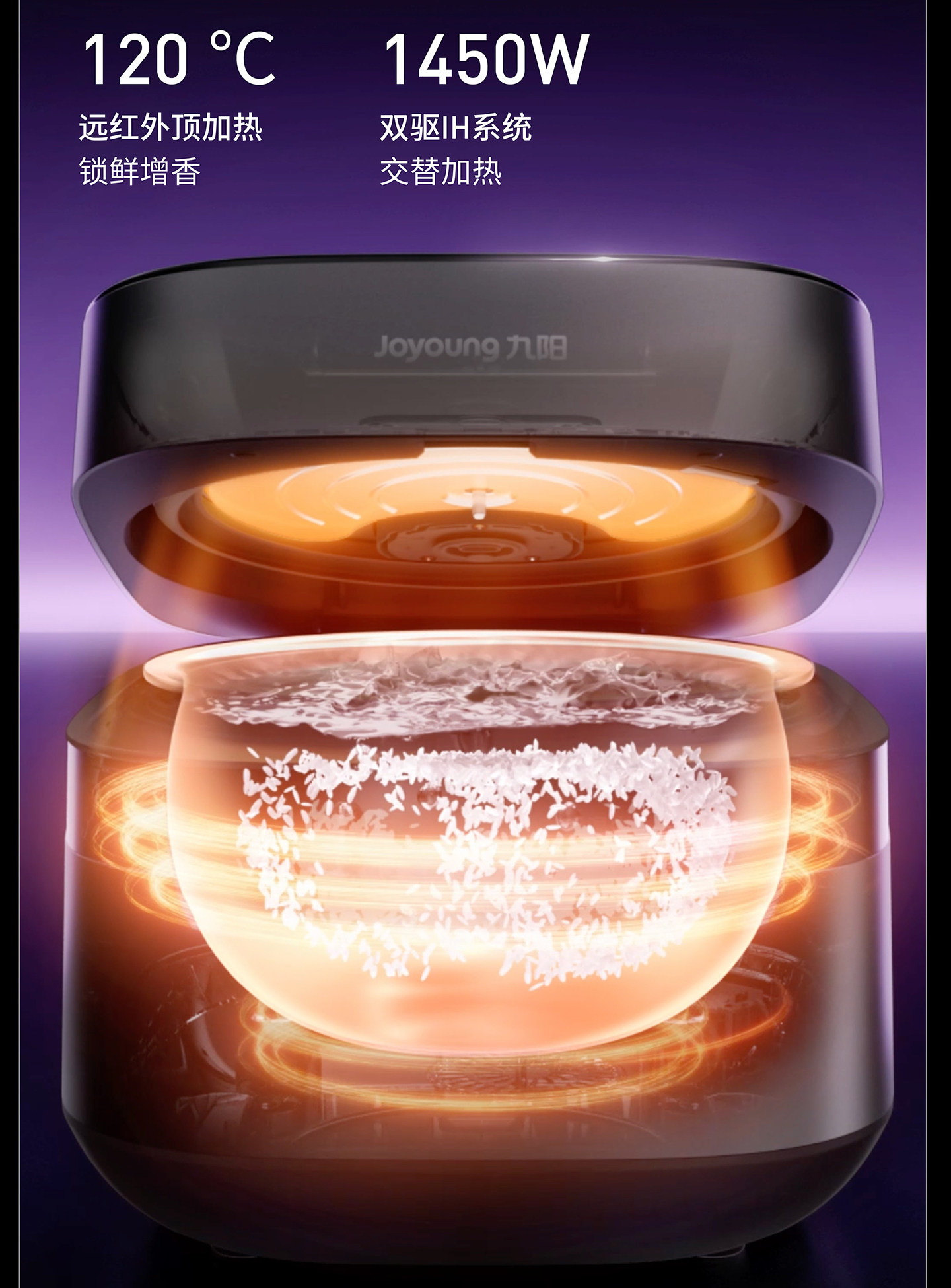 Joyoung Ih Dual-Drive Heating 0-Coating Titanium Far-Infrared 4-Liter Low-Sugar Multifunctional Smart Rice Cooker for Home Use