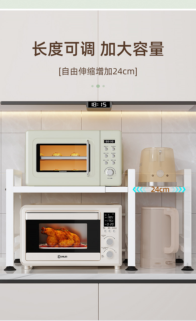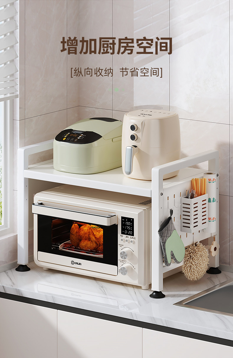 Kitchen Microwave Oven Rack Multi-Functional Household Countertop Oven Double-Layer Retractable Layered Storage Multi-Layer Shelf