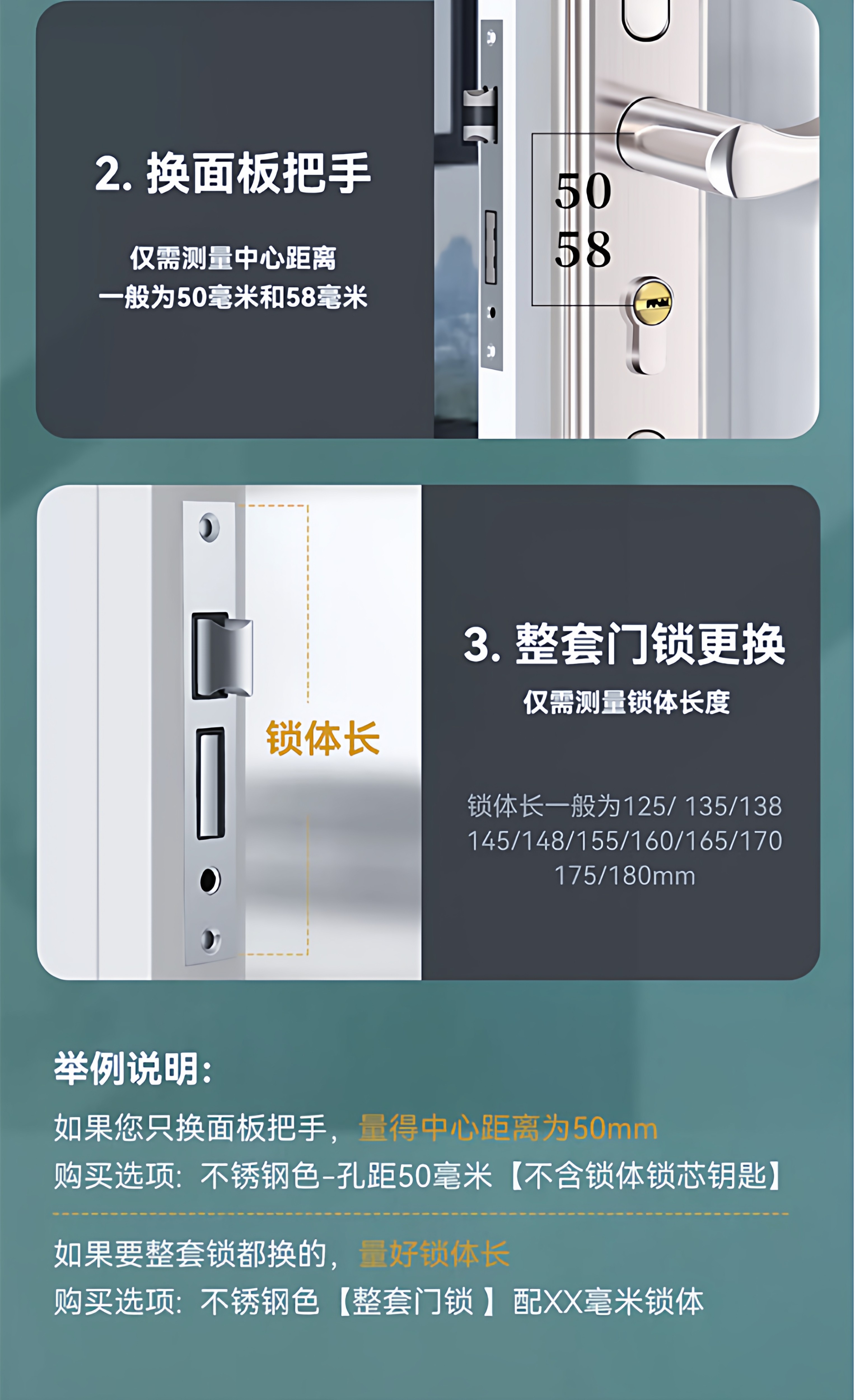 | Color Classification | Model a Has Two Handles and Does Not Include Lock Core and Lock Body,Model B Has Two Handles Without Lock Core and Lock Body,Model C, Two Handles, Lock Cylinder and Lock Body Not Included,Style D, Two-Handle Set, Lock Cylinder and Lock Body Not Included,E Type Two Handles Do Not Include Lock Core and Lock Body,F Model Two Handles Do Not Include Lock Core and Lock Body,Type a Complete Set with 125-48 Lock Body,Type a Complete Set Comes with 125-48 Copper Lock Body,Model a Complete Set Comes with 125-60 Silent Lock Body,Model a Complete Set with 160-85 Bearing Lock Body,Model a Complete Set Comes with 160-90 Silent Lock Body,Type a Complete Set with 145-75 Lock Body,Type a Complete Set with 148-75 Lock Body,Model B Comes with a Complete Set of 125-48 Locks,Model B Complete Set with 125-48 Copper Lock Body,Model B Complete Set with 125-60 Silent Lock Body,Model B Complete Set with 160-85 Bearing Lock Body,Model B Complete Set with 160-90 Silent Lock Body,Model B Complete Set with 145-75 Lock Body,Model B Complete Set with 148-75 Lock Body,Type C Complete Set with 125-48 Steel Lock Body,Type C Complete Set with 125-48 Copper Lock Body,Model C Complete Set with 125-60 Silent Lock Body,Model C Complete Set with 160-85 Bearing Lock Body,Model C Complete Set with 160-90 Silent Lock Body,Type C Complete Set with 145-75 Lock Body,Type C Complete Set with 148-75 Lock Body,D Type Complete Set with 125-48 Lock Body,Type D Complete Set with 125-48 Copper Lock Body,D Type Complete Set with 125-60 Silent Lock Body,D Type Complete Set with 160-85 Bearing Lock Body,D Type Complete Set with 160-90 Silent Lock Body,D Type Complete Set with 145-75 Lock Body,D Type Complete Set with 148-75 Lock Body,E Type Complete Set with 125-48 Lock Body,E Type Complete Set with 125-48 Copper Lock Body,E Type Complete Set with 125-60 Silent Lock Body,E Type Complete Set with 160-85 Bearing Lock Body,E Type Complete Set with 160-90 Silent Lock Body,E Type Complete Set with 145-75 Lock Body,E Type Complete Set with 148-75 Lock Body,F Type Complete Set with 125-48 Lock Body,F Type Complete Set with 125-48 Copper Lock Body,F Type Complete Set with 125-60 Silent Lock Body,F Type Complete Set with 160-85 Bearing Lock Body,F Type Complete Set with 160-90 Silent Lock Body,F Type Complete Set with 145-75 Lock Body,F Type Complete Set with 148-75 Lock Body |