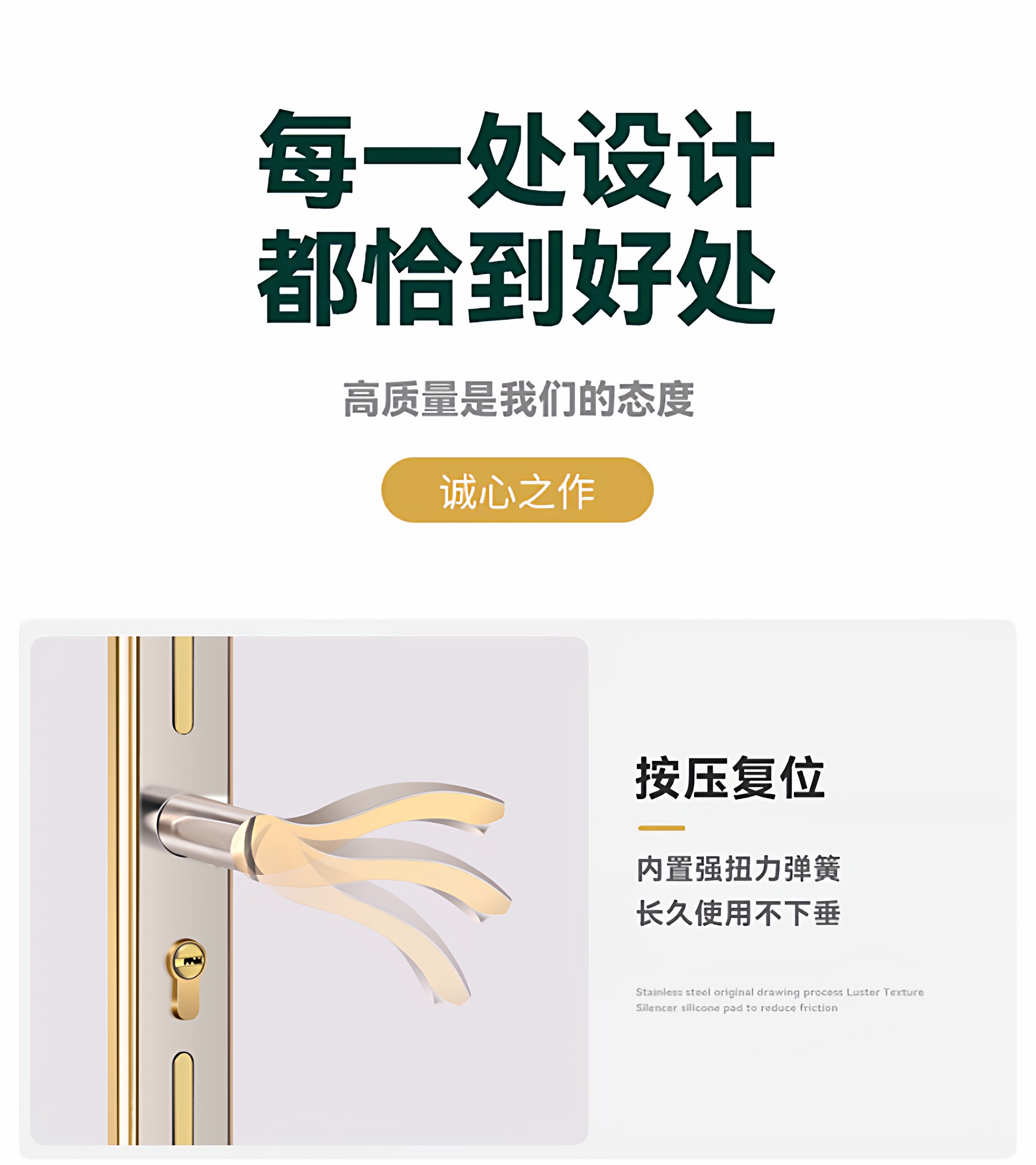 Universal Lock for Home Use, No Need to Change Holes, Silent Lock for Bedroom, Indoor Wooden Door Lock, Old-Style Handle Lock, Room Door Lock