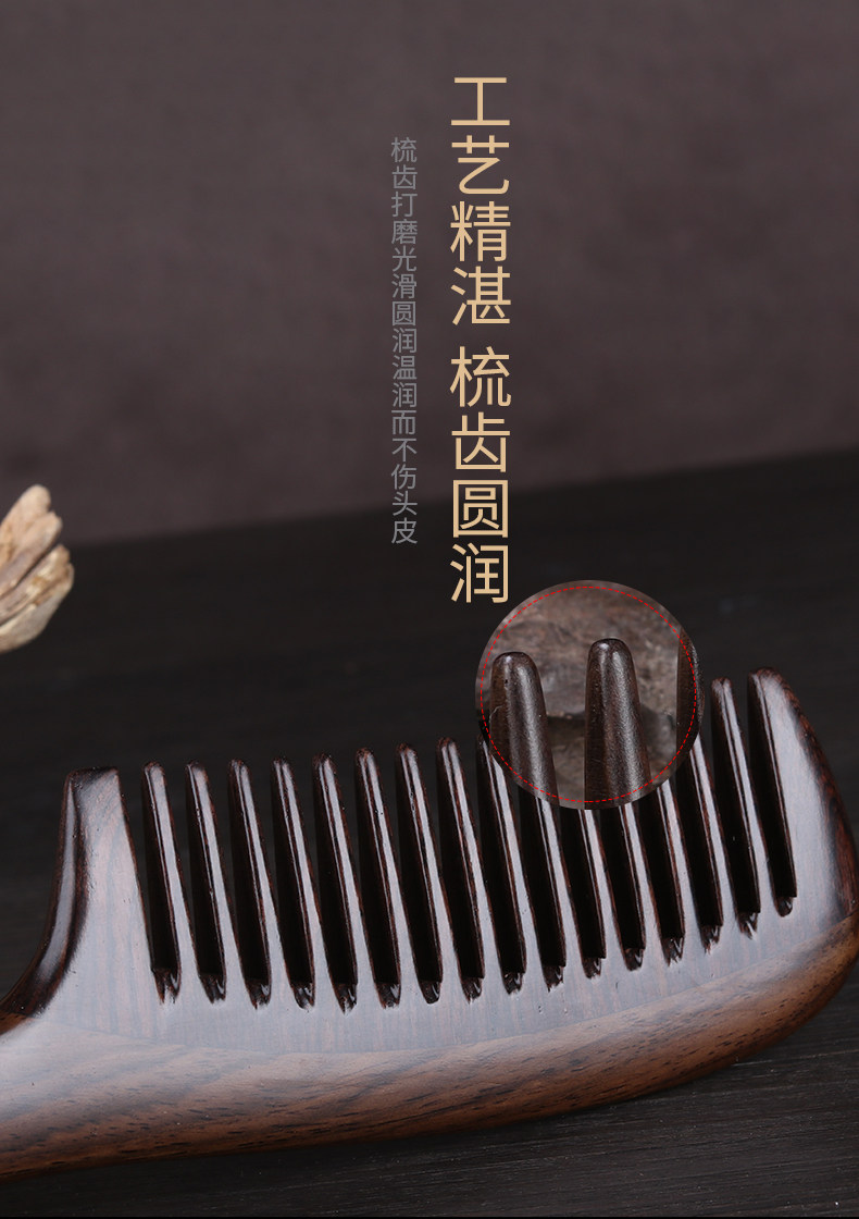 Natural Ebony Comb, Anti-Static, Smooth Hair, Curly Hair Massage Comb, Medium-Toothed, Genuine Anti-Sandalwood Comb, Anti-Hair Loss Wooden Comb