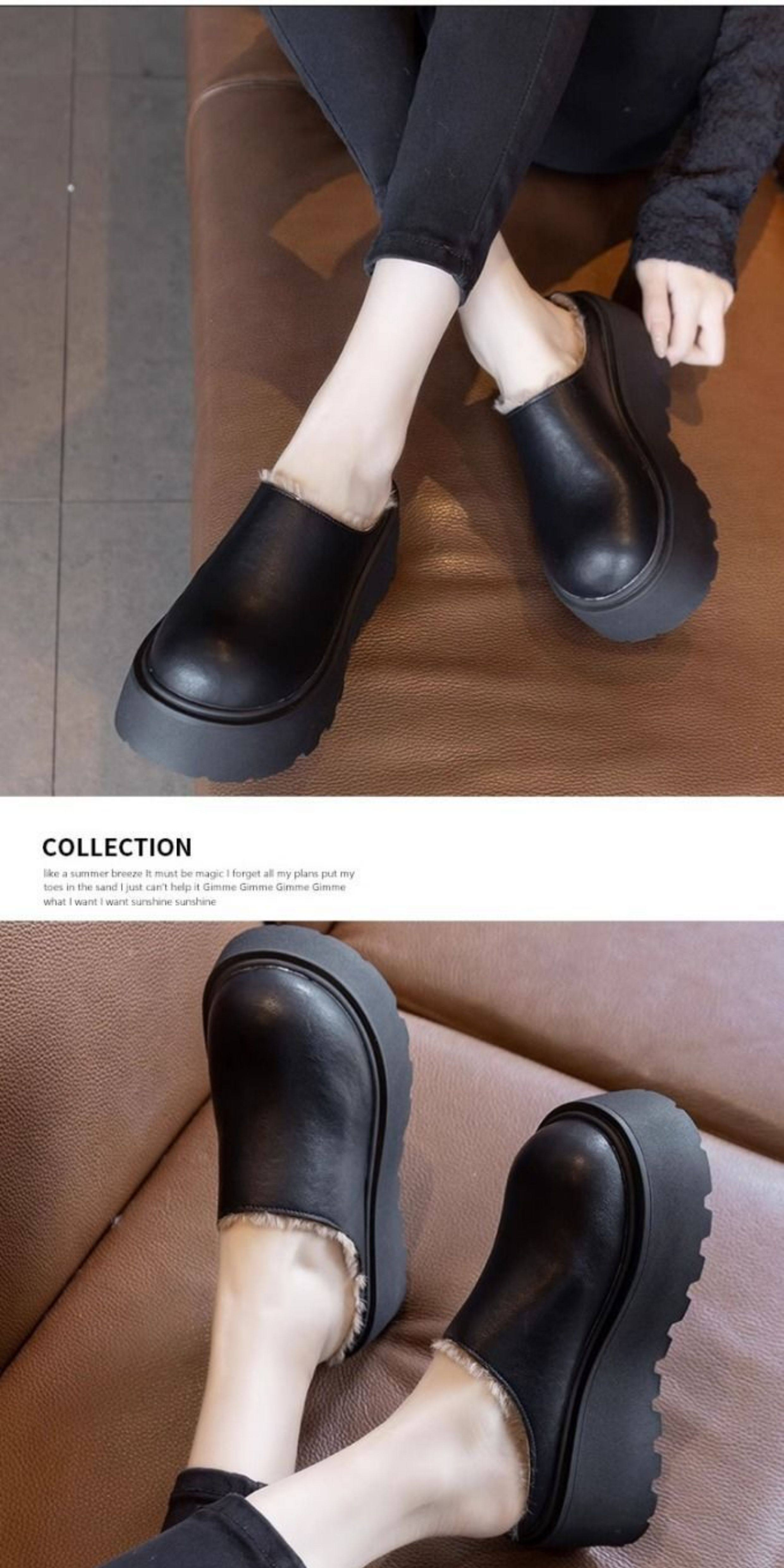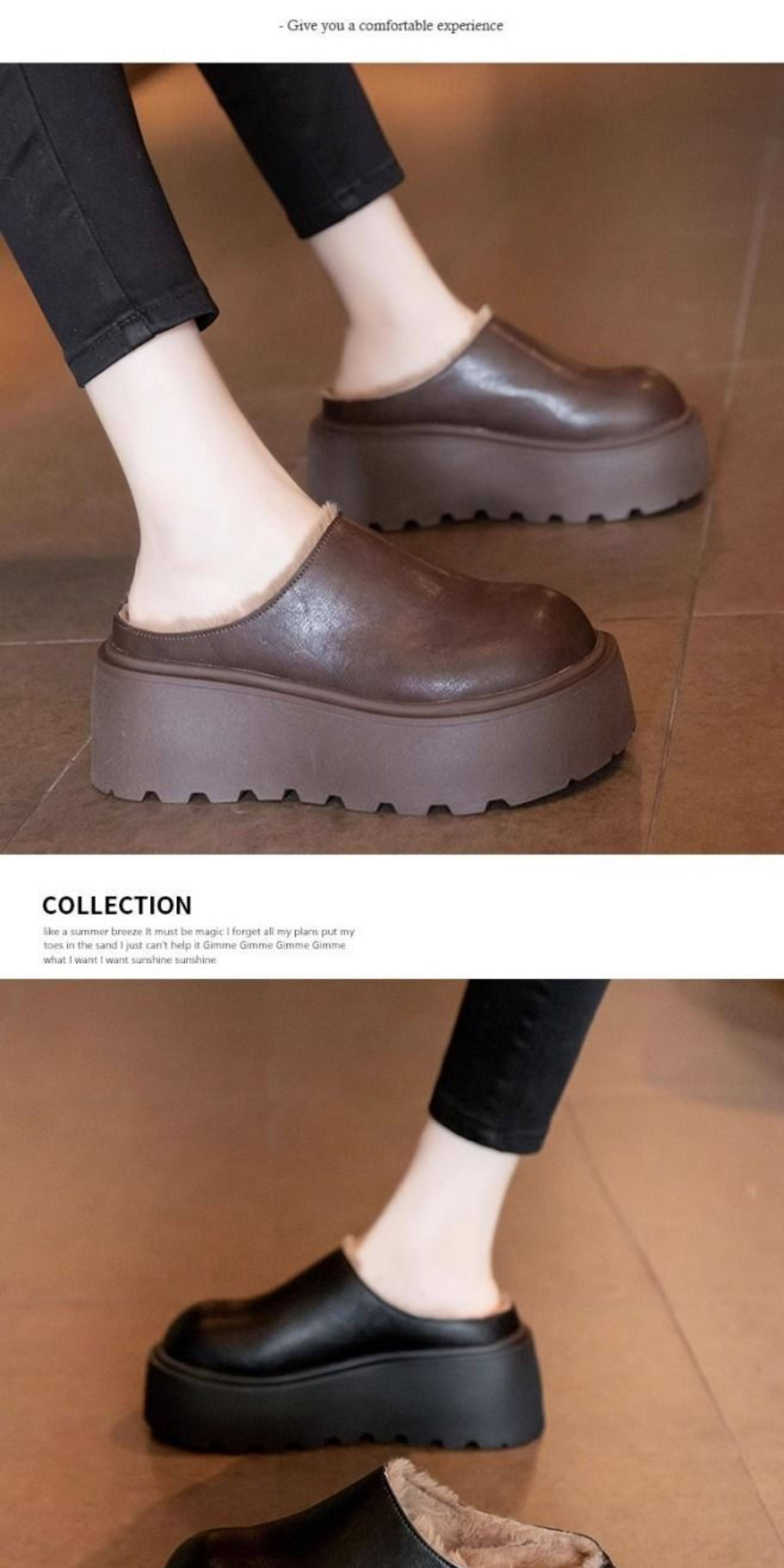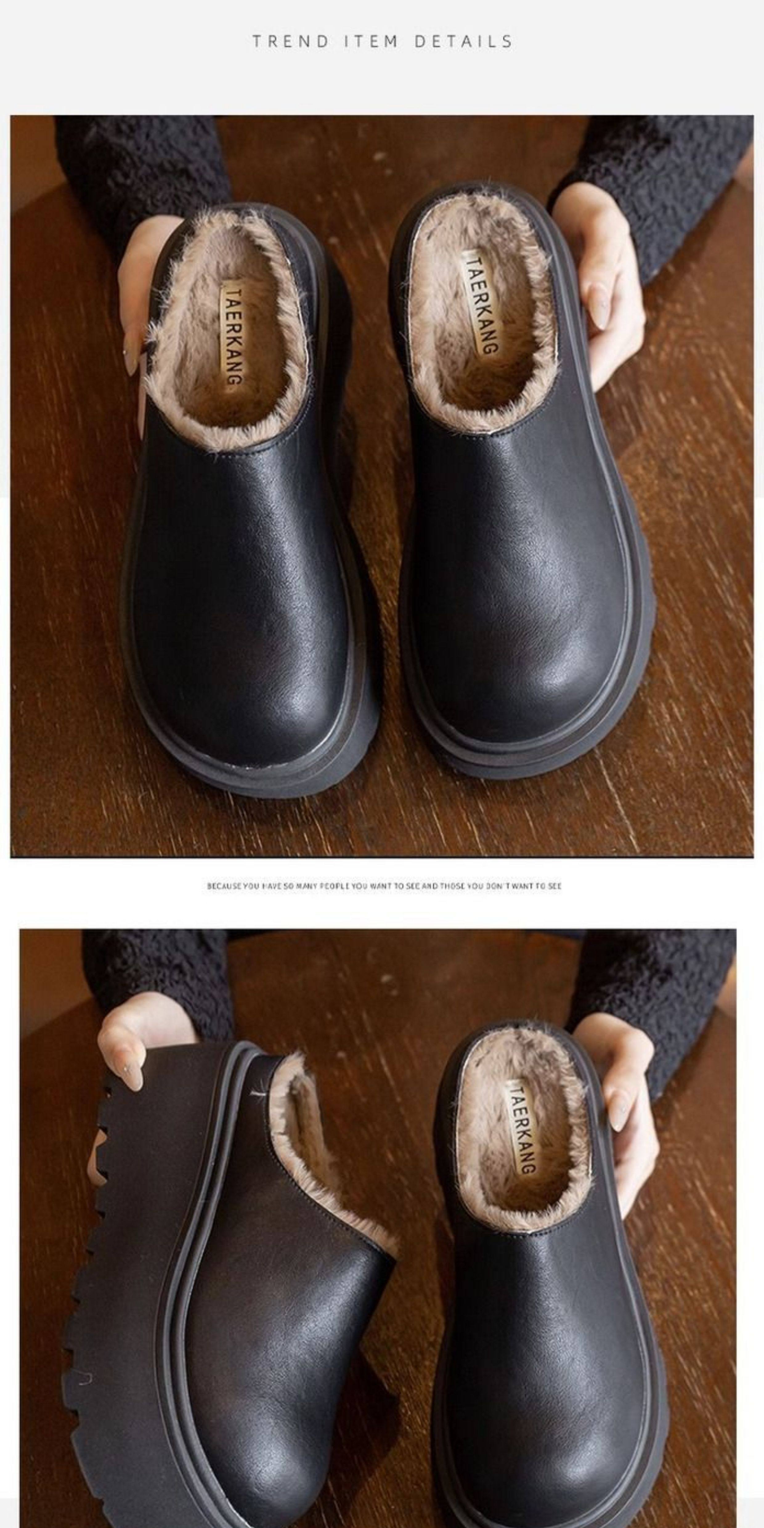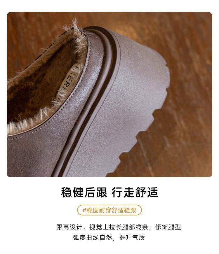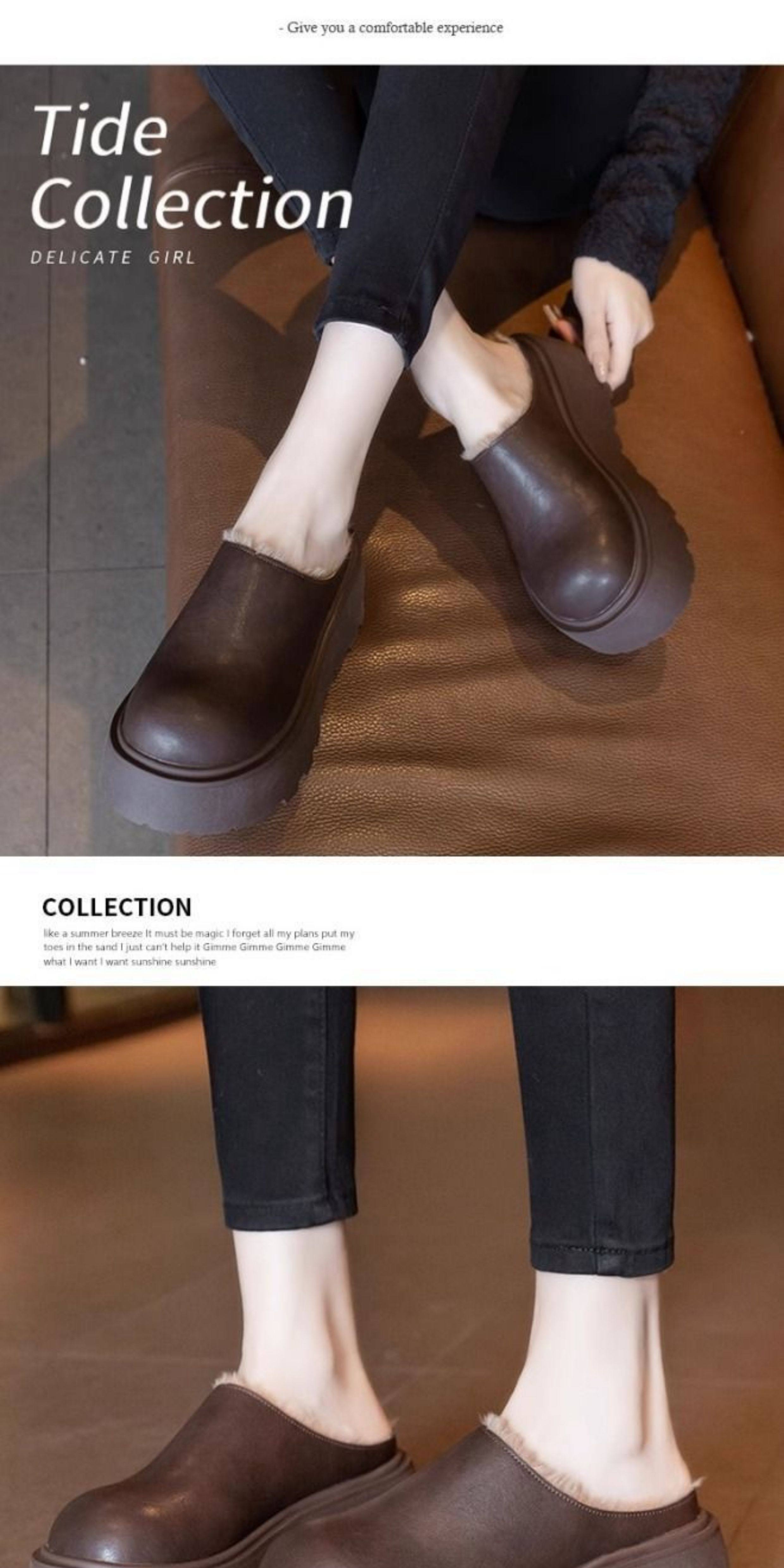 Genuine Leather Thick-Soled Outdoor Wear 2025 Winter New Style Furry Slippers for Women, Stylish Height-Increasing Plush Snow Boots, Closed-Toe Cotton Slippers