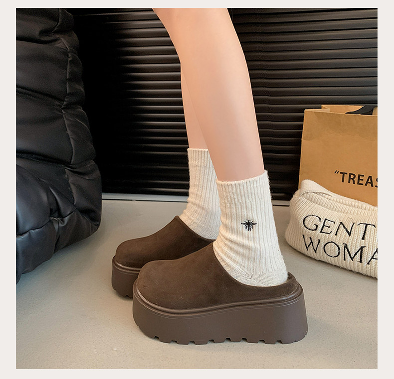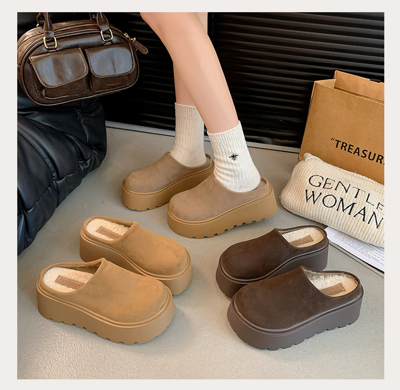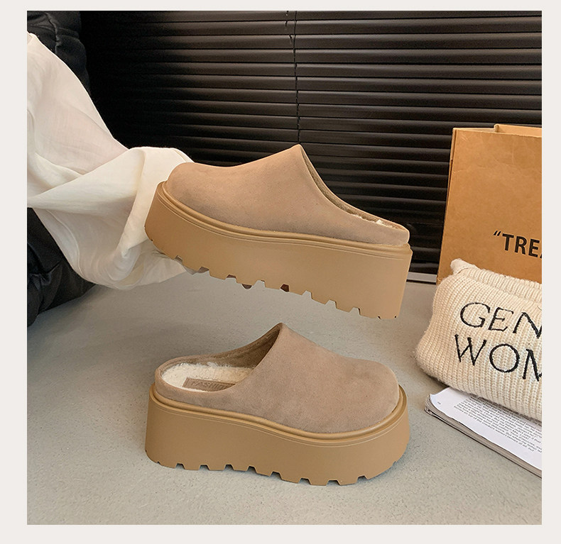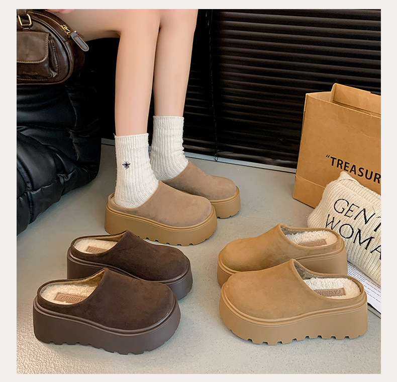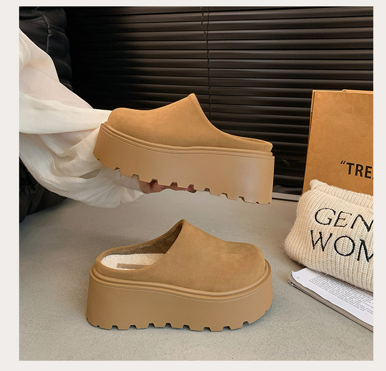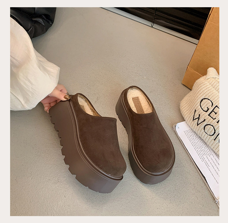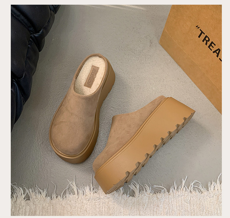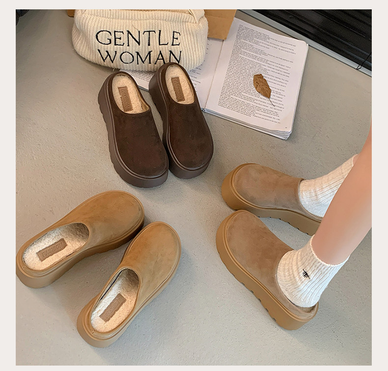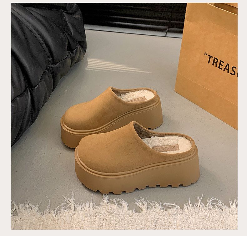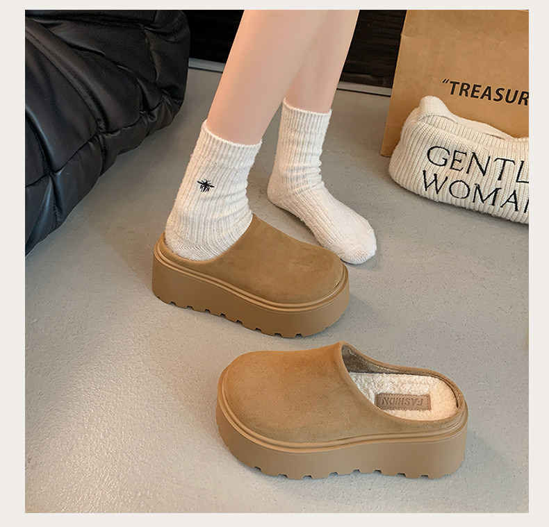 Thick-Soled Height-Increasing Birkenstock Shoes with Fleece Lining, Closed-Toe Slip-On Slippers for Women, 2025 New Autumn and Winter Model, Slip-On Birkenstock Cotton Shoes