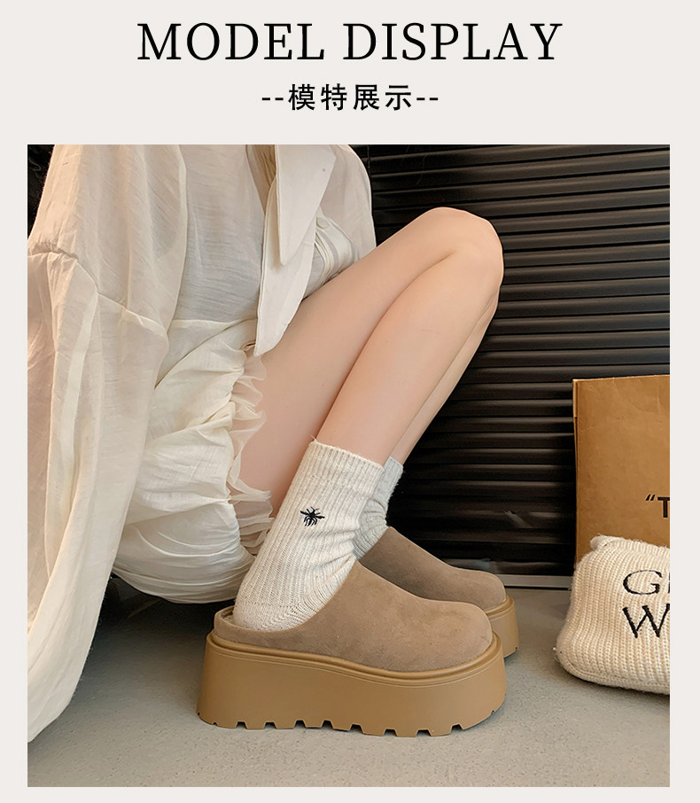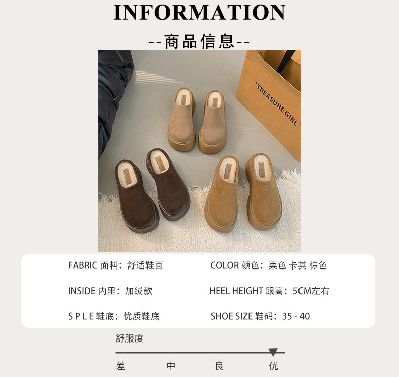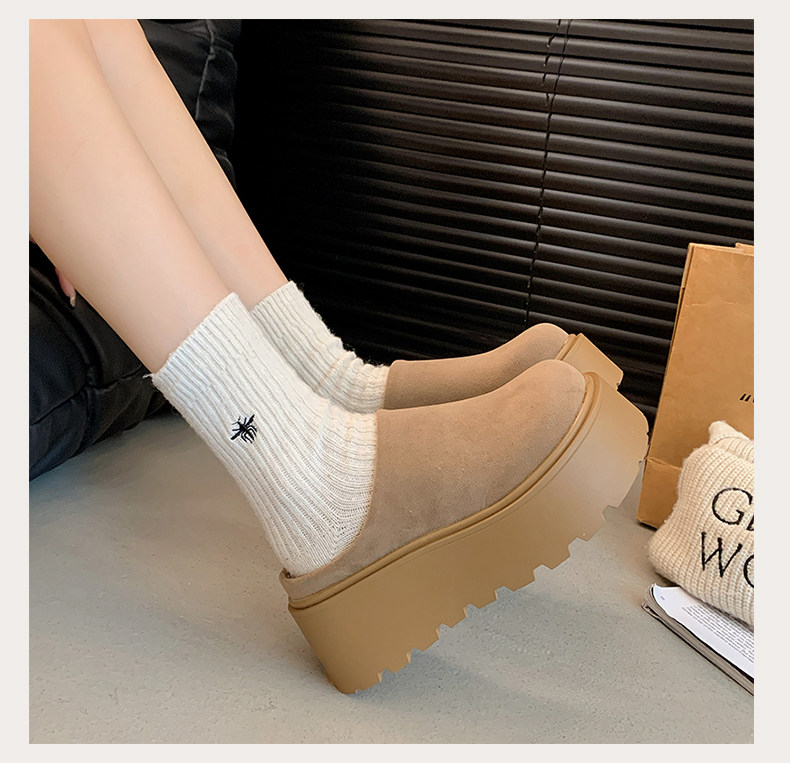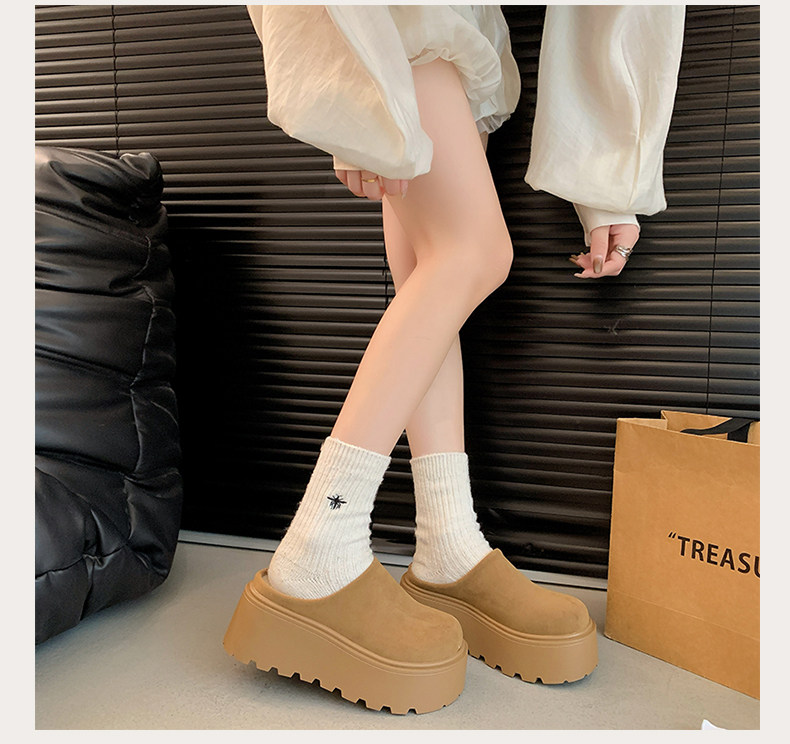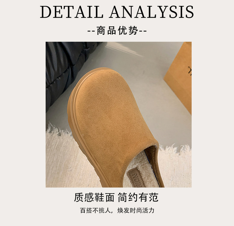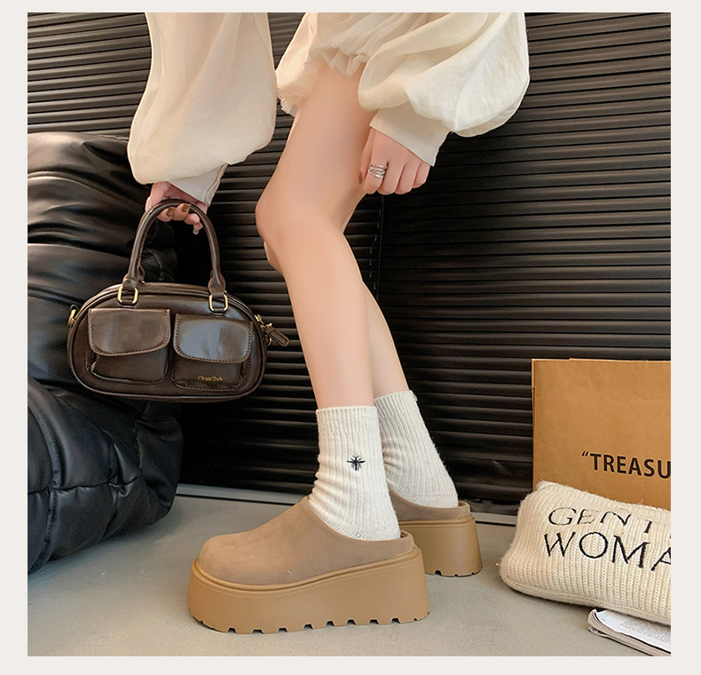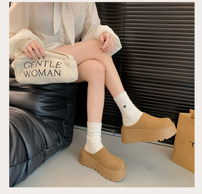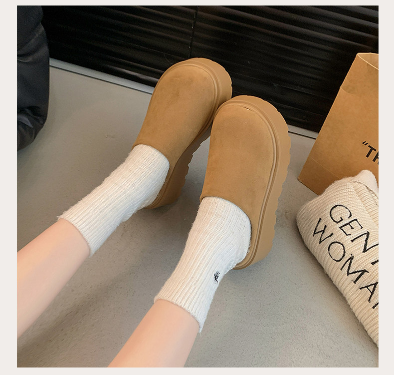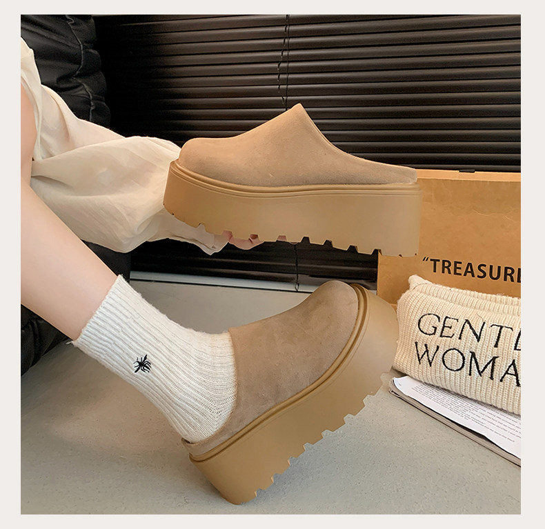 Thick-Soled Height-Increasing Birkenstock Shoes with Fleece Lining, Closed-Toe Slip-On Slippers for Women, 2025 New Autumn and Winter Model, Slip-On Birkenstock Cotton Shoes