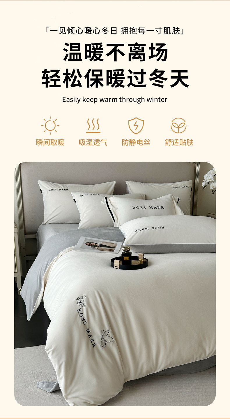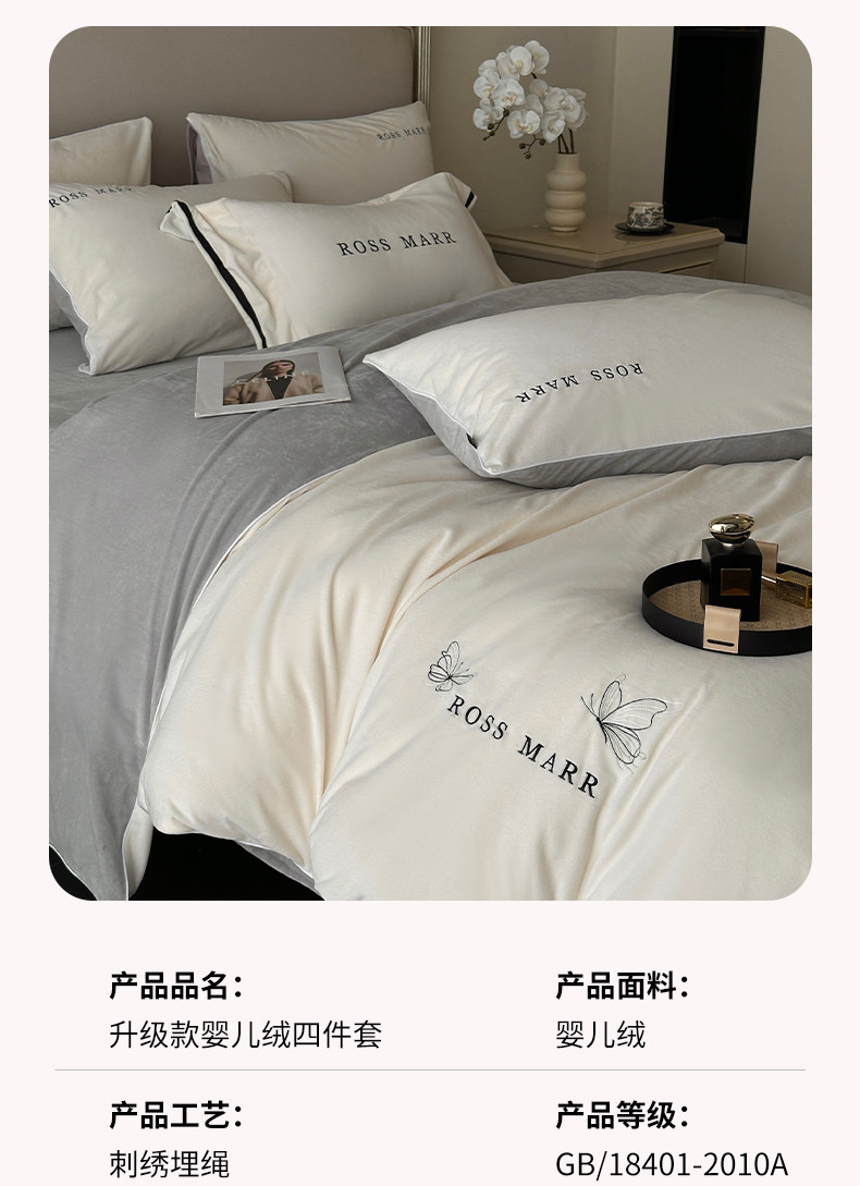 High-End Baby Short Plush Warm Four-Piece Set, New Winter Thickened Milk Velvet Bed Sheet and Duvet Cover for Bed, Class a
