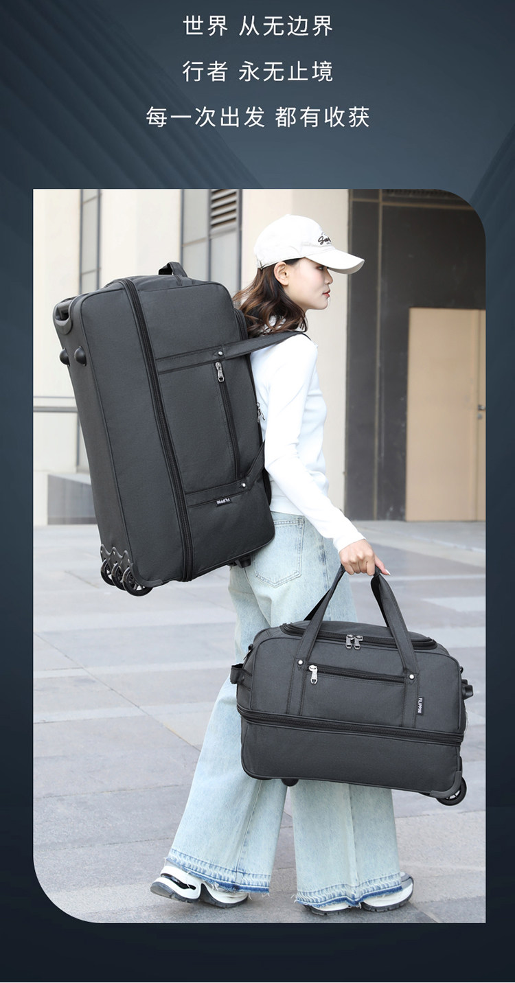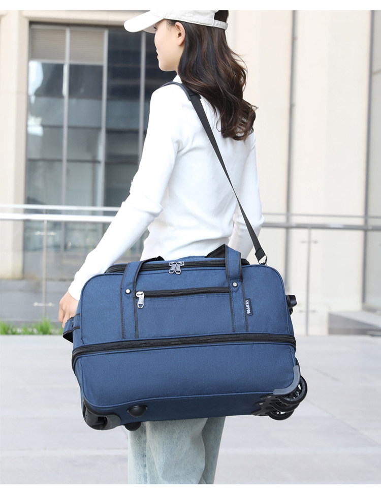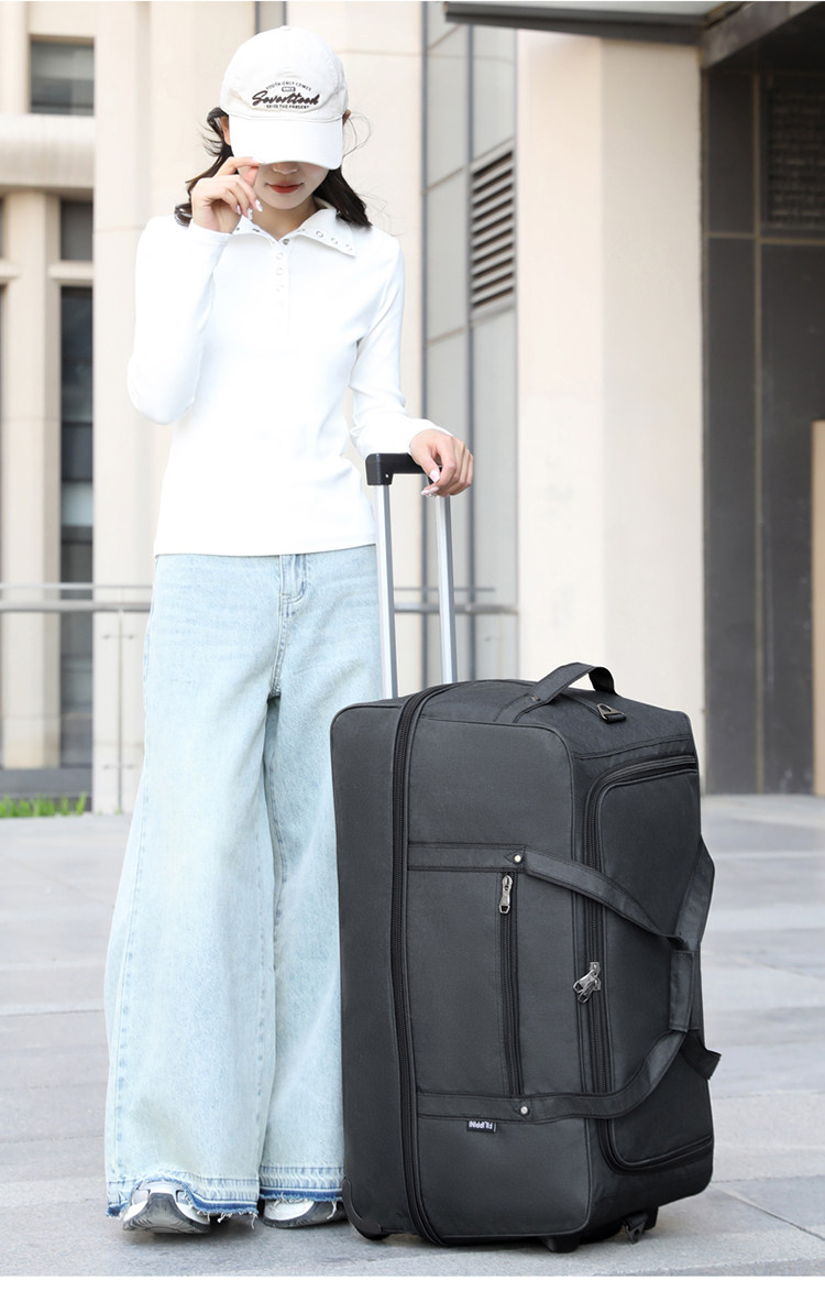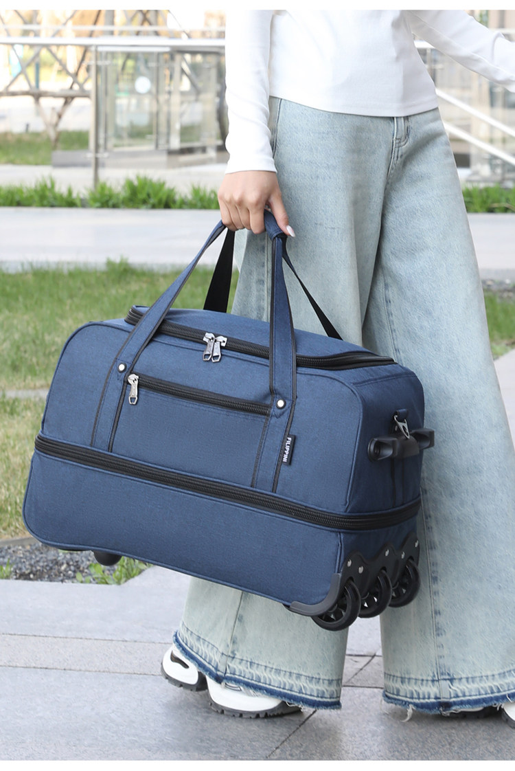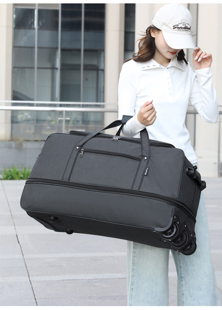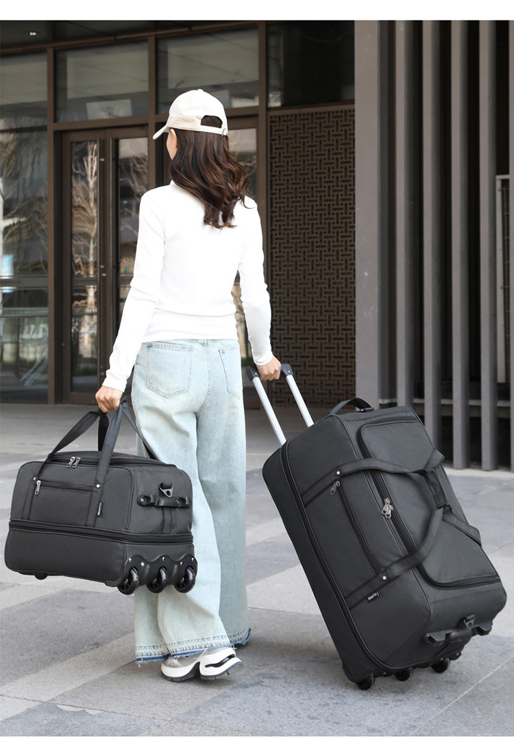 Large-Capacity Checked Luggage Trolley Travel Bag, Business Trip Luggage Bag with Wheels, Hand-Held Trolley Dual-Purpose Bag
