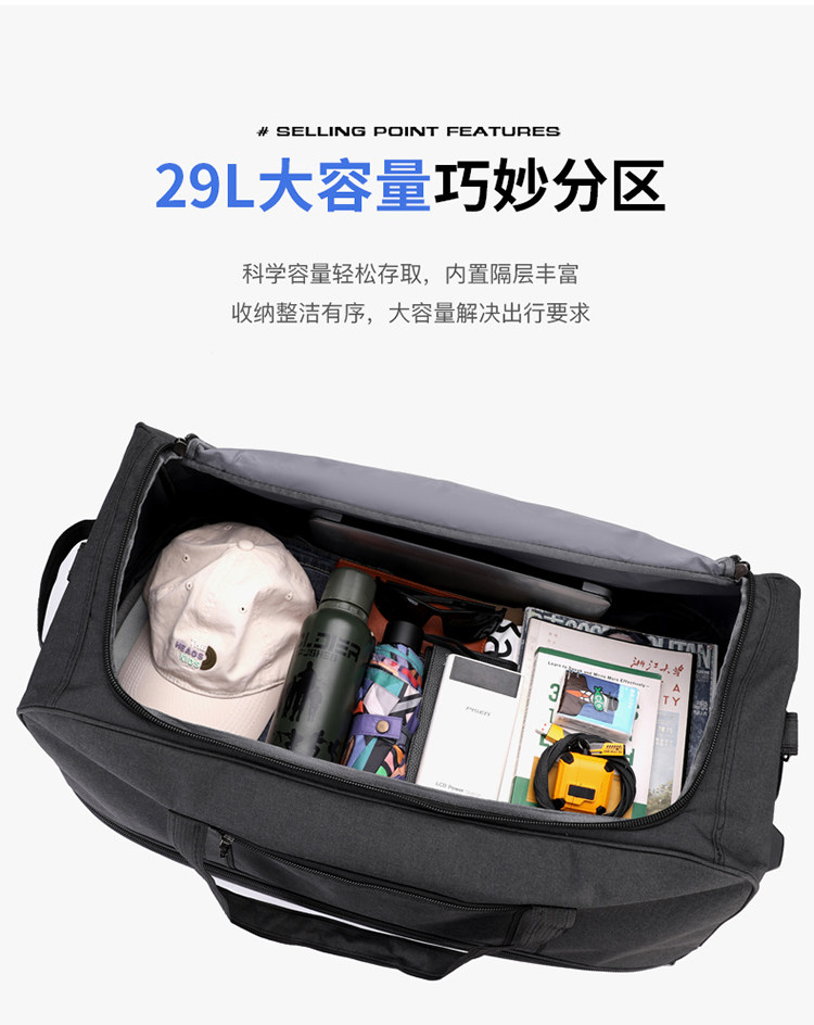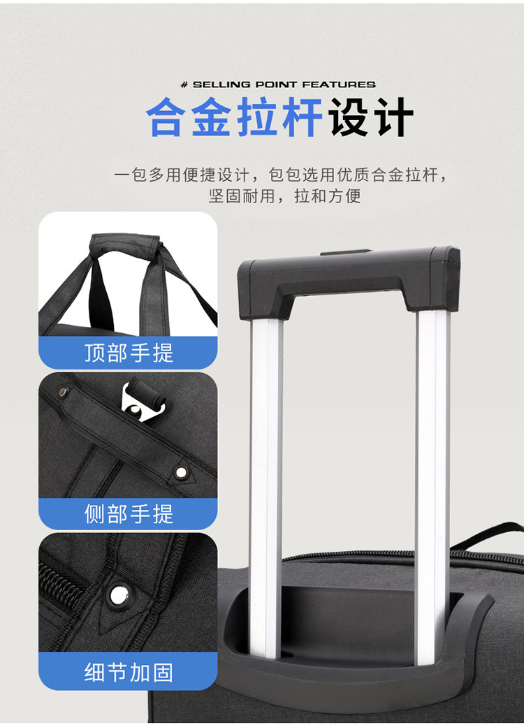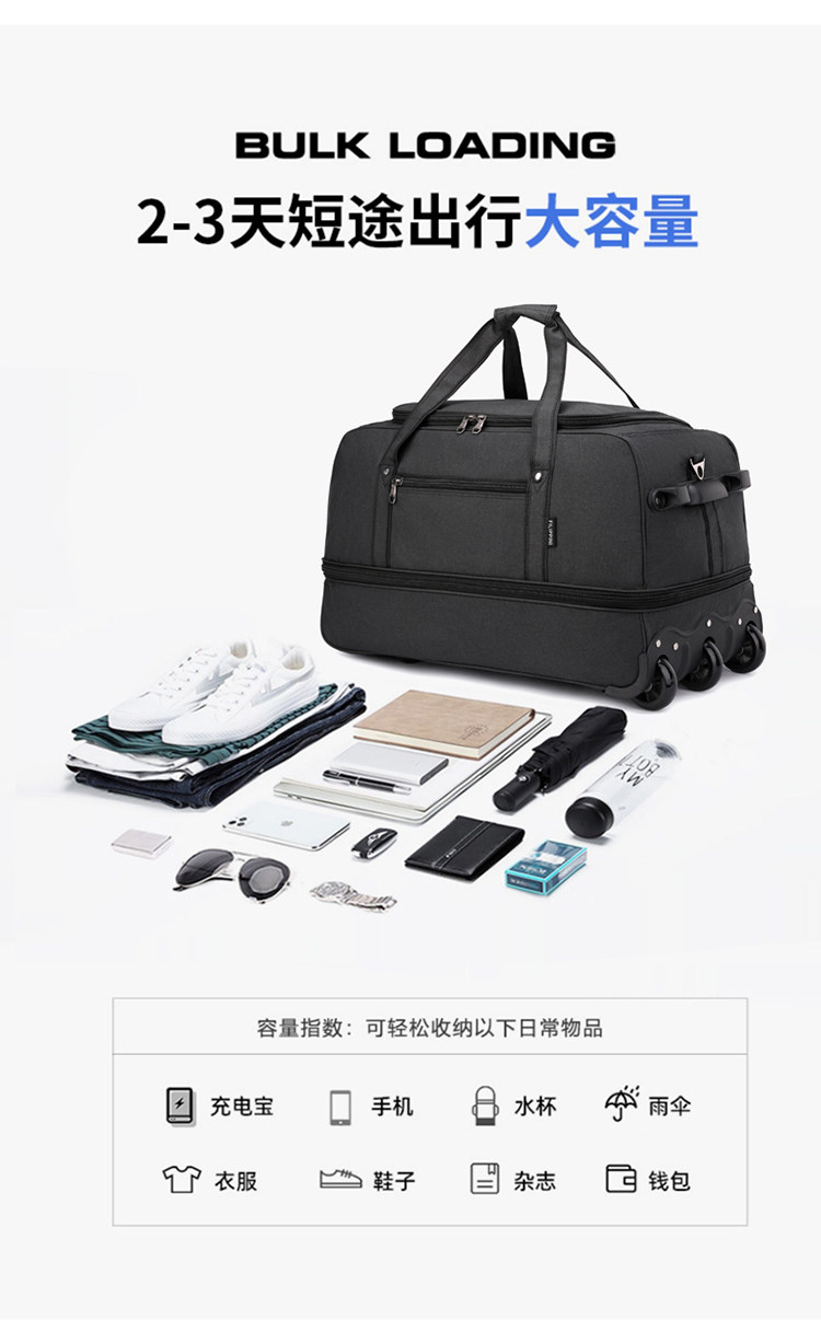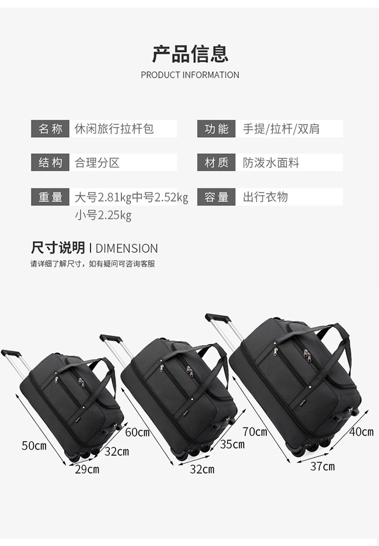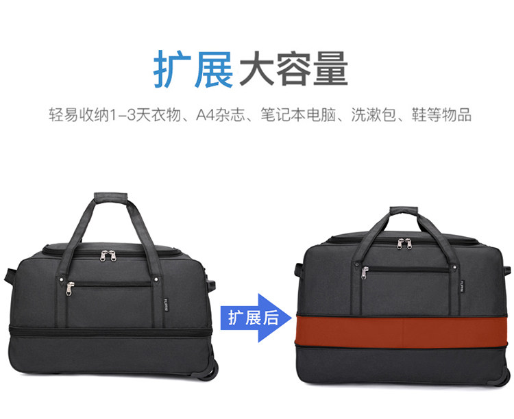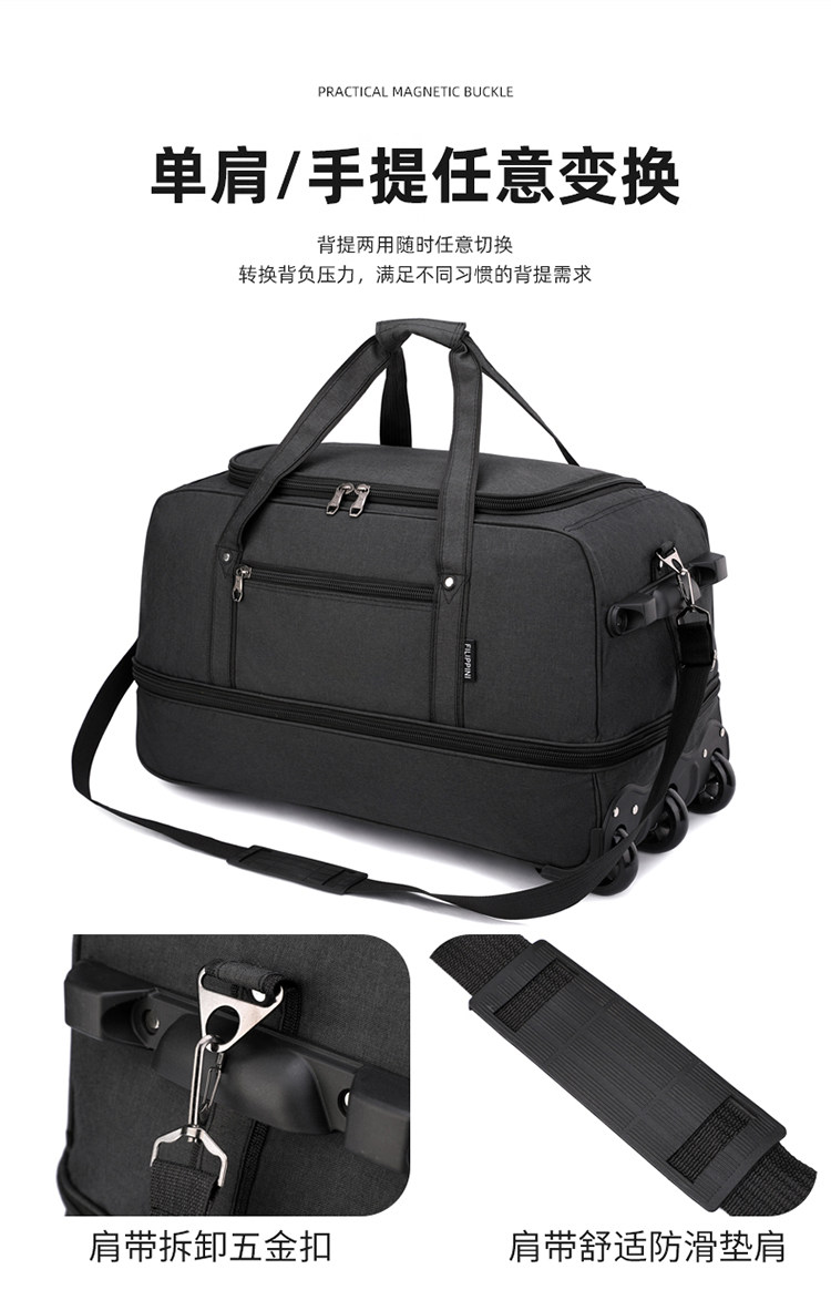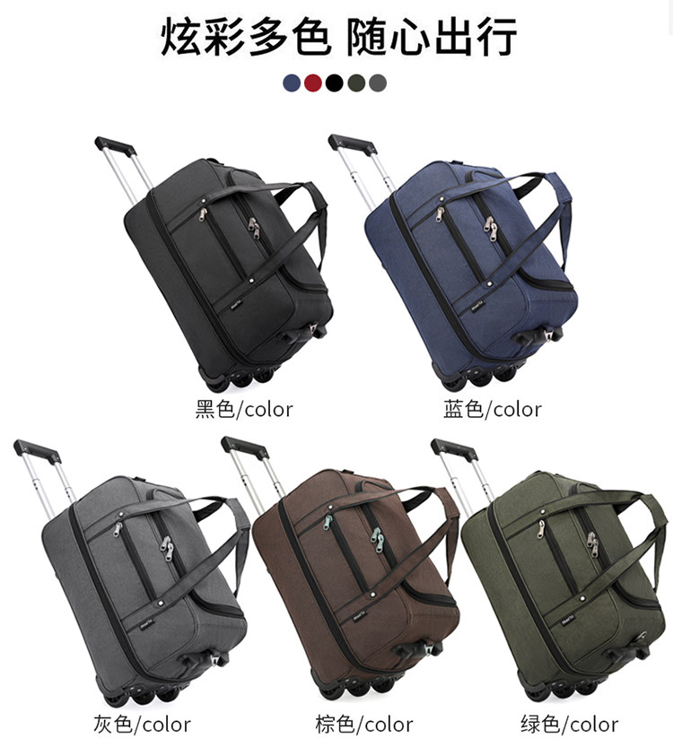 Large-Capacity Checked Luggage Trolley Travel Bag, Business Trip Luggage Bag with Wheels, Hand-Held Trolley Dual-Purpose Bag