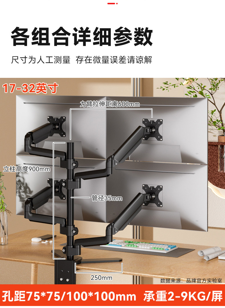 Three-Screen Monitor Stand, Multi-Screen Splicing, Height-Increasing Base, Secondary Screen 17-32inch Compatible with Xiaomi and Lenovo