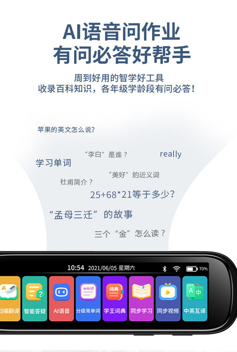 | Color Classification | Standard Edition / White / Comprehensive Edition / Electronic Dictionary Translation / Professional Task / Ai Intelligence / Learning Assistant,Standard Edition / Black / Comprehensive Edition / Electronic Dictionary Translation / Professional Task / Ai Intelligence / Learning Assistant,Upgraded Version/White/General Version/Video Explanation/Screen Projection/Living Pronunciation/Scan Reading and Problem Solving/Offline Translation/Official Flagship Store,Upgraded Version/Black/General Version/Video Explanation/Screen Projection/Living Pronunciation/Scan Reading and Problem Solving/Offline Translation/Official Flagship Store |