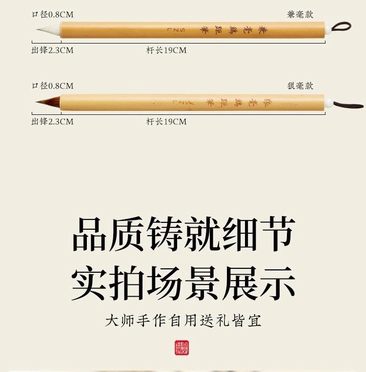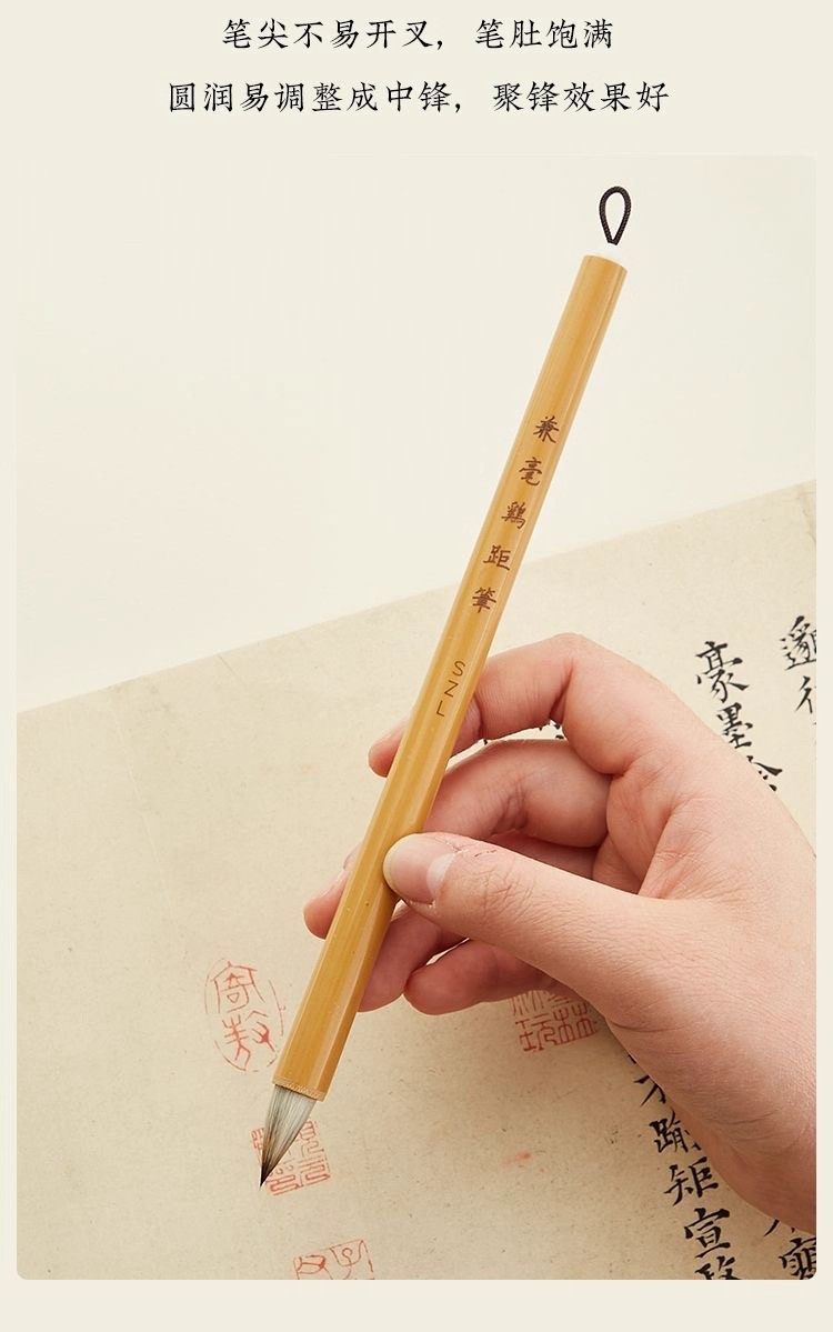 Special Brush for Beginners in Small Regular Script Calligraphy, Chicken's Feather Brush, Traditional Short-Bristled Garlic Head Brush, Mixed Wolf Hair Brush, Hairpin Head Brush