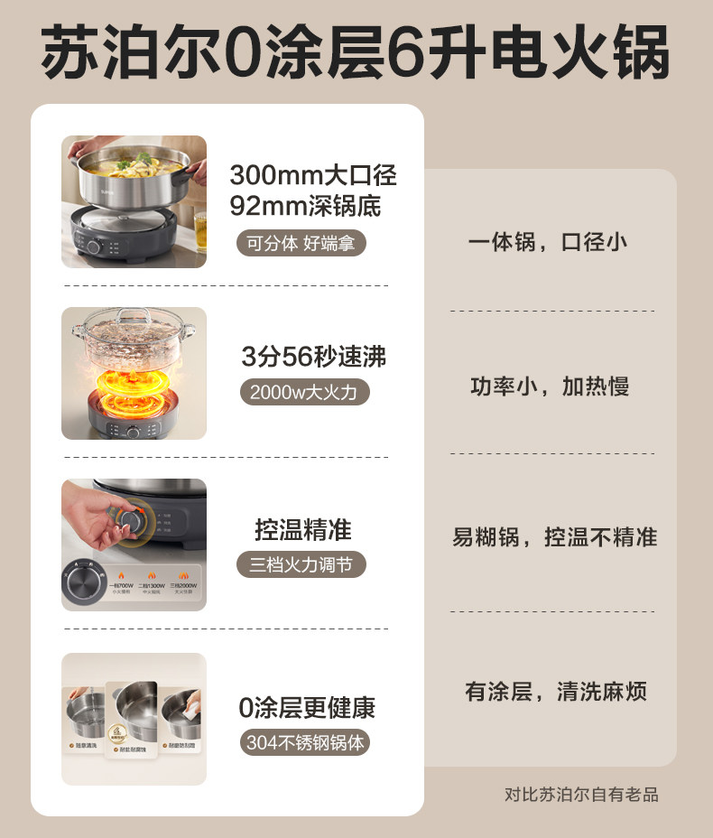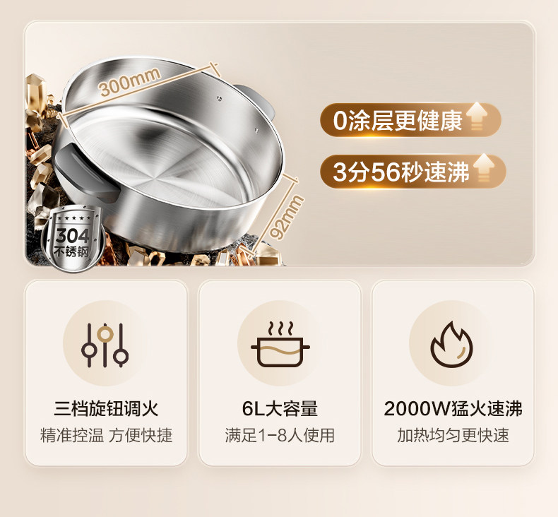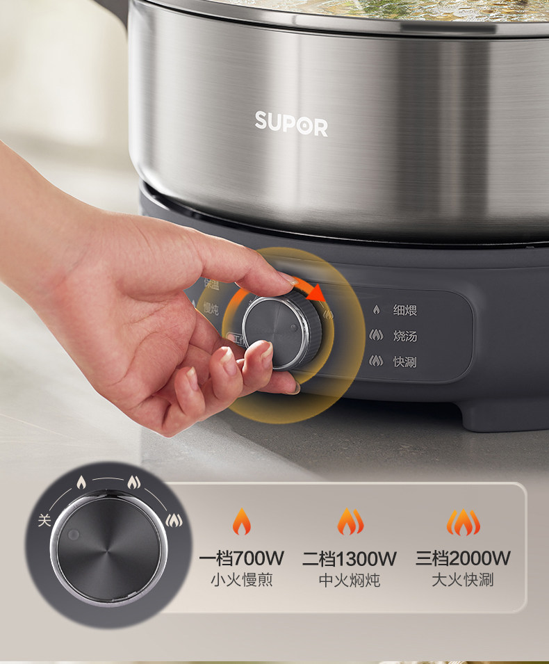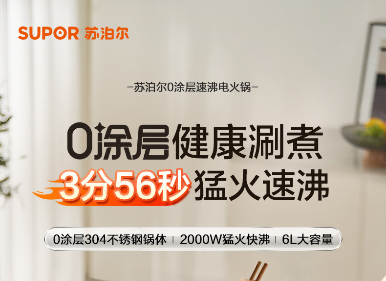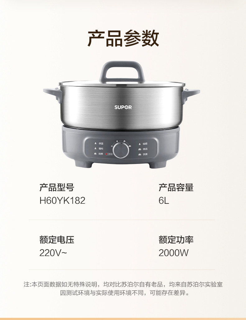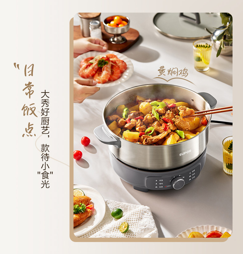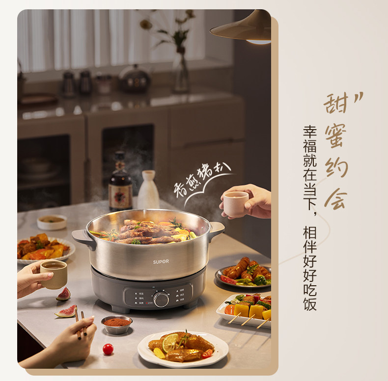 Supor Electric Hot Pot Household Electric Cooking Pot Multifunctional Detachable 0-Coating 6-Liter Electric Pot New Model Official Flagship Store