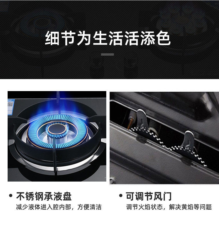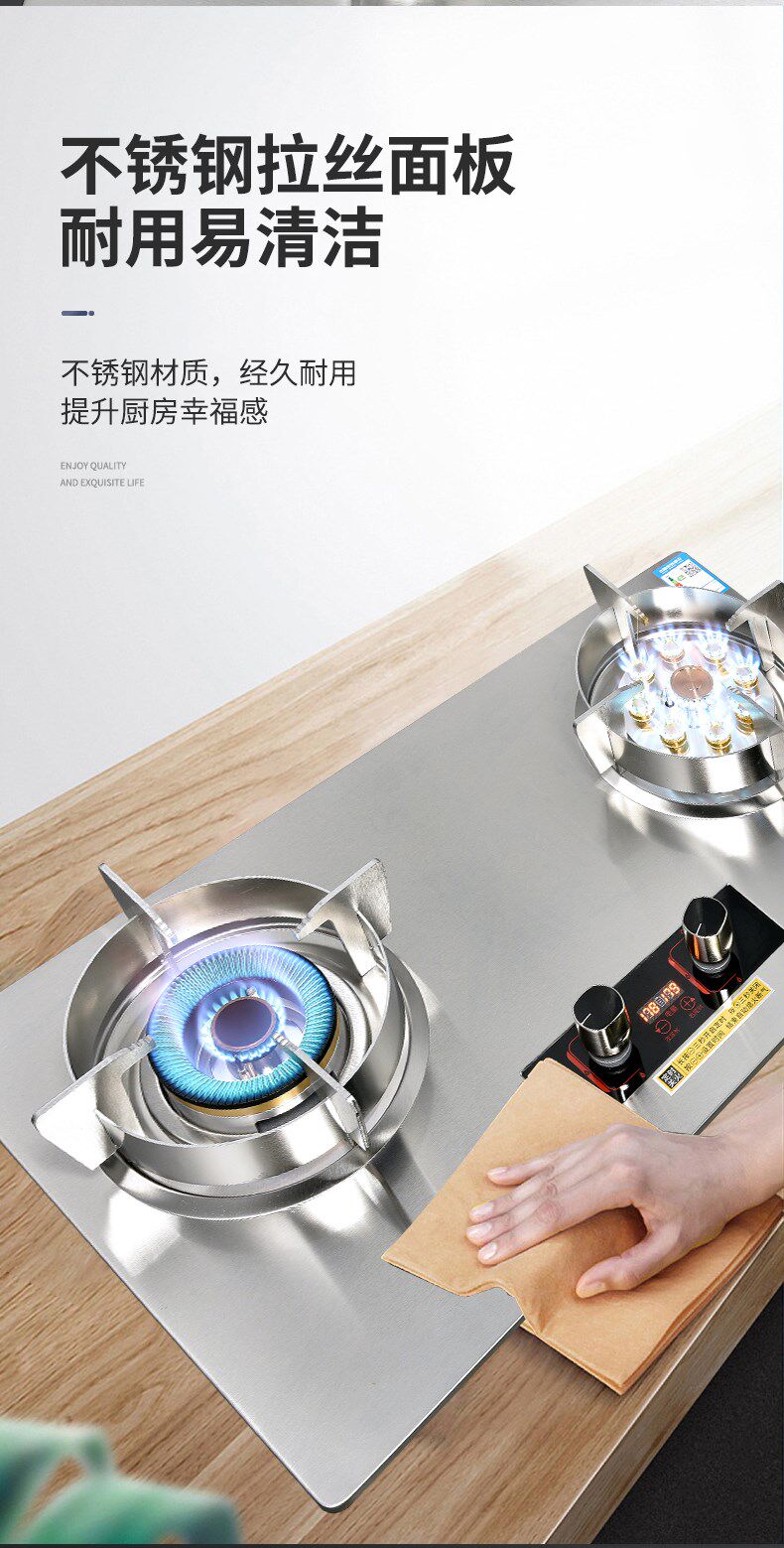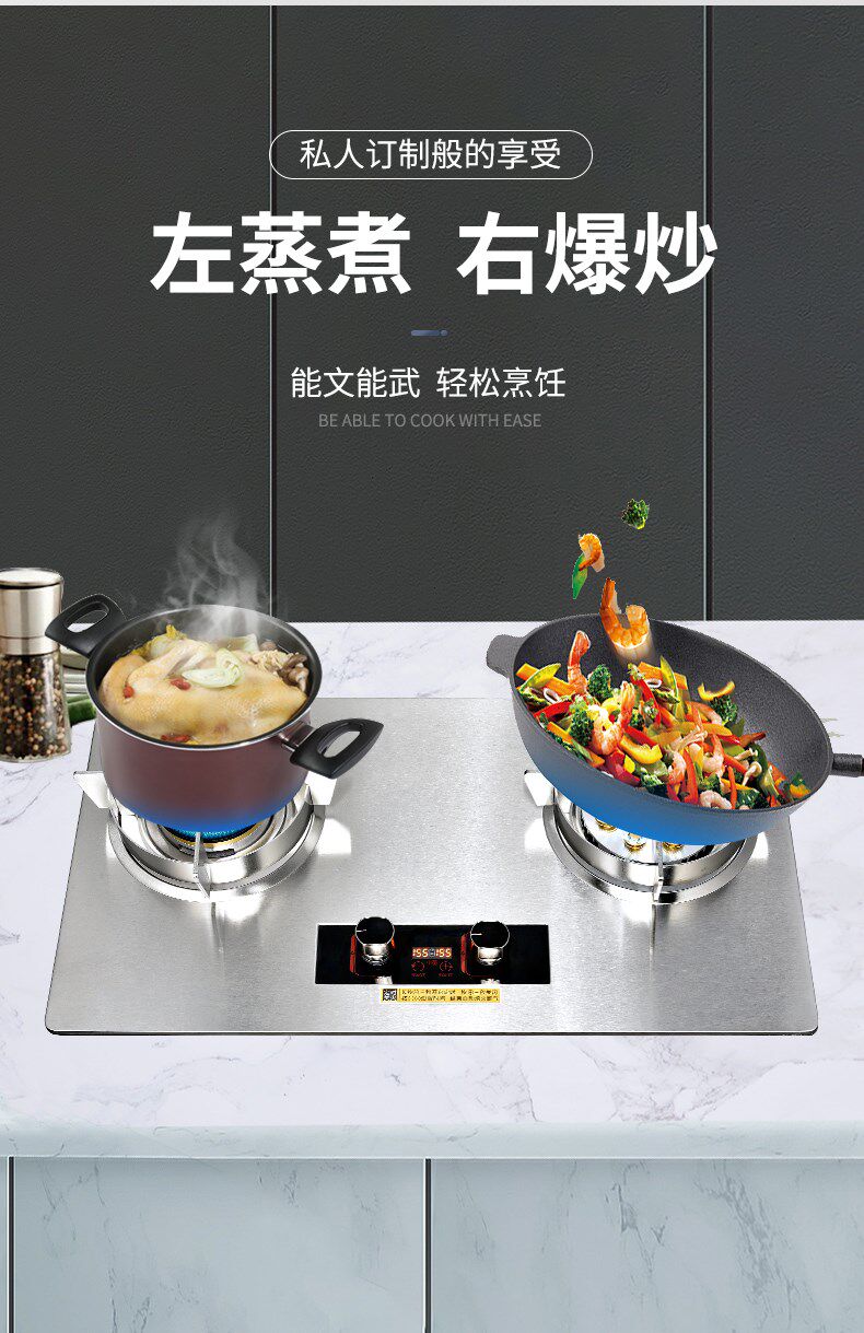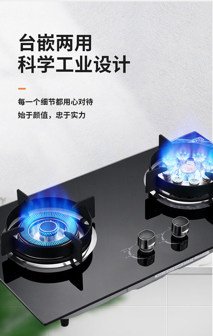 Haotaitai Gas Stove for Home Use, Dual-Burner, Natural Gas, Embedded, Energy-Saving Gas Stove, Liquefied Gas, Tabletop Gas Stove
