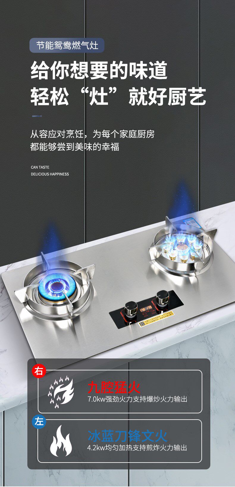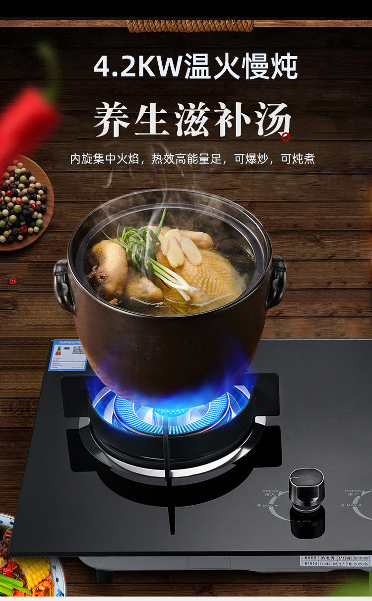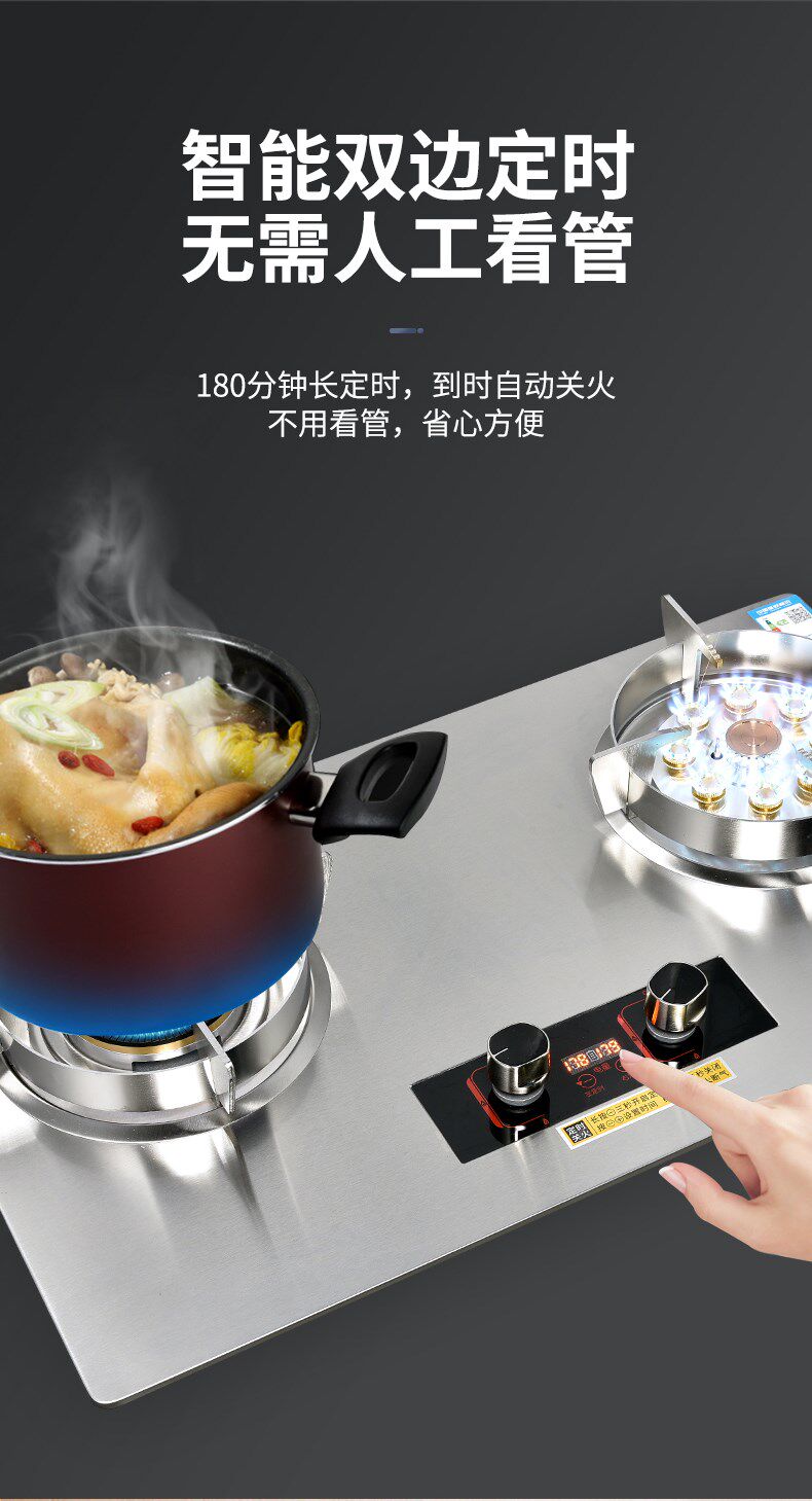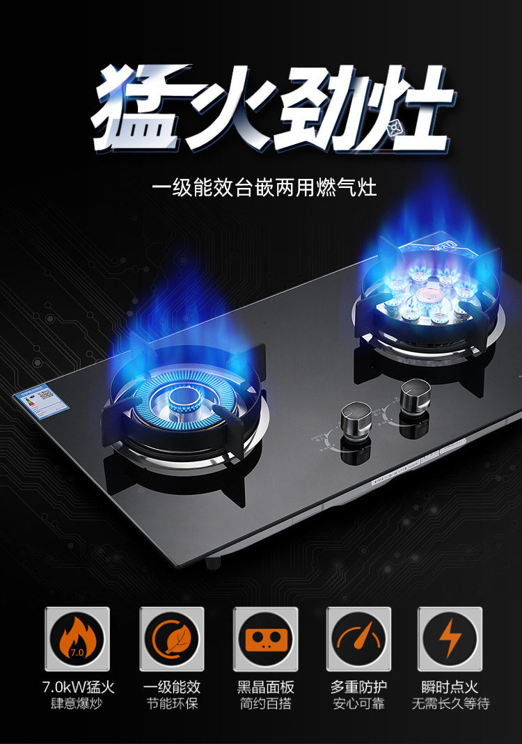 Haotaitai Gas Stove for Home Use, Dual-Burner, Natural Gas, Embedded, Energy-Saving Gas Stove, Liquefied Gas, Tabletop Gas Stove