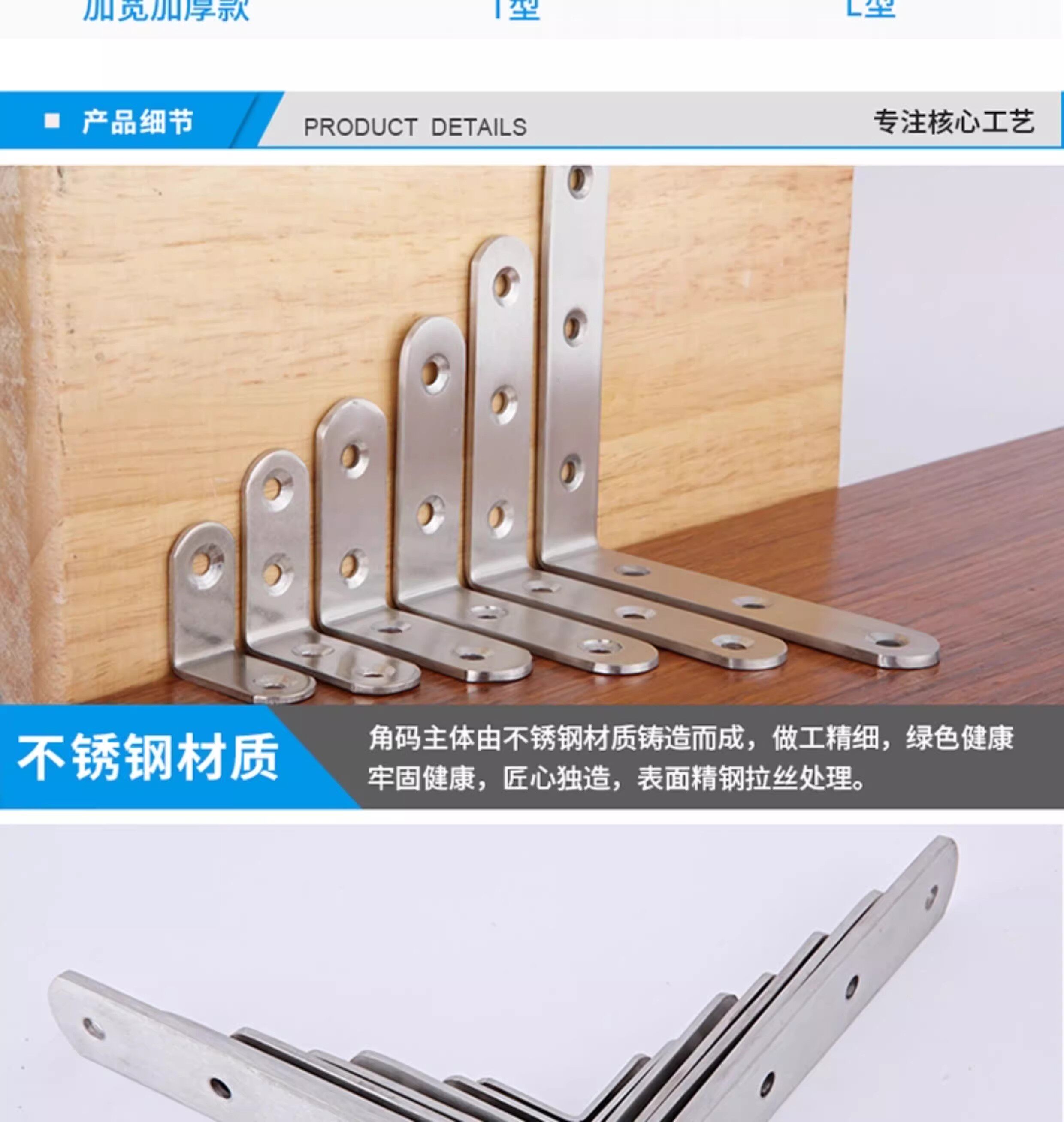 90-Degree Right-Angle Stainless Steel Angle Bracket, L-Shaped Bracket, Triangular Iron Shelf Support, Furniture Connector