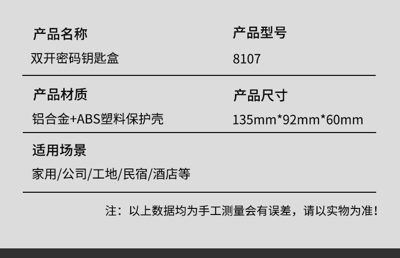 | Color Classification | Black [Wall-Mounted, Double-Door Design, Code Retrievable],Gray [Wall-Mounted, Double-Door Design, Code Retrieval Available],Black [Hook Style, Double Opening Design, Password Accessible],Gray [Hook Style, Double Opening Design, Password Accessible] |