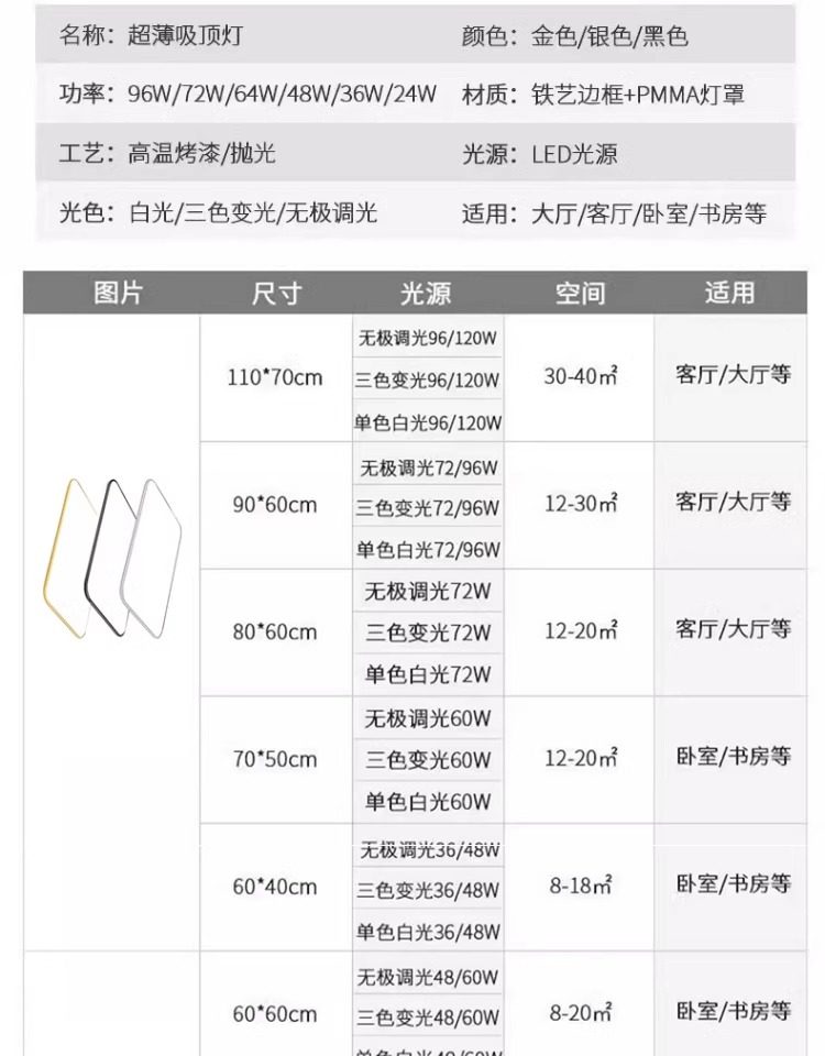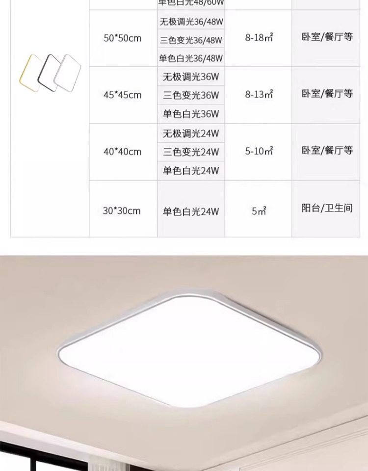 | Color Classification | Click Here for Shopping Guide Instructions,Long Square 90*60cm Monochrome White Light 72W [Upgraded to Full Spectrum],Rectangular 90*60cm Three-Color Dimming 72W [Upgraded to Full Spectrum],Rectangular 90*60cm Stepless Remote Control 72W [Upgraded to Full Spectrum],Rectangular 90*60cm Smart Voice 72W [Upgraded to Full Spectrum],Square 40*40cm Monochrome White Light 24W [Upgraded to Full Spectrum],Square 40*40cm Three-Color Dimming 24W [Upgraded to Full Spectrum],Square 40*40cm Stepless Remote Control 24W [Upgraded to Full Spectrum],Square 40*40cm Smart Voice 24W [Upgraded to Full Spectrum],Square 50*50cm Monochrome White Light 36W [Upgraded to Full Spectrum],Square 50*50cm Three-Color Dimming 36W [Upgraded to Full Spectrum],Square 50*50cm Stepless Remote Control 36W [Upgraded to Full Spectrum],Square 50*50cm Offline Voice 36W [Upgraded to Full Spectrum],Square 50*50cm Monochrome White Light 48W [Upgraded to Full Spectrum],Square 50*50cm Three-Color Dimming 48W [Upgraded to Full Spectrum],Square 50*50cm Stepless Remote Control 48W [Upgraded to Full Spectrum],Square 50*50cm Offline Voice 48W [Upgraded to Full Spectrum],Rectangular 60*40cm Monochrome White Light 36W [Upgraded to Full Spectrum],Rectangular 60*40cm Three-Color Dimming 36W [Upgraded to Full Spectrum],Rectangular 60*40cm Stepless Remote Control 36W [Upgraded to Full Spectrum],Rectangular 60*40cm Smart Voice 36W [Upgraded to Full Spectrum],Rectangular 60*40cm Monochrome White Light 48W [Upgraded to Full Spectrum],Rectangular 60*40cm Three-Color Dimming 48W [Upgraded to Full Spectrum],Rectangular 60*40cm Stepless Remote Control 48W [Upgraded to Full Spectrum],Rectangular 60*40cm Smart Voice 48W [Upgraded to Full Spectrum],Square 60*60cm Monochrome White Light 48W [Upgraded to Full Spectrum],Square 60*60cm Three-Color Dimming 48W [Upgraded to Full Spectrum],Square 60*60cm Stepless Remote Control 48W [Upgraded to Full Spectrum],Square 60*60cm Smart Voice 48W [Upgraded to Full Spectrum],Square 60*60cm Monochrome White Light 60W [Upgraded to Full Spectrum],Square 60*60cm Three-Color Dimming 60W [Upgraded to Full Spectrum],Square 60*60cm Stepless Remote Control 60W [Upgraded to Full Spectrum],Square 60*60cm Smart Voice 60W [Upgraded to Full Spectrum],Rectangular 90*60cm Monochrome White Light 96W [Upgraded to Full Spectrum],Rectangular 90*60cm Three-Color Dimming 96W [Upgraded to Full Spectrum],Rectangular 90*60cm Stepless Remote Control 96W [Upgraded to Full Spectrum],Rectangular 90*60cm Smart Voice 96W [Upgraded to Full Spectrum],Rectangular 110*70cm Monochrome White Light 96W [Upgraded to Full Spectrum],Rectangular 110*70cm Three-Color Dimming 96W [Upgraded to Full Spectrum],Rectangular 110*70cm Stepless Remote Control 96W [Upgraded to Full Spectrum],Rectangular 110*70cm Smart Voice 96W [Upgraded to Full Spectrum],Rectangular 110*70cm Monochrome White Light 120W [Upgraded to Full Spectrum],Rectangular 110*70cm Three-Color Dimming 120W [Upgraded to Full Spectrum],Rectangular 110*70cm Stepless Remote Control 120W [Upgraded to Full Spectrum],Rectangular 110*70cm Smart Voice 120W [Upgraded to Full Spectrum],Round 30cm Monochrome White Light 24W [Upgraded to Full Spectrum] |