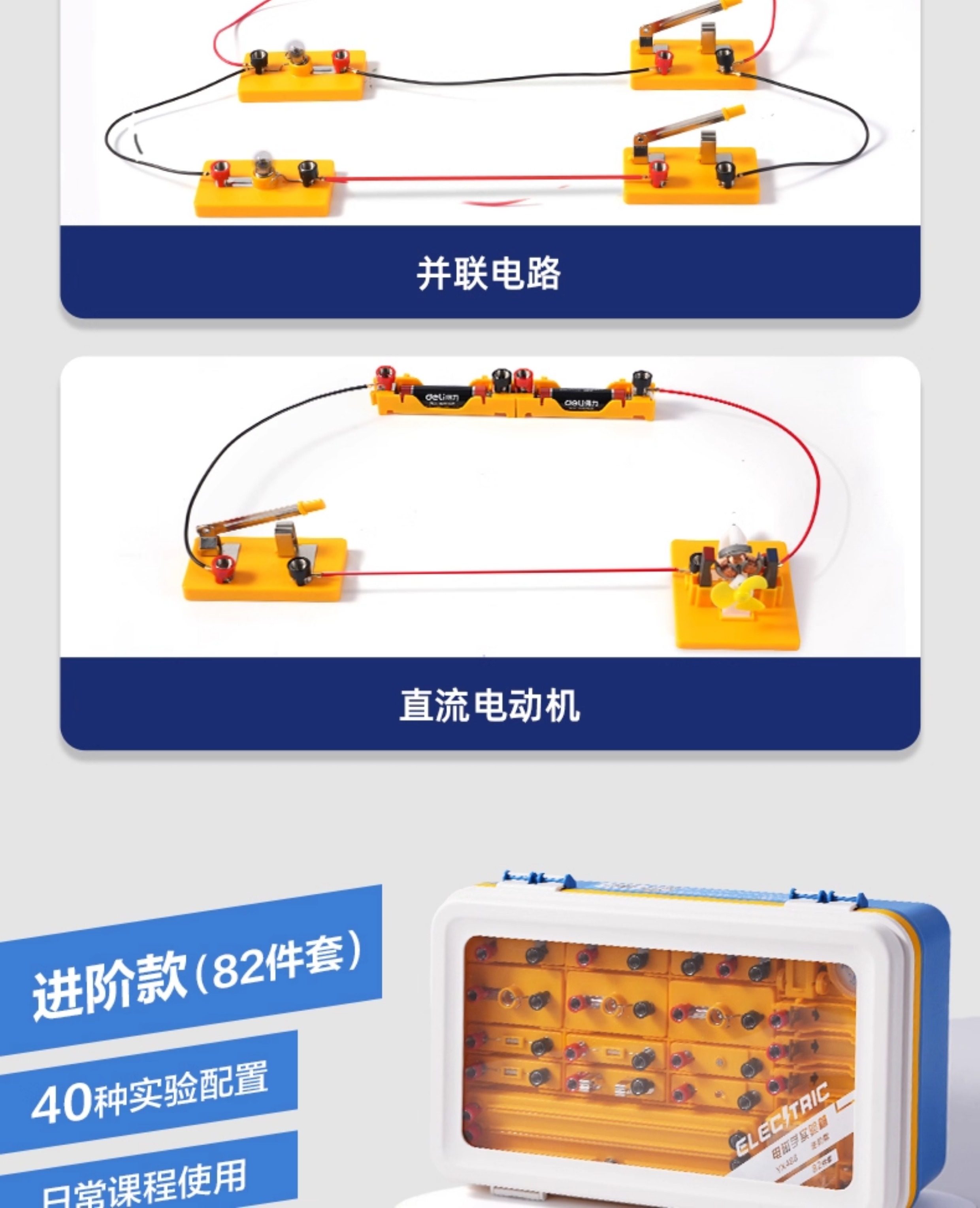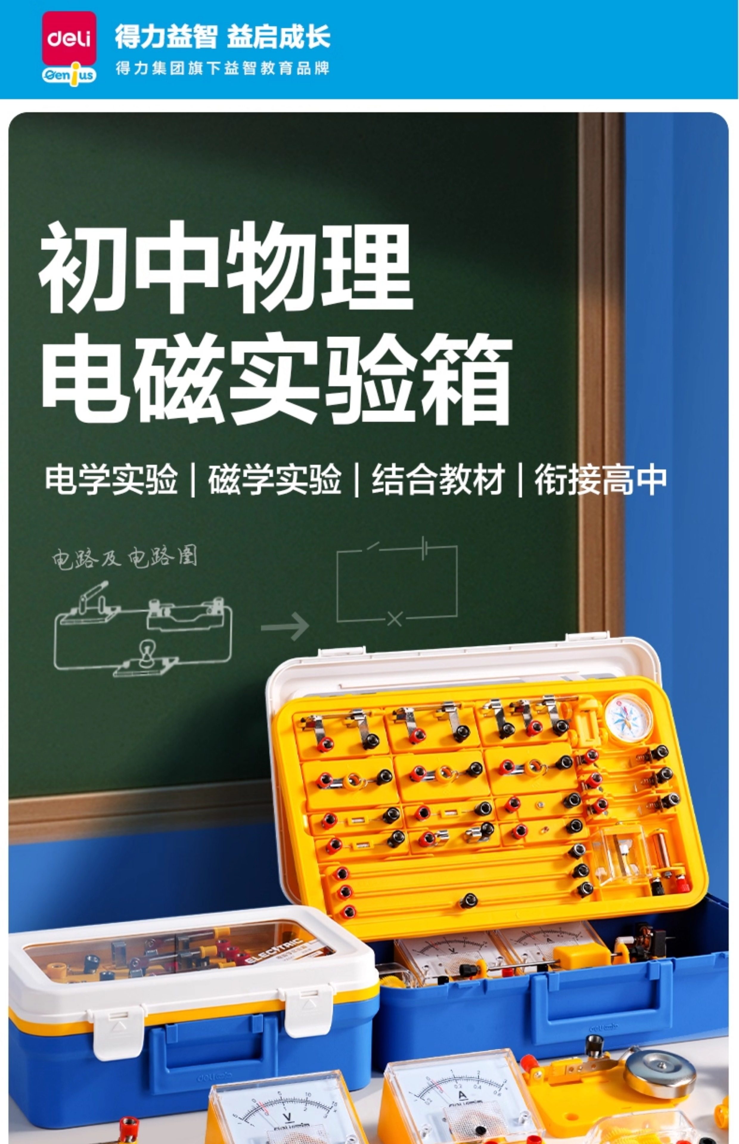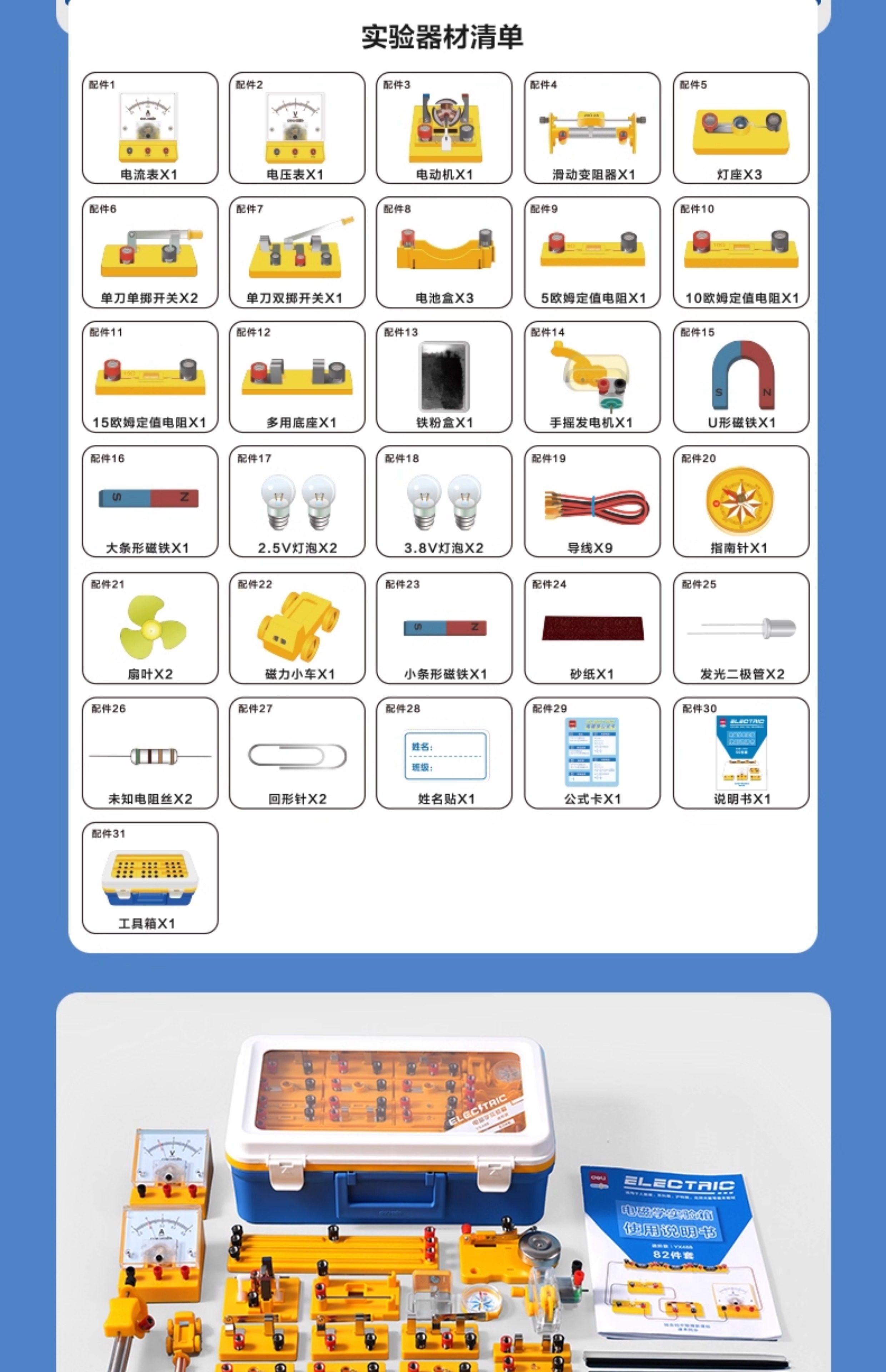 Deli Junior High School Physics Experiment Kit Complete Set of Experimental Equipment for Second and Third Grade Students, Electricity Experiment Box, Circuit, Electromagnetism, Optics, Mechanics, Chemistry, High School Entrance Exam, Electronic Experiment Set for Seventh, Eighth, and Ninth Grade Students