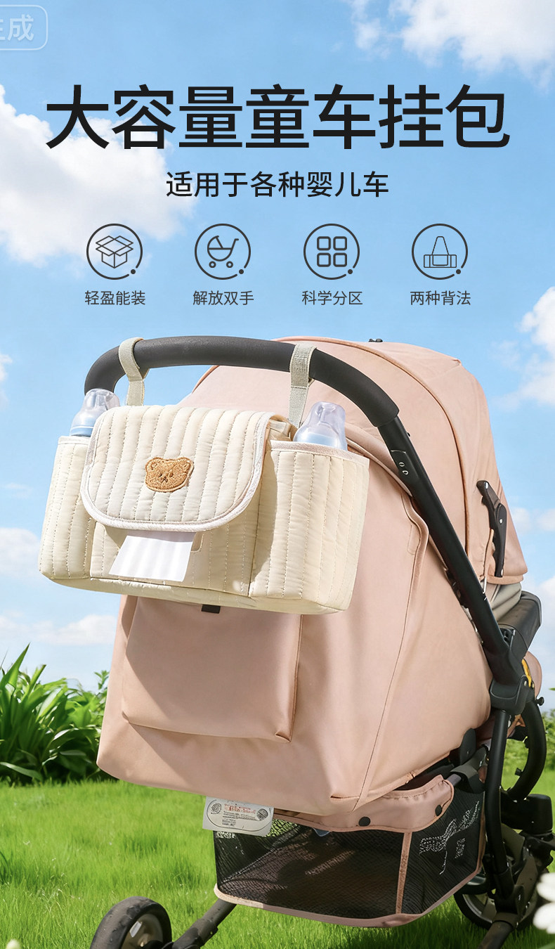 Baby Stroller Organizer Bag, Pocket Stroller Accessory, Universal Accessory for Outings, Hook Basket