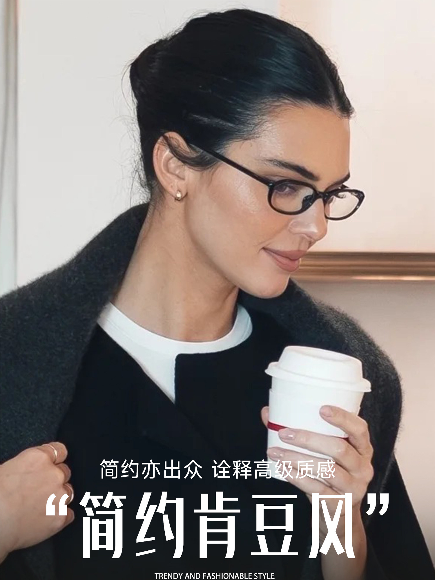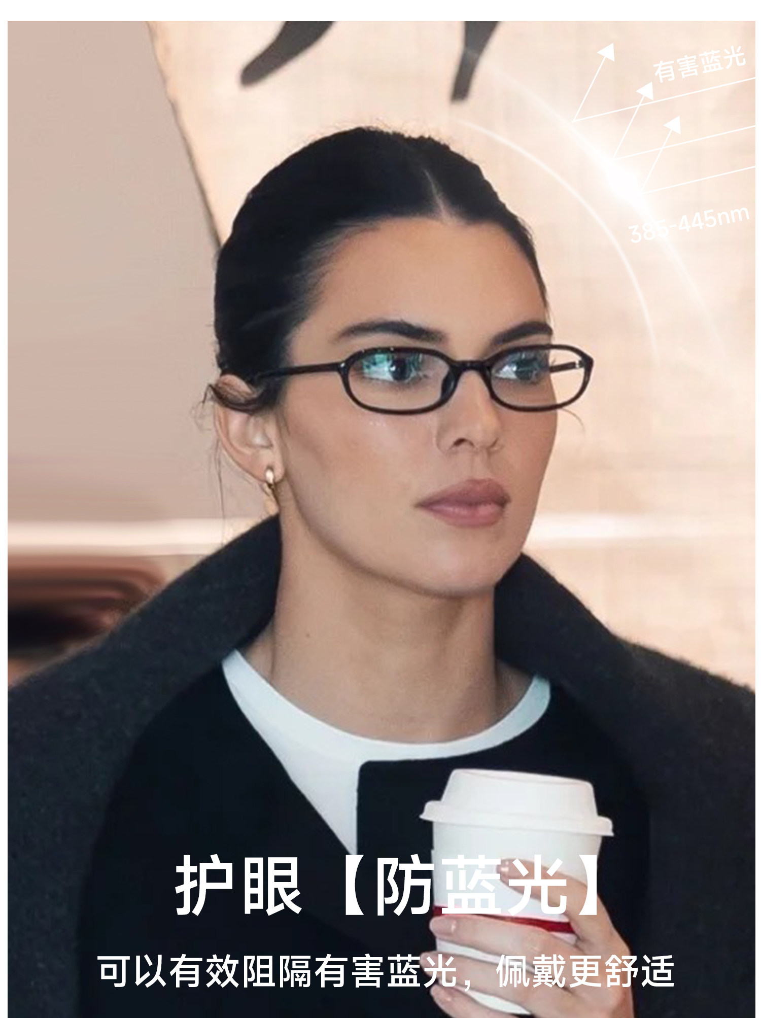 Kendall Jenner Style High-End Black Frame Glasses for Women with Myopia, Can Be Fitted with Prescription Lenses, Anti-Blue Light, Natural Look, Slimming Effect