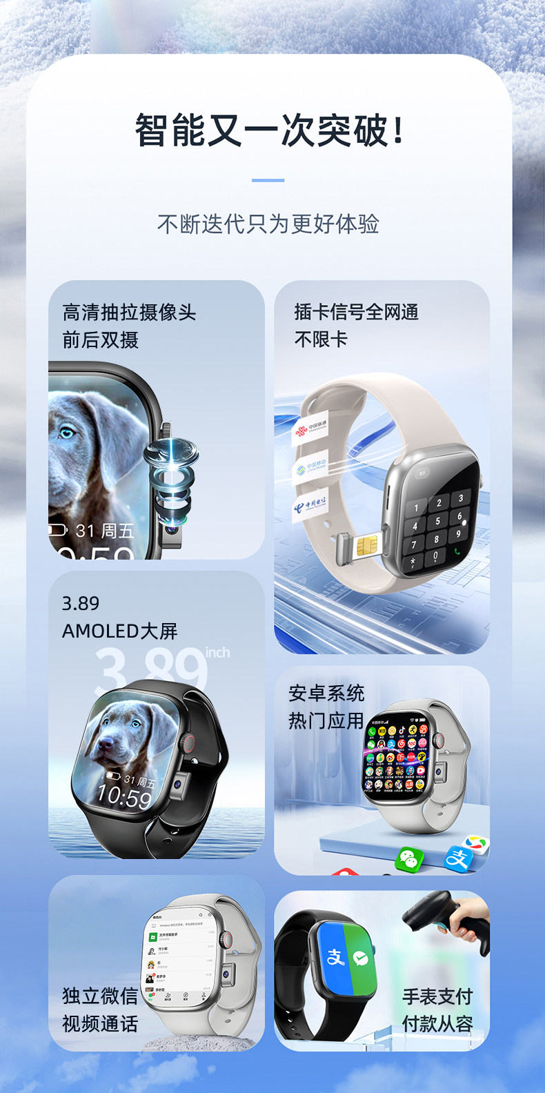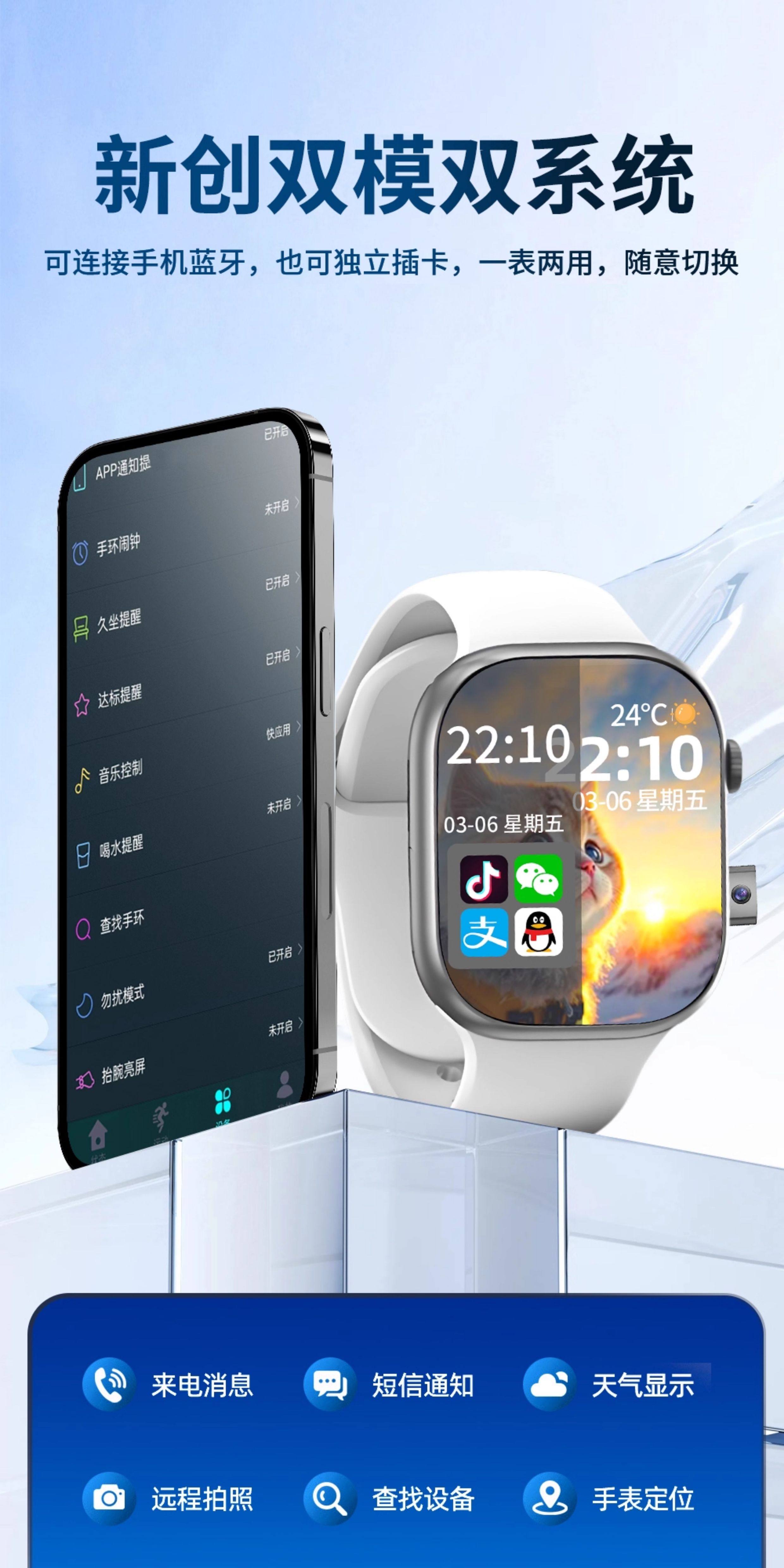 Dual System [Official Genuine Product] Huaqiangbei New Watchs10 Smart Phone Watch 5g with Sim Card Slot, Downloadable Apps, Multifunctional, Waterproof, for Men, Women, Teenagers, and High School Students