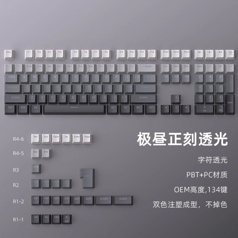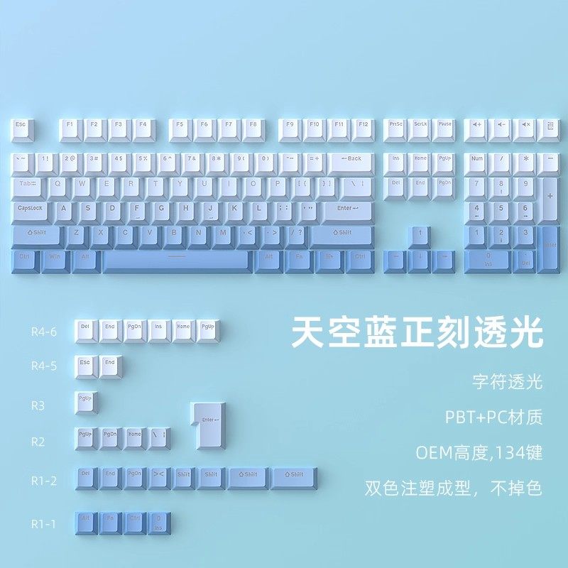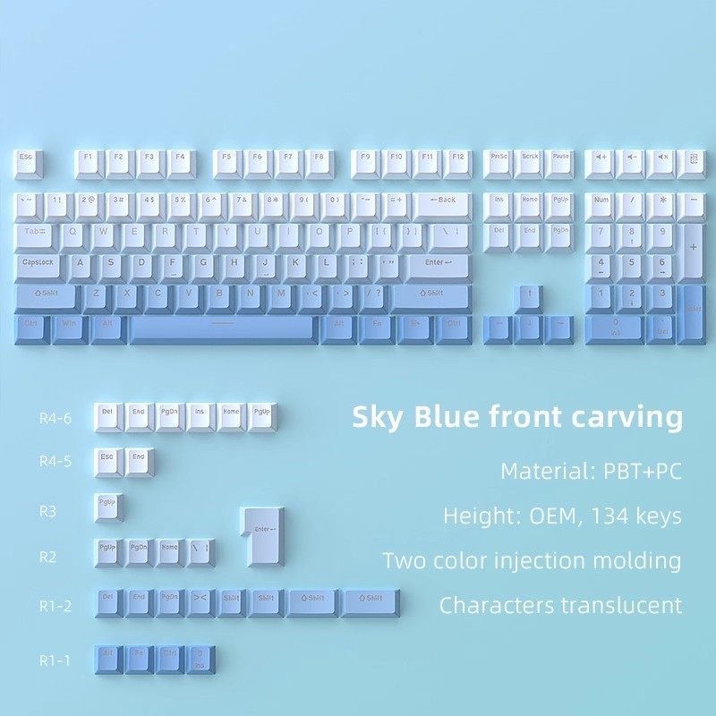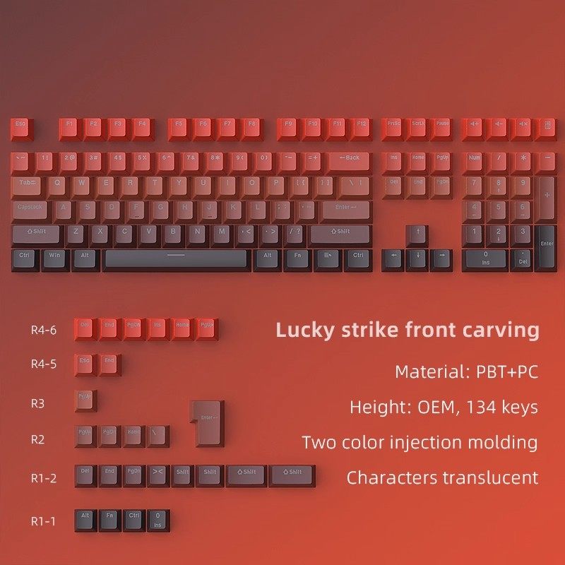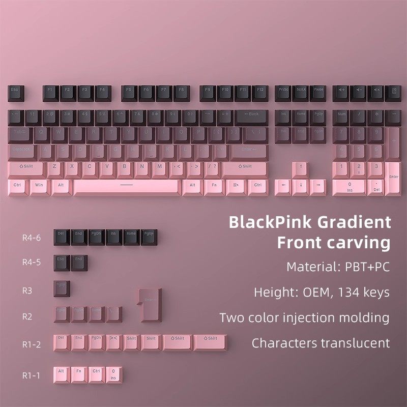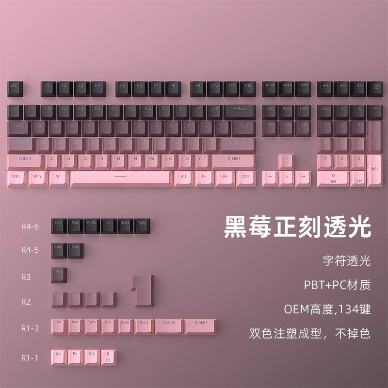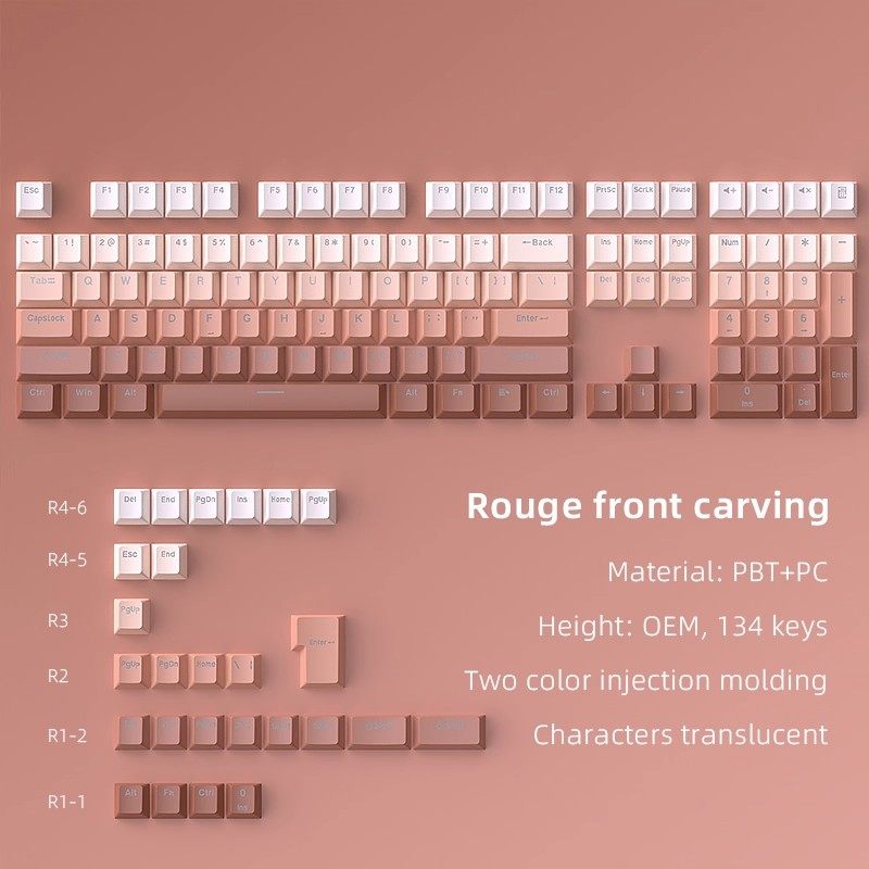 Mist Shadow Rouge Keycaps, Front-Engraved, Translucent Gradient Color, Mechanical Keyboard, 134 Keys, Oem Profile, Full Set