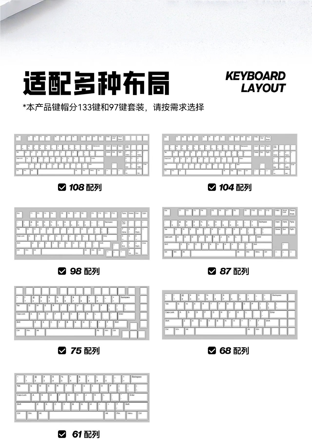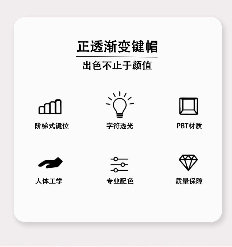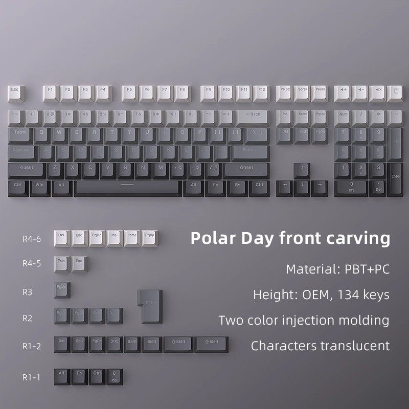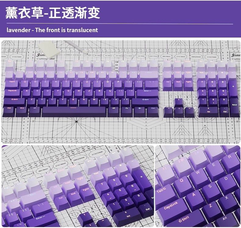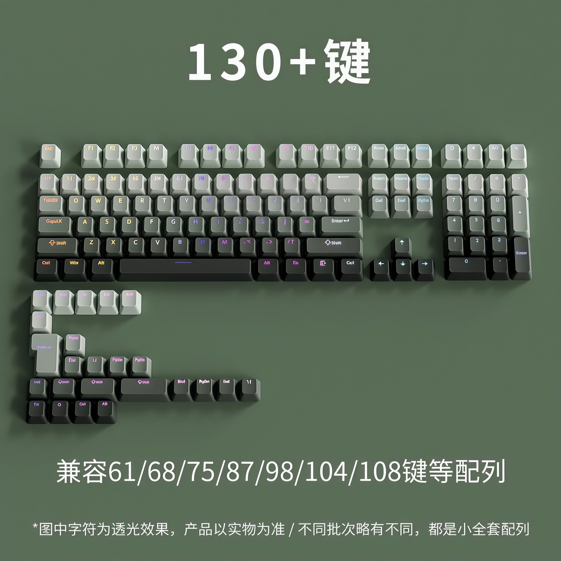 Mist Shadow Rouge Keycaps, Front-Engraved, Translucent Gradient Color, Mechanical Keyboard, 134 Keys, Oem Profile, Full Set