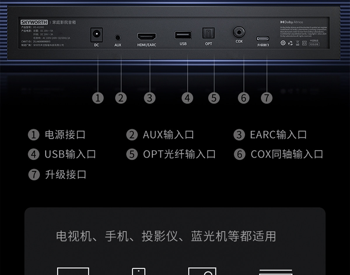 Skyworth A1000 Dolby Atmos Home Theater Speaker Stereo Surround Set Bluetooth Speaker Subwoofer Sound