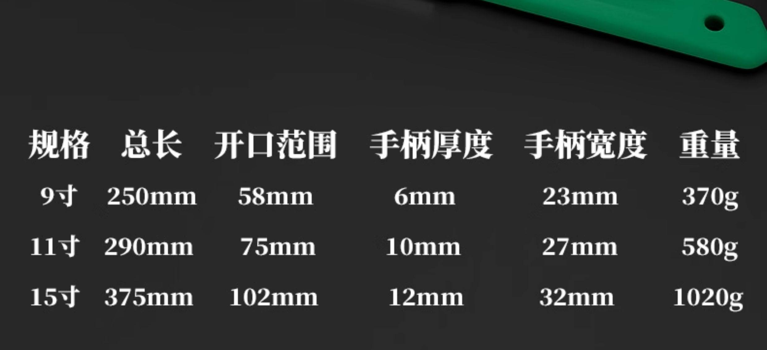 | Color Classification | 9inch F Type Right Angle Adjustable Wrench[Opening 58mm],11inch F Type Right Angle Adjustable Wrench[Opening 75mm],15inch F Type Right Angle Adjustable Wrench[Opening 102mm] |