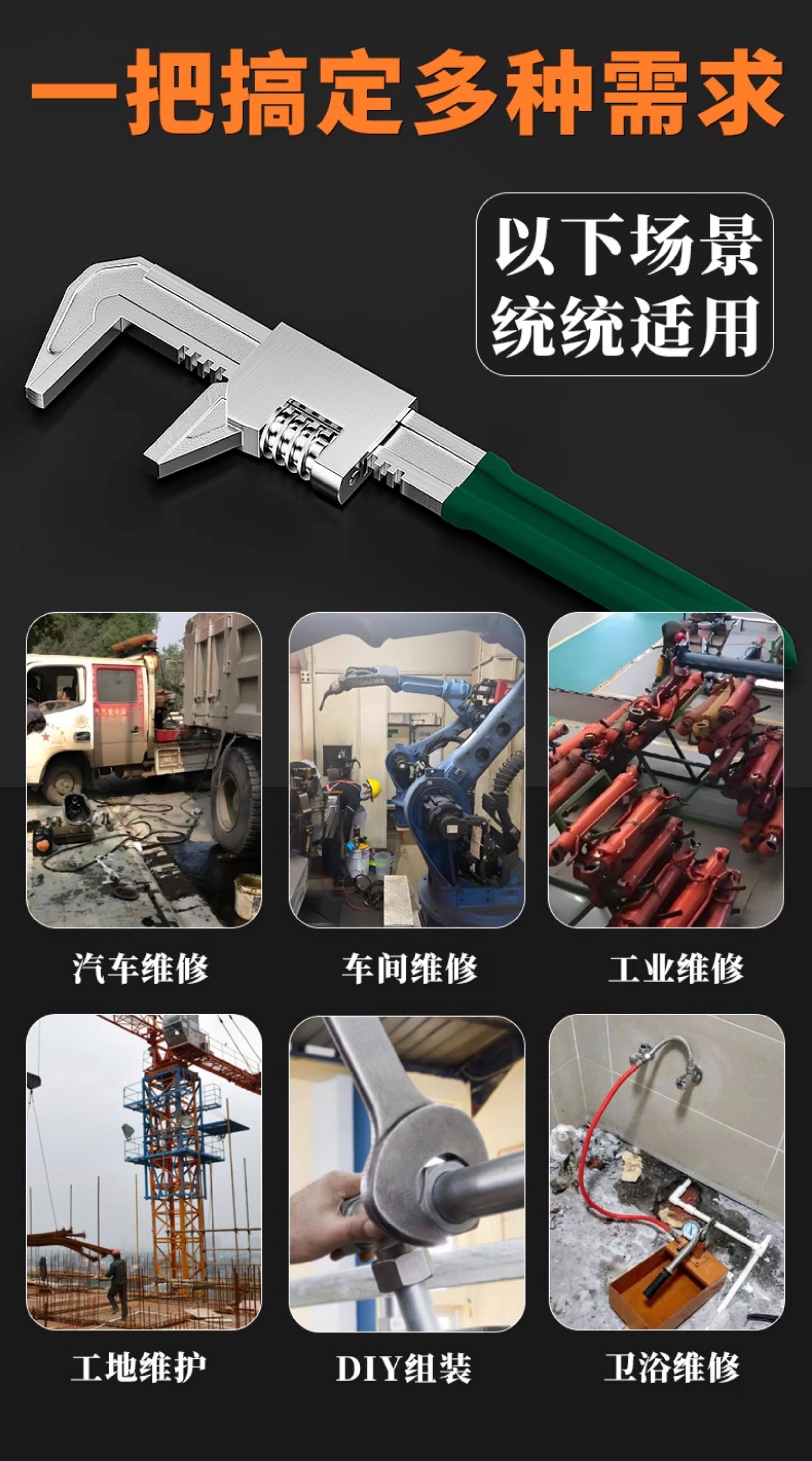 F-Type Wrench, Multi-Functional Thick Style Plate Wrench, Right-Angle Adjustable Wrench, Multi-Functional Large Opening Universal Wrench