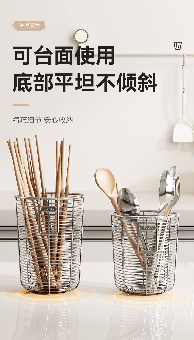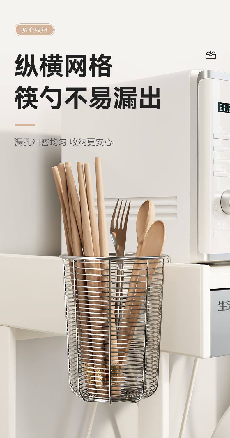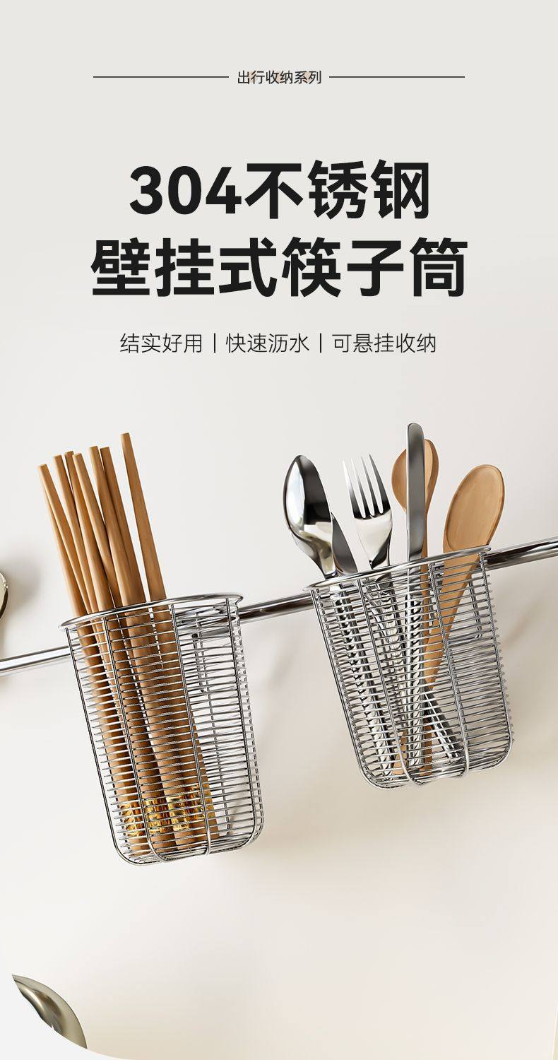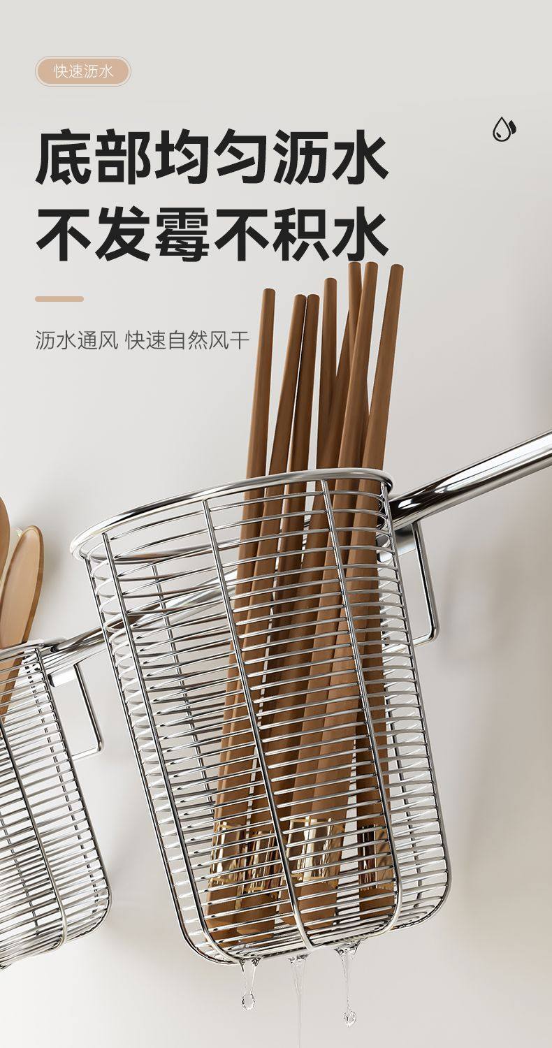 304 Stainless Steel Chopstick Holder, New Model for Home Use, Mold-Resistant, Wall-Mounted, Hollow Chopstick Cage with Hook, Dishwasher-Safe
