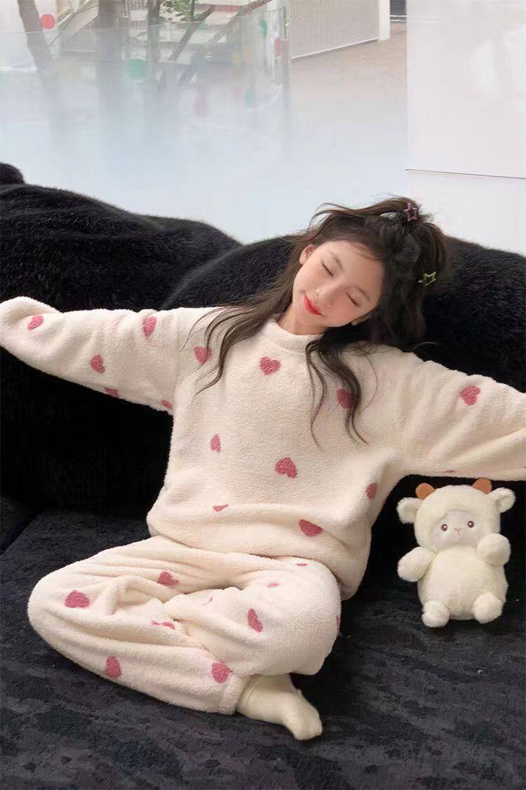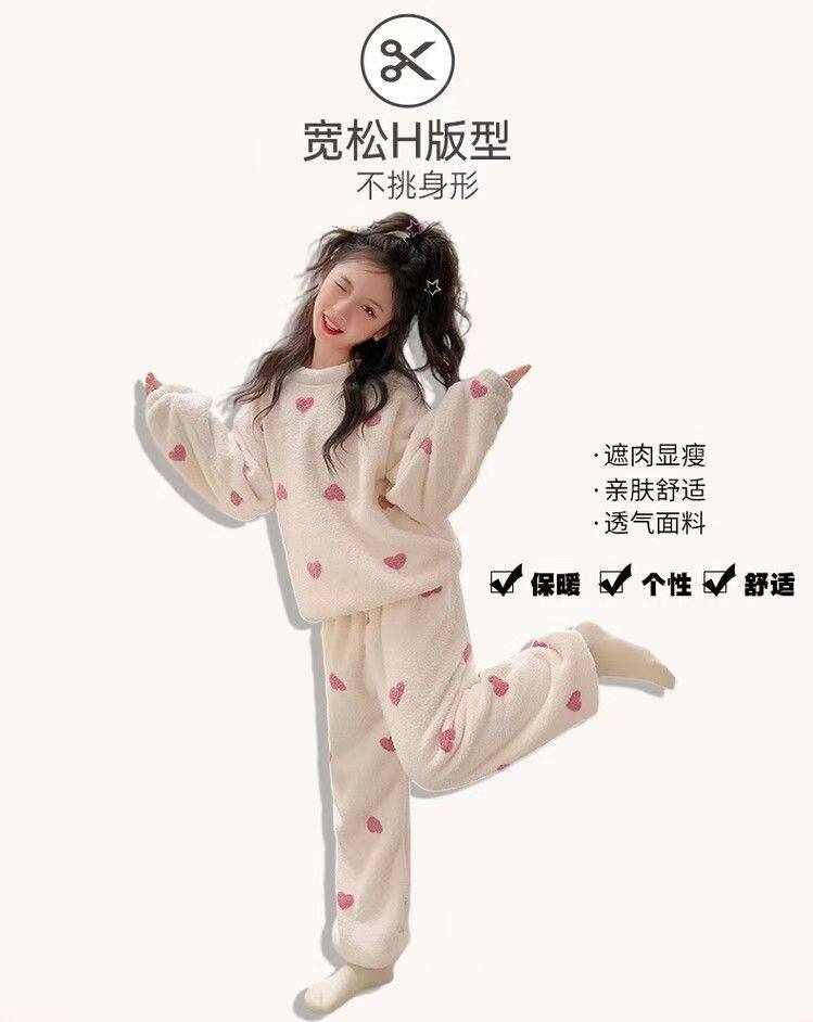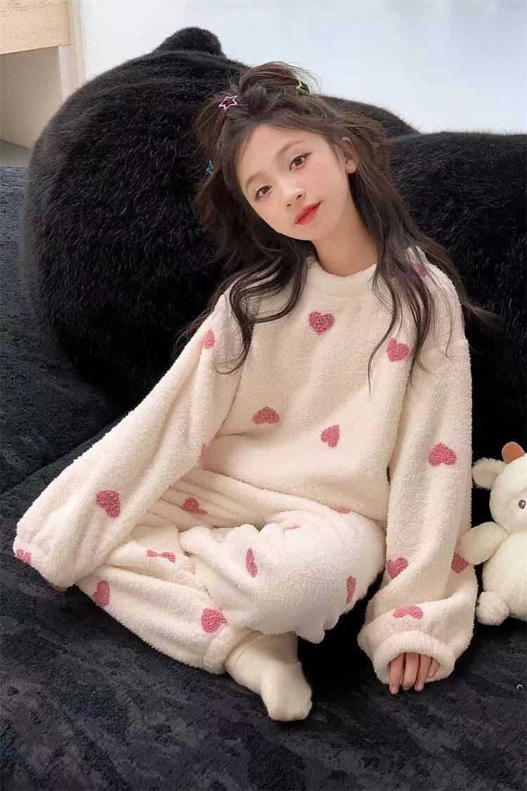 Flannel New Long-Sleeved Long Pants Pajamas for Children Girls Cartoon Autumn and Winter Girls Coral Thickened Home Wear Set