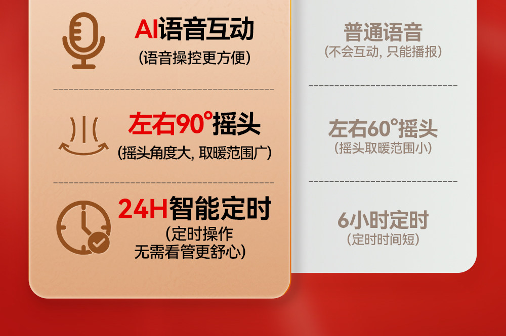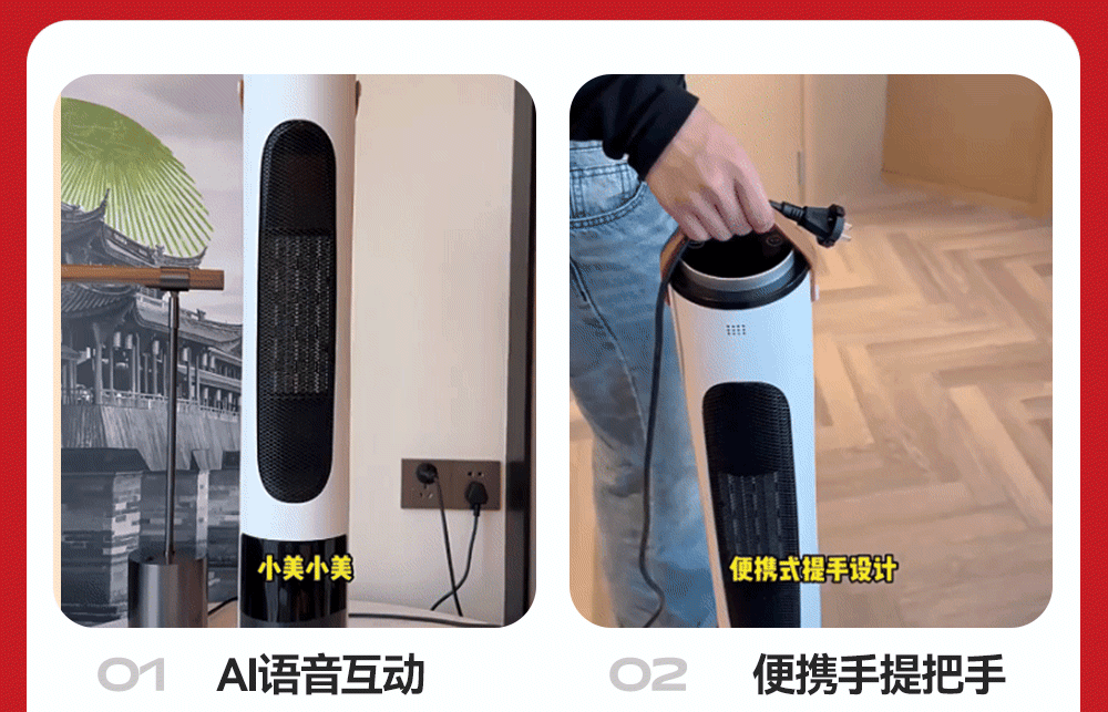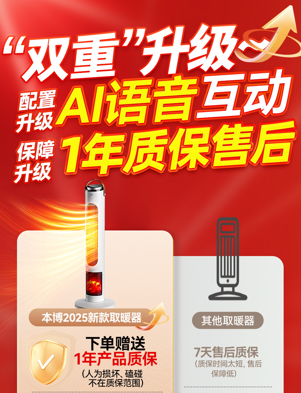 | Color Classification | [Standard Model] Rapid Heating + 3-Level Adjustment + Shaking Head to Deliver Warmth,ãFlagship ModelãHigh Airflow & Warmth Delivery + Energy-Saving Inverter Technology + 3-Speed Adjustable + Whisper-Quiet Operation + Wide-Angle Oscillation,ãPremium Editionã800Mm Heightened Design + 3-Second Rapid Heating + Smart Thermostat + Tip-Over Protection + Wide-Angle Oscillation + True Energy Saving,[Remote Control Model] Remote Control + Rapid Heating + Intelligent Touch + Intelligent Timing,ãUpgraded Remote ControlãLarge Area Heating + 3-Second Rapid Heating + Hot & Cold Dual Use + Smart Thermostat + Wide-Angle Oscillation,[Remote Control Top Model] 2000W Fast Heating + 800mm Heightening + 5D Simulated Fireplace Flame + Wide-Angle Heating + True Energy Saving + Dumping Power Off,ãAi Voice TechnologyãAi Voice Interaction + Smart Imported Movement + 2000W Rapid Heating + 800mm Heightened Design + Inverter Energy Saving + Tip-Over Protection |