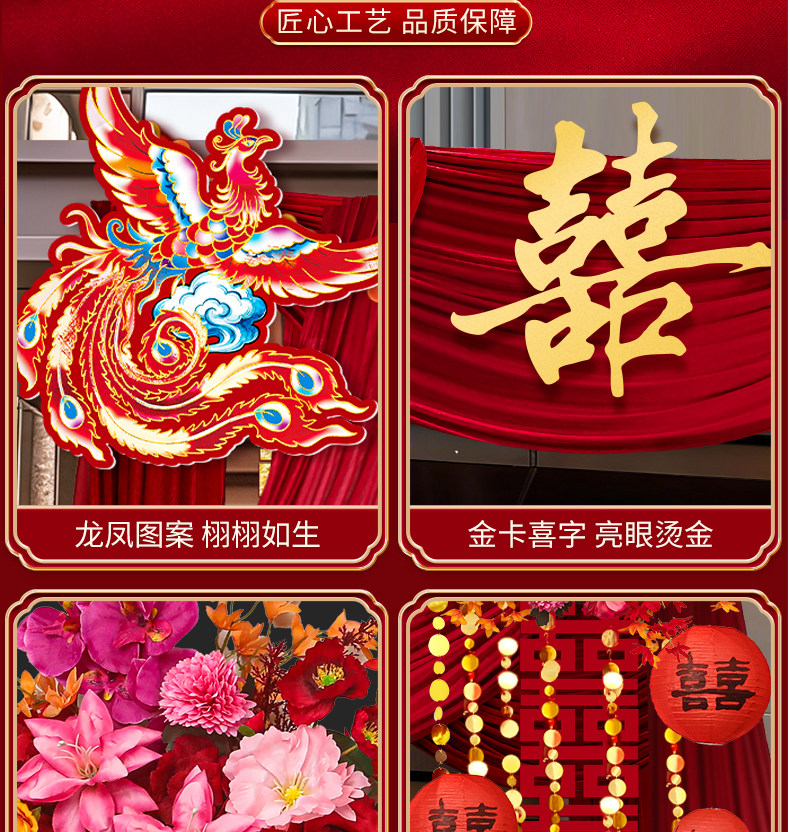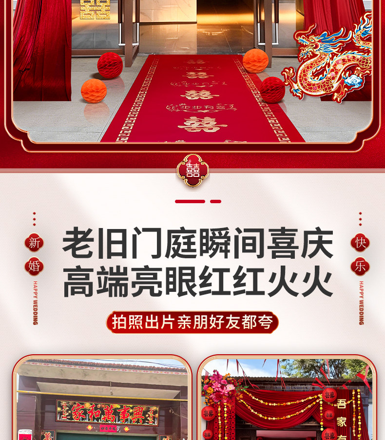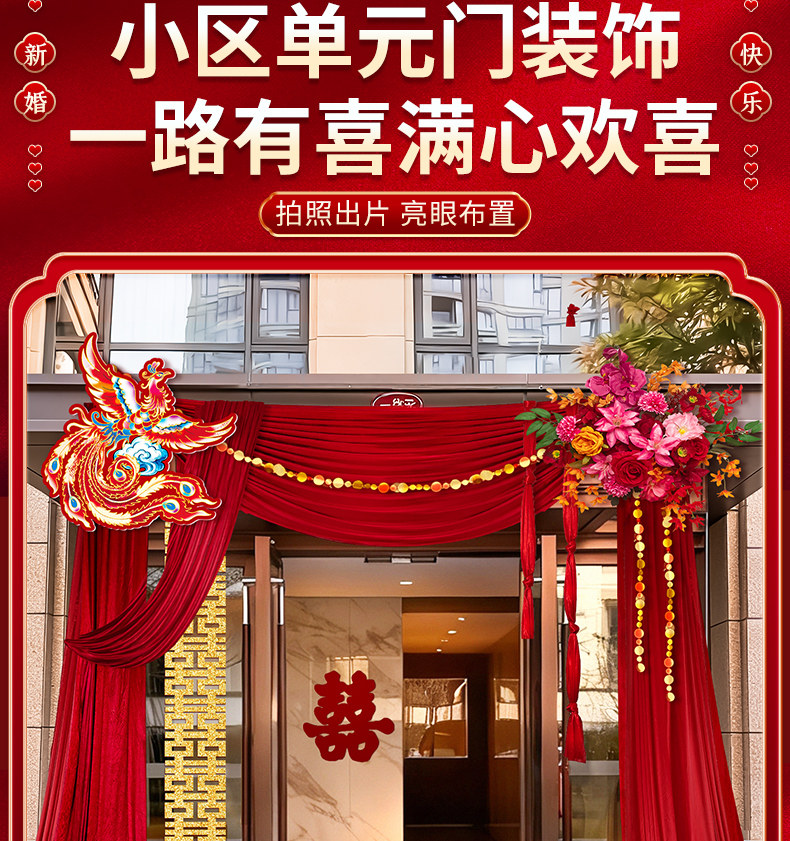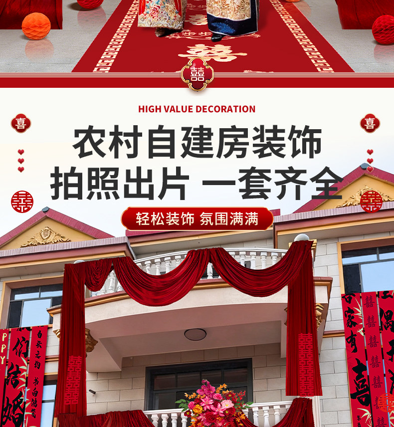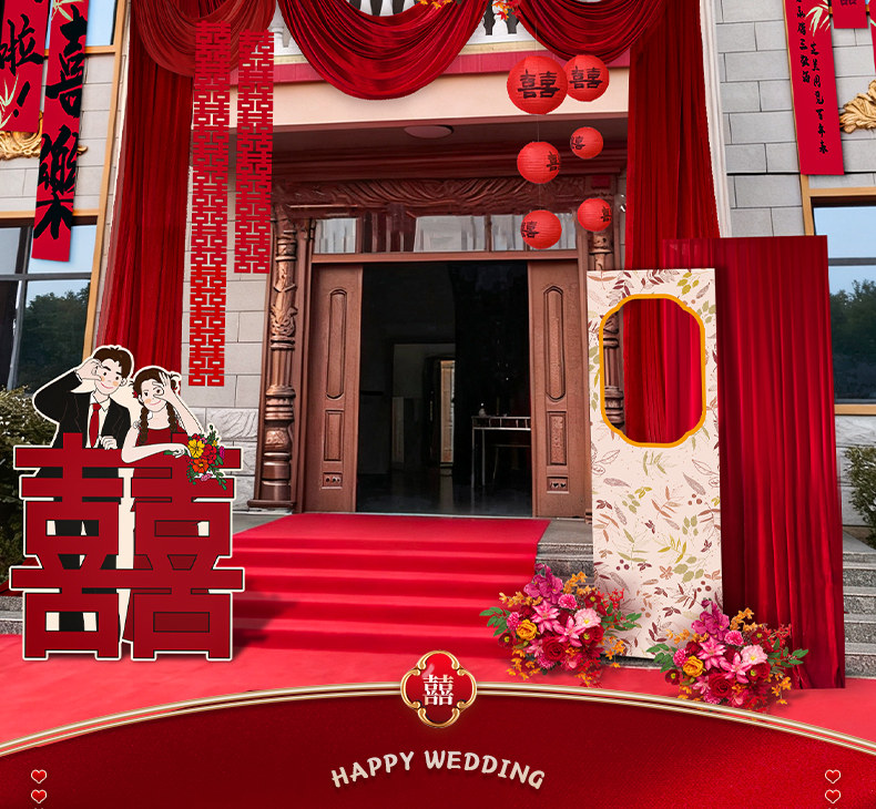 2026 New Style Rural Wedding Courtyard Decoration Wedding Self-Built House Entrance Wedding Room Curtain Arrangement Set