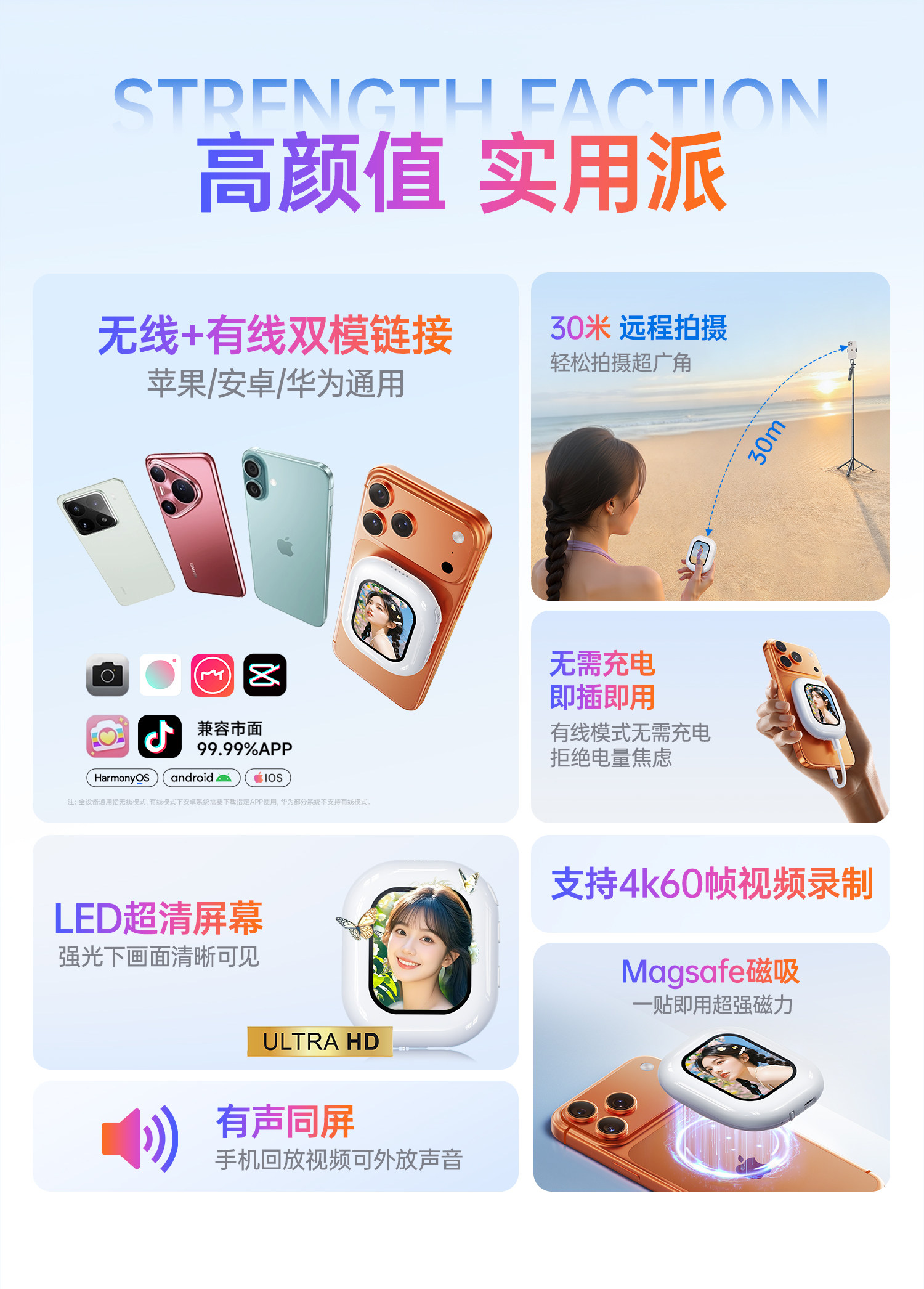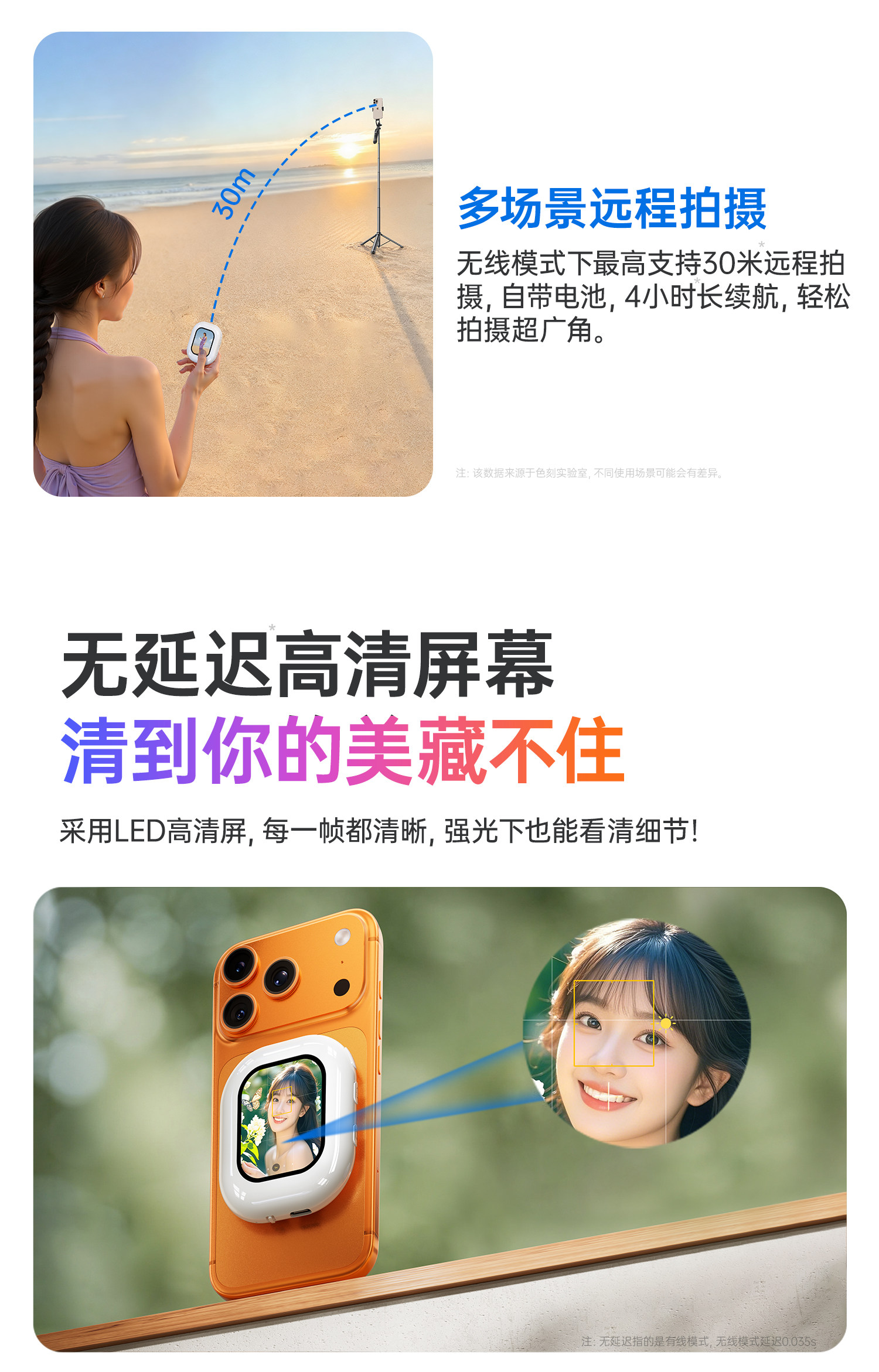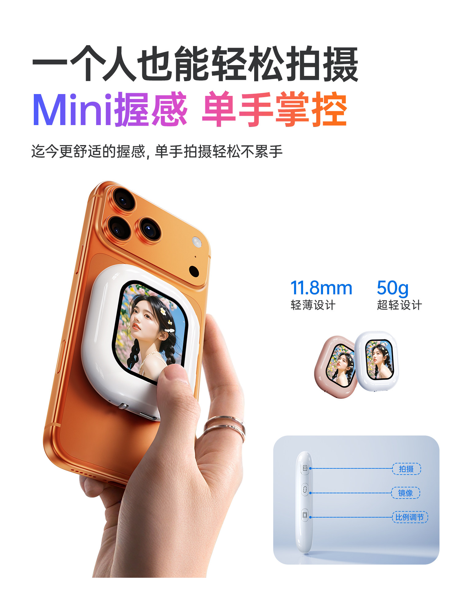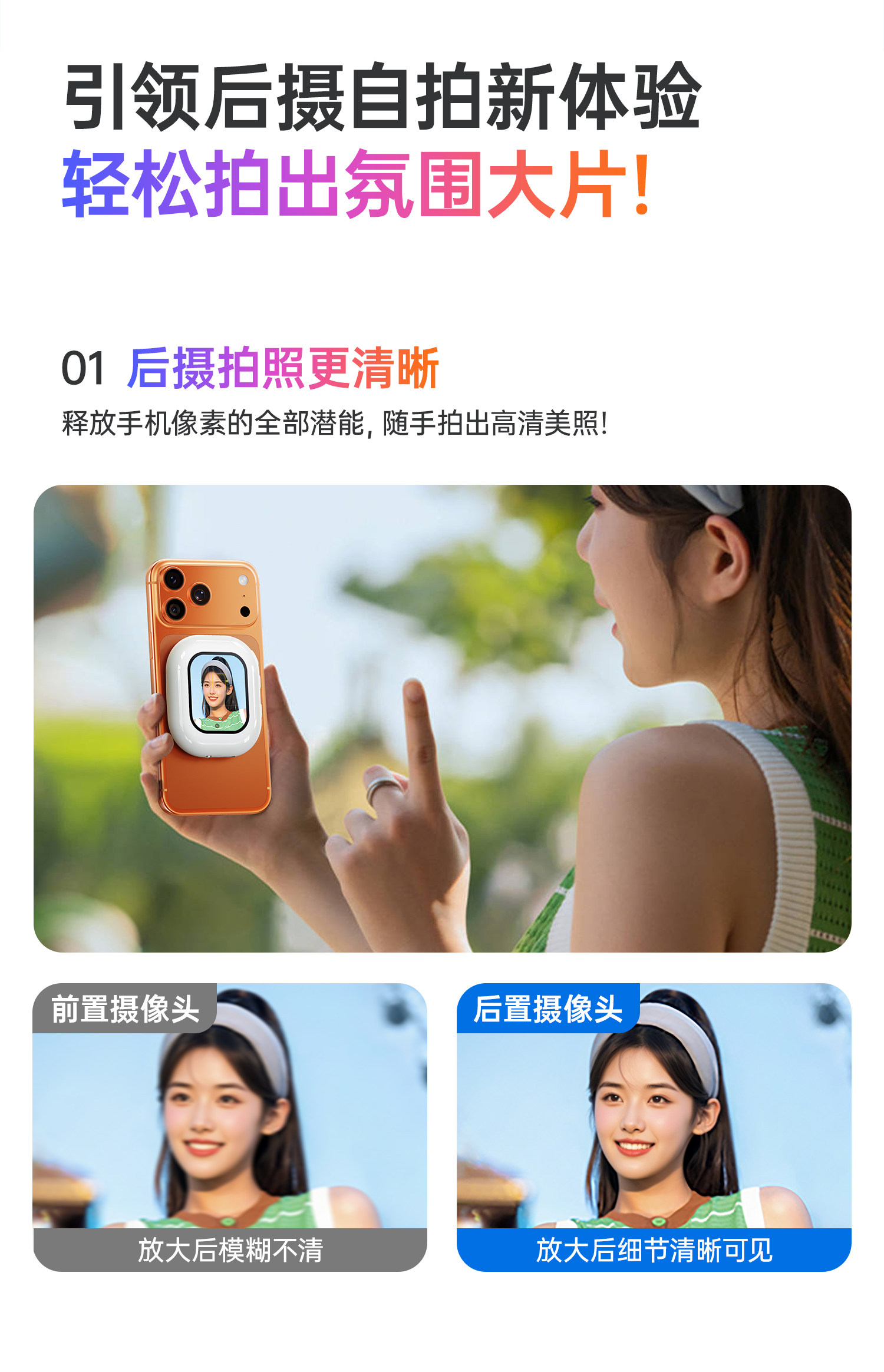 2025 New Model Phone Magnetic Rear Selfie Tool Display Rear Camera Photo Projection Screen Shooting Simultaneous Screen Sharing Device