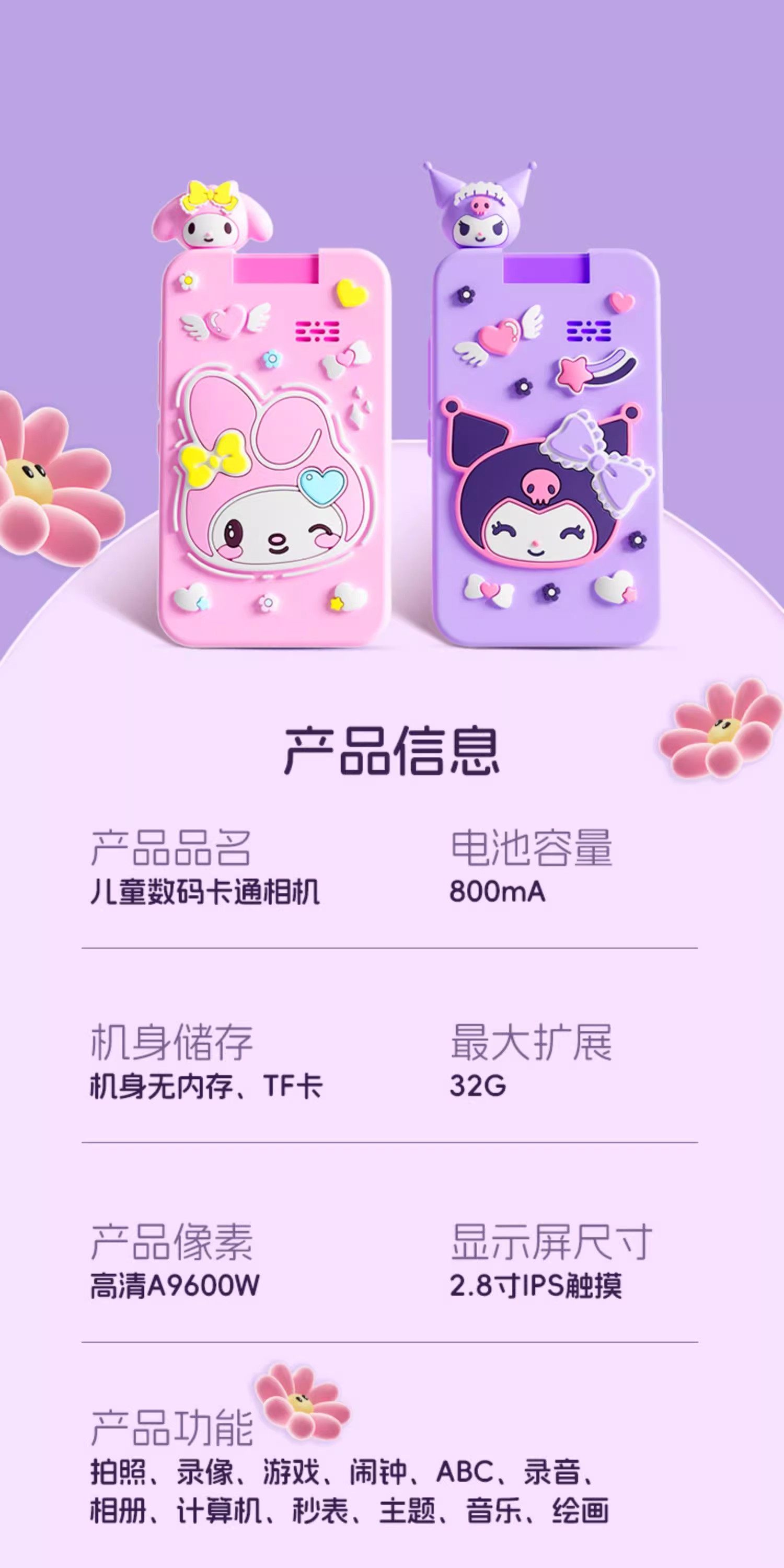| Color Classification | Kuromi-Touch Screen Camera Phone [Lens Can Be Flipped] Gift Bag (Bring Your Own Memory Card),16g Memory Card Reader + Kuromi-Touch Screen Camera Phone [Lens Can Be Flipped] Gift Bag,32g Memory Card Reader + Kuromi-Touch Screen Camera Phone [Lens Can Be Flipped] Gift Bag,64g Memory Card Reader + Kuromi-Touch Screen Camera Phone [Lens Can Be Flipped] Gift Bag,Melody-Touch Screen Camera Phone [Lens Can Be Flipped] Gift Bag (Bring Your Own Memory Card),16g Memory Card Reader + Melody-Touch Screen Camera Phone [Lens Can Be Flipped] Gift Bag,32g Memory Card Reader + Melody-Touch Screen Camera Phone [Lens Can Be Flipped] Gift Bag,64Gb Memory Card Reader + My Melody Touchscreen Camera Phone [Reversible Lens] - Gift Bag Included |