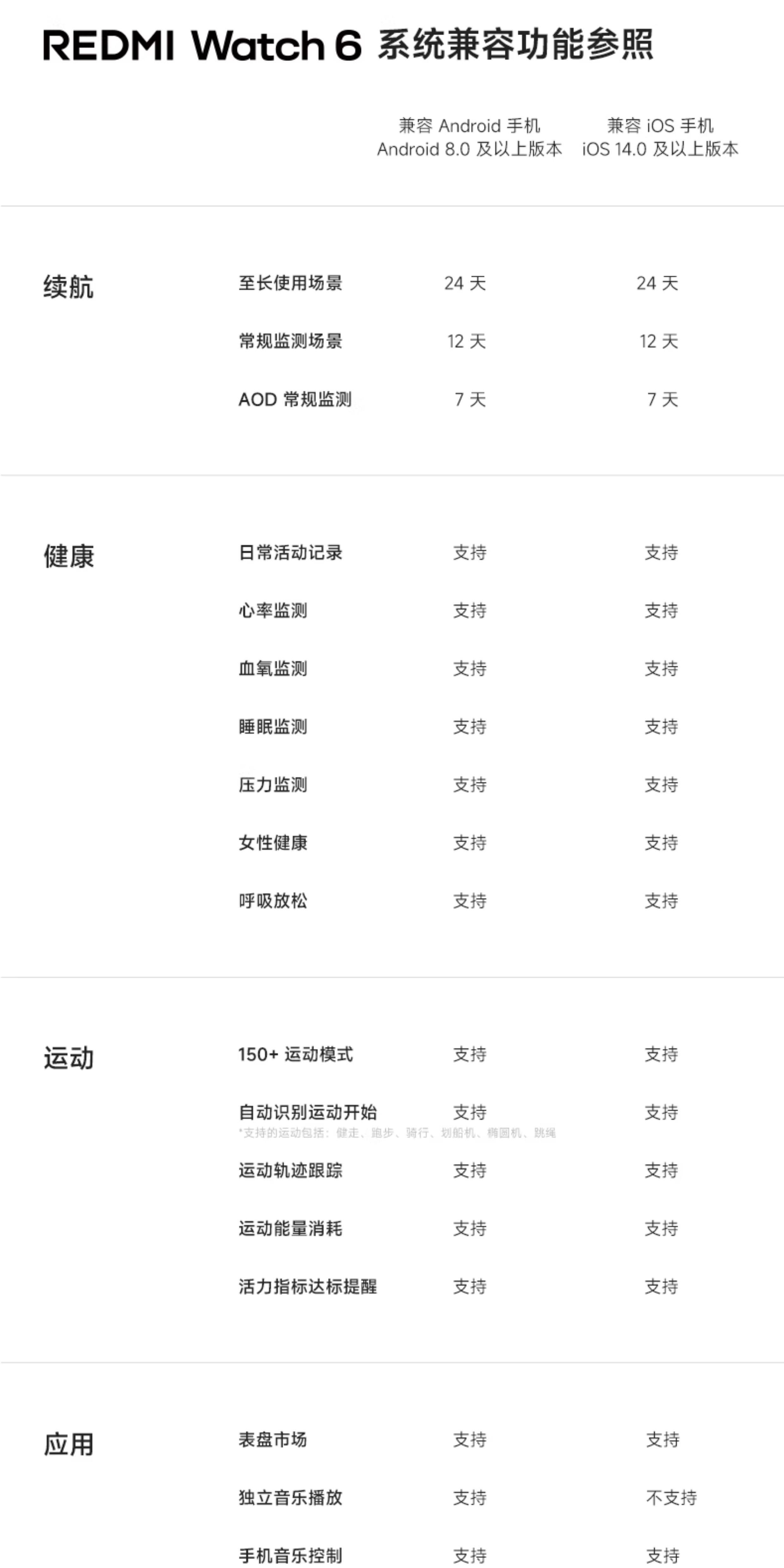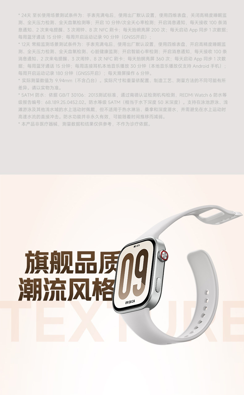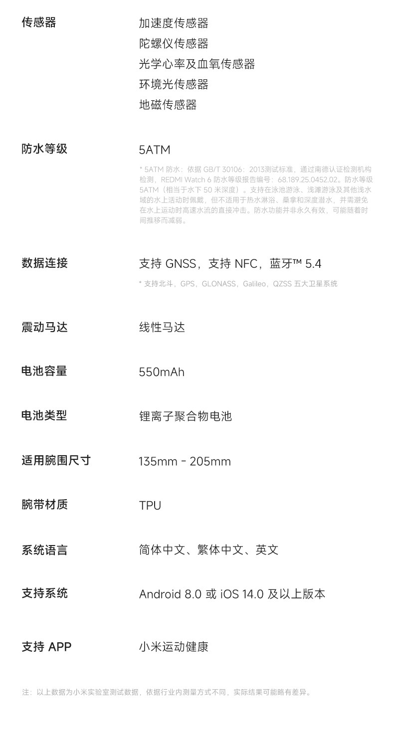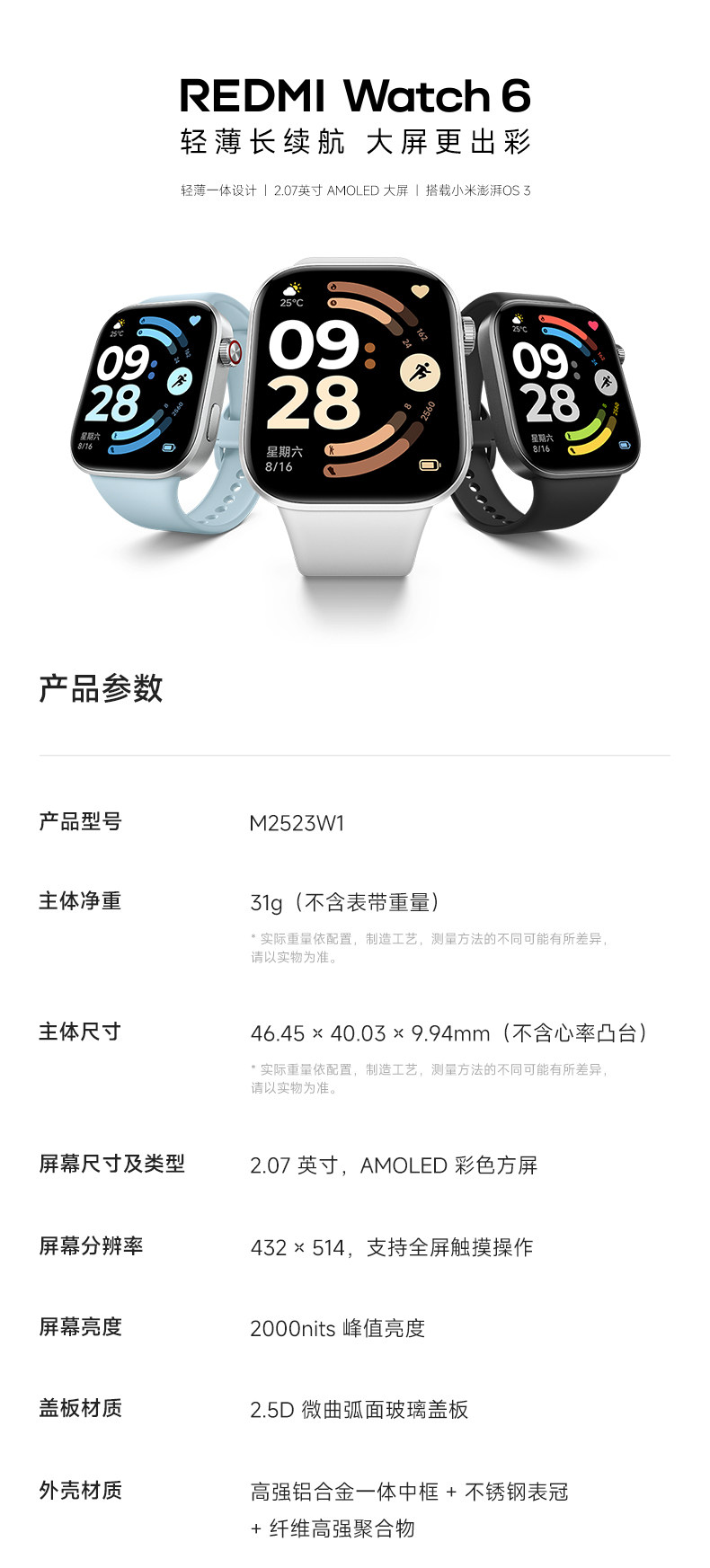 | Appearance Color | Redmi Watch 6 Elegant Black,Redmi Watch 6 Bright Moon Silver,Redmi Watch 6 Misty Blue,Redmi Watch 6 Moonlight Silver |