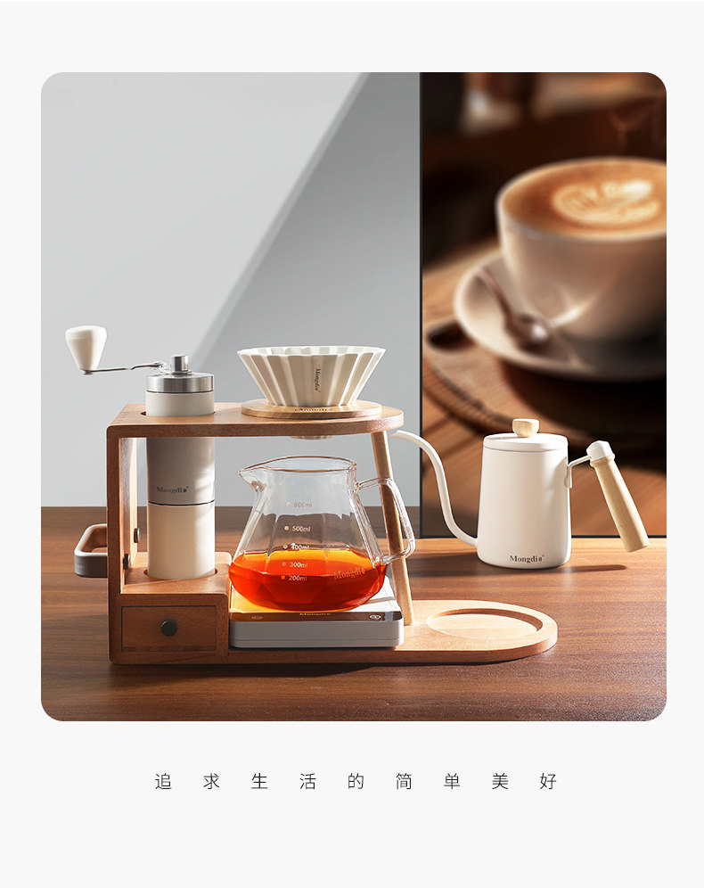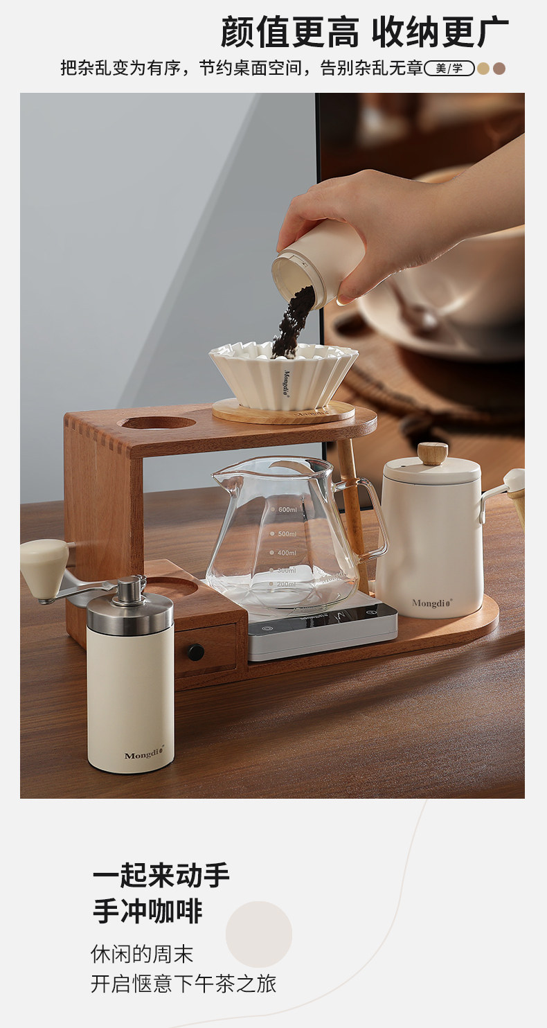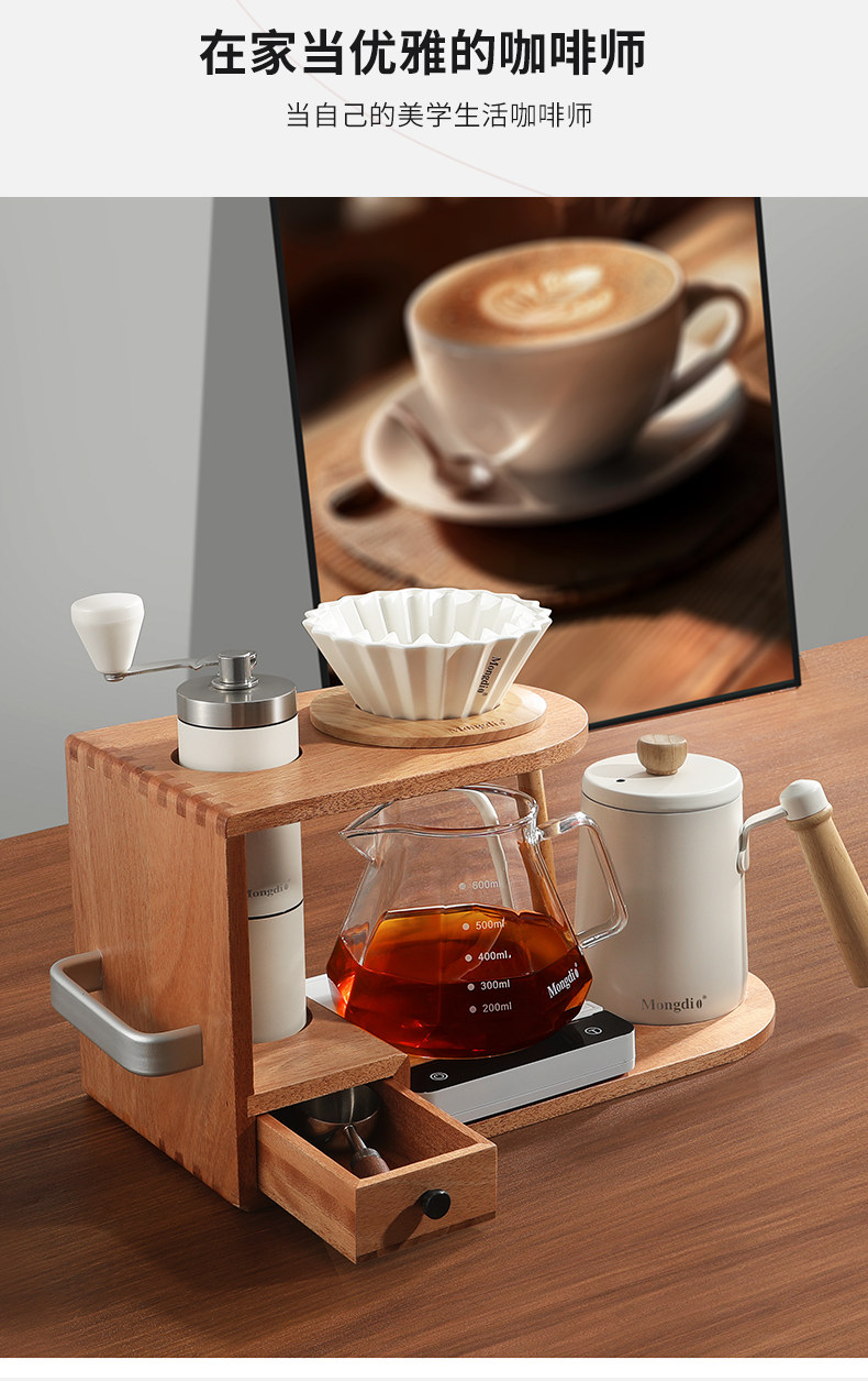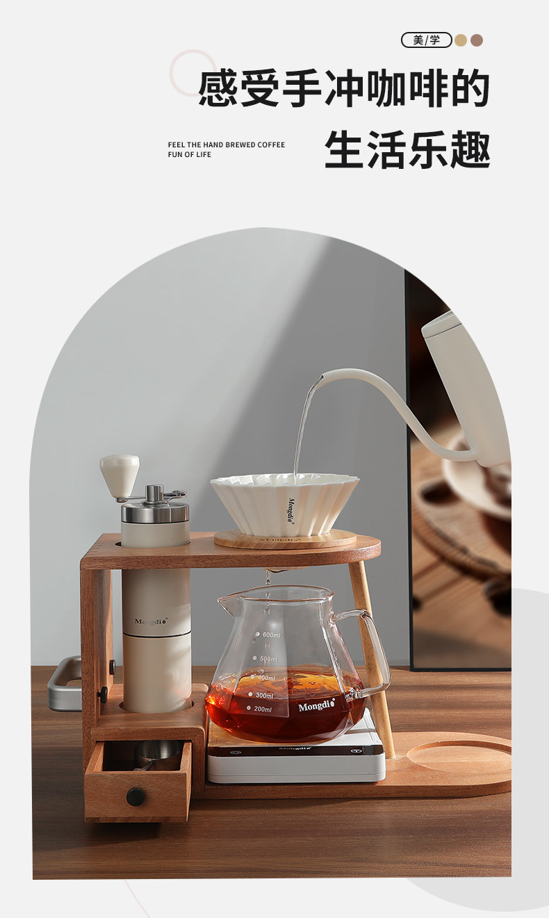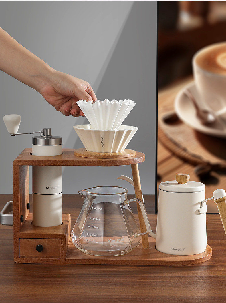 Mongdio Hand-Brewed Coffee Set, Hand-Brewed Coffee Pot, Storage Stand, Hand-Grind Coffee Machine Tools, Complete Set