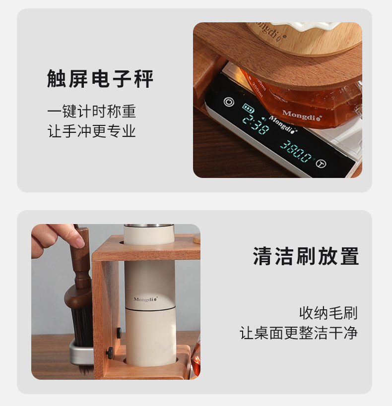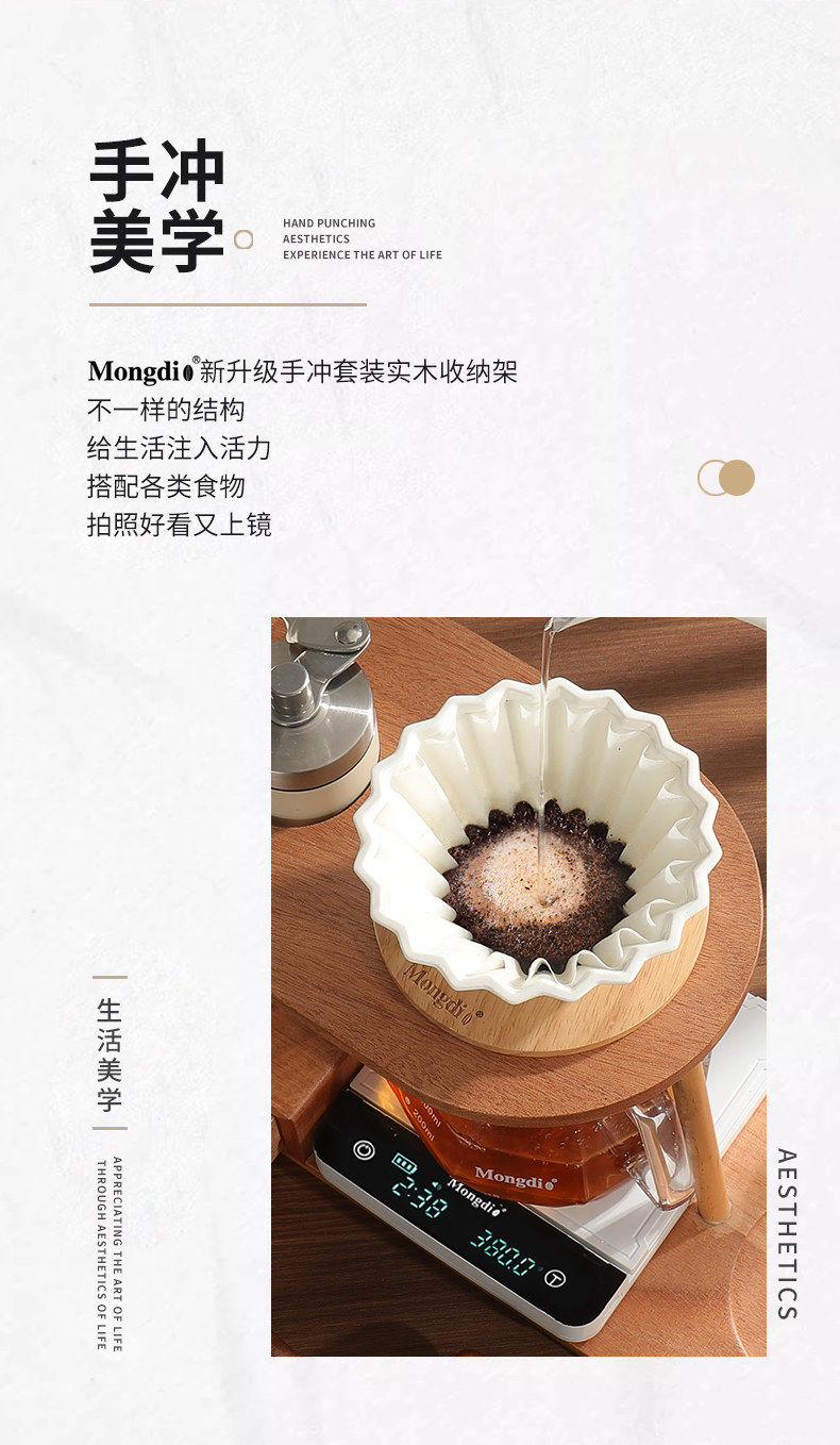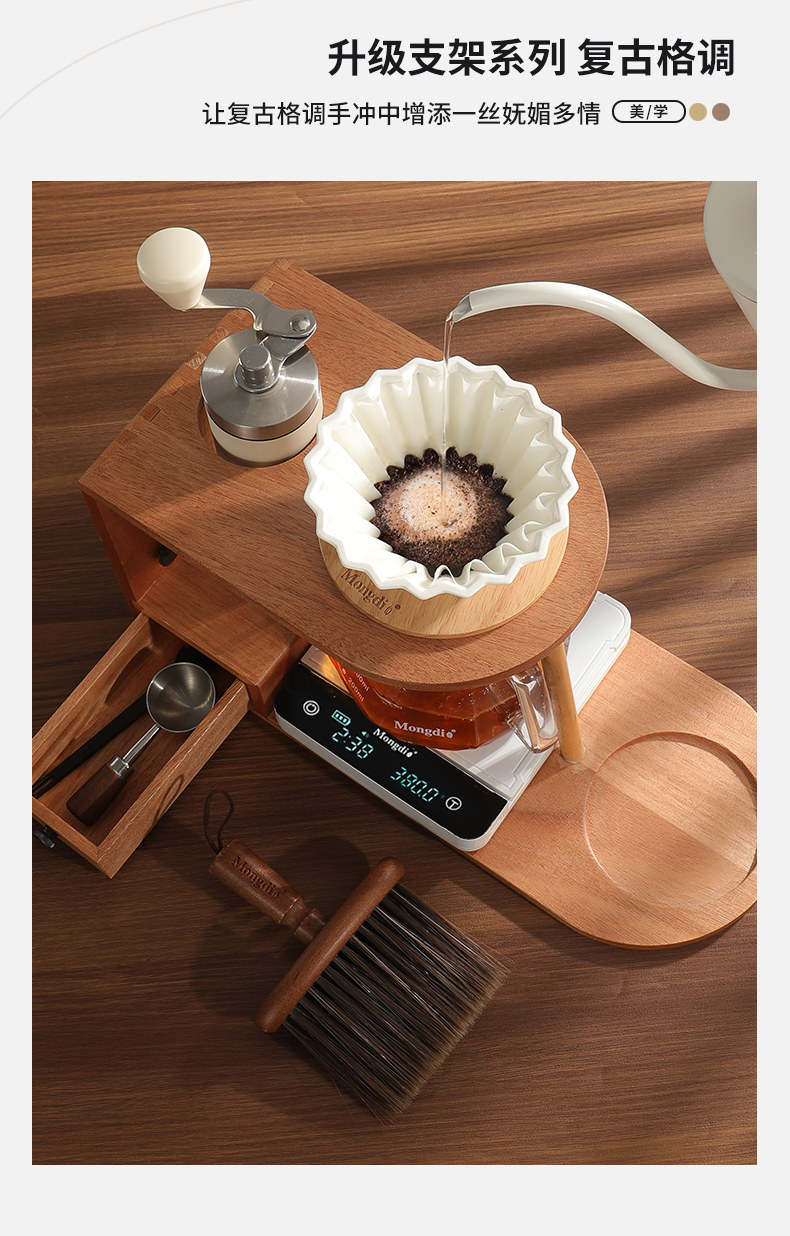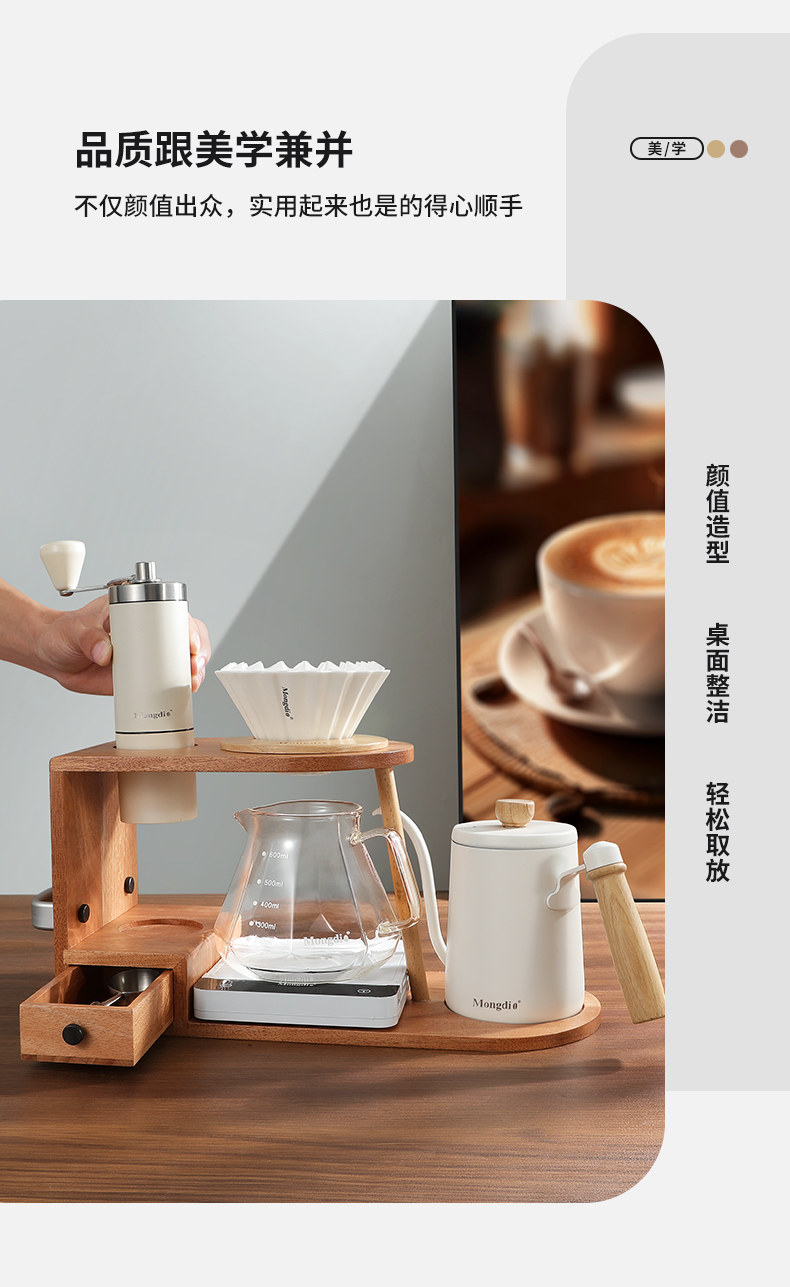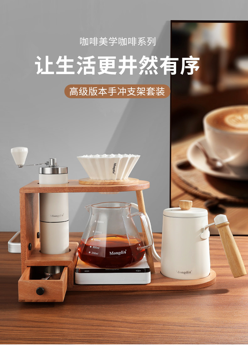 Mongdio Hand-Brewed Coffee Set, Hand-Brewed Coffee Pot, Storage Stand, Hand-Grind Coffee Machine Tools, Complete Set