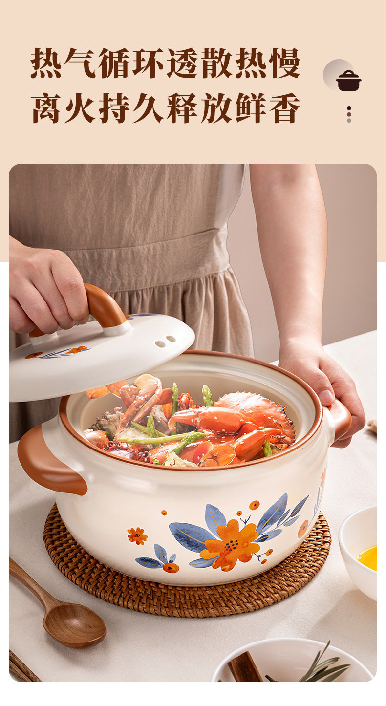 Aistar Clay Pot for Home Use, Suitable for Gas Stoves, High-Temperature Resistant, Non-Cracking, for Soup and Stewing, Wide-Mouth Deep Pot for Claypot Rice