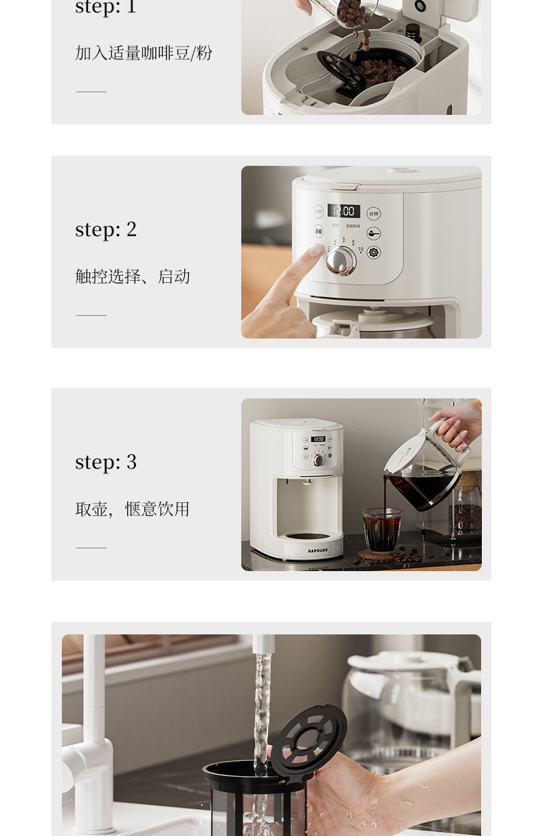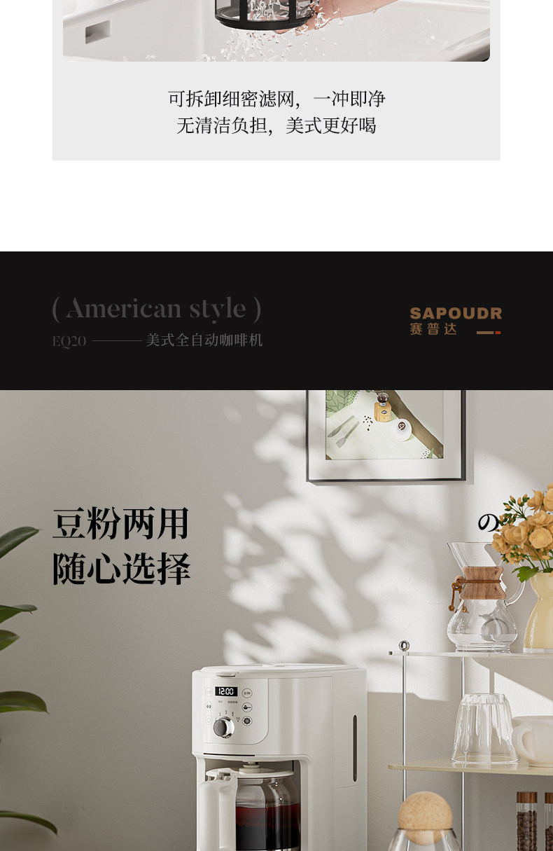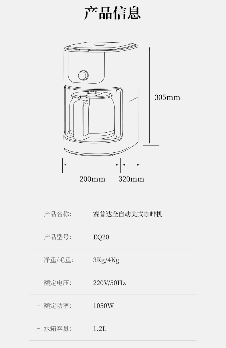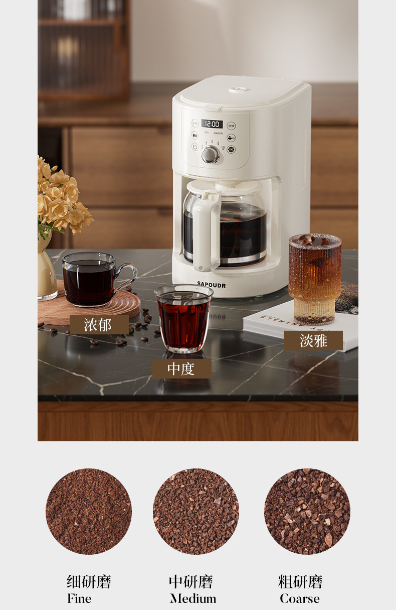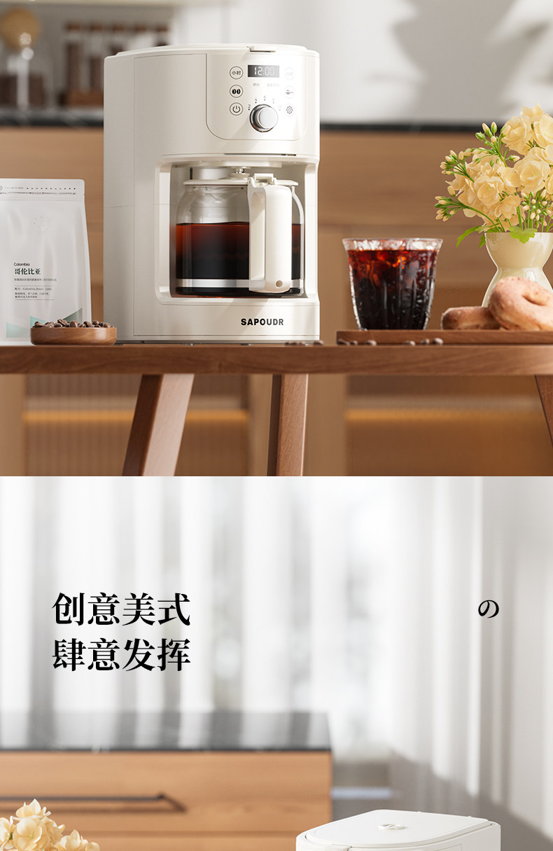 [Gift for Girls] Eq20 American Coffee Machine with Integrated Bean Grinder, Fully Automatic, Smart Drip Coffee Maker for Home and Office