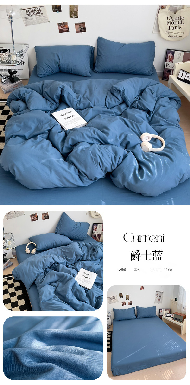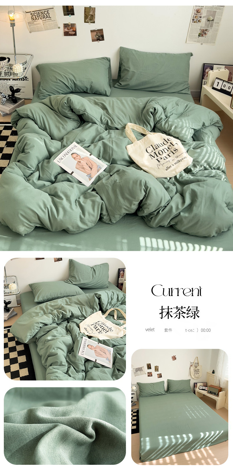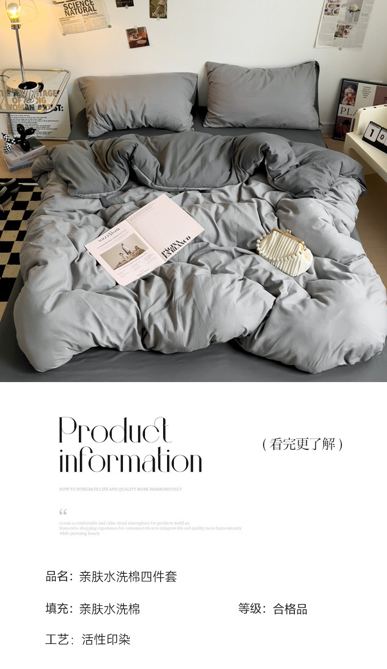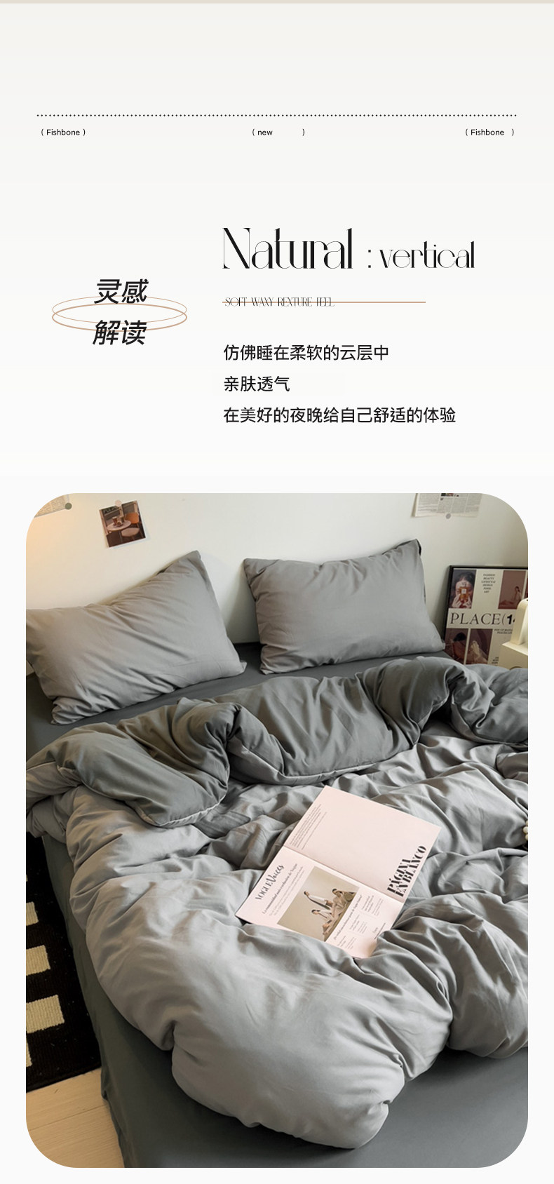 Simple Four-Piece Set, Non-Pure Cotton, All-Cotton Bed Sheet, Duvet Cover, Bedding, Student Dormitory Single Three-Piece Set, Fitted Sheet Style