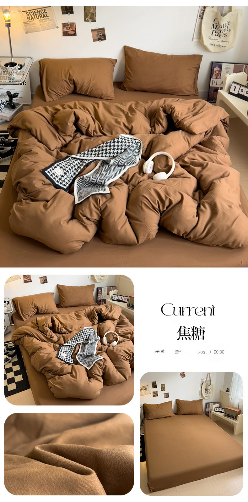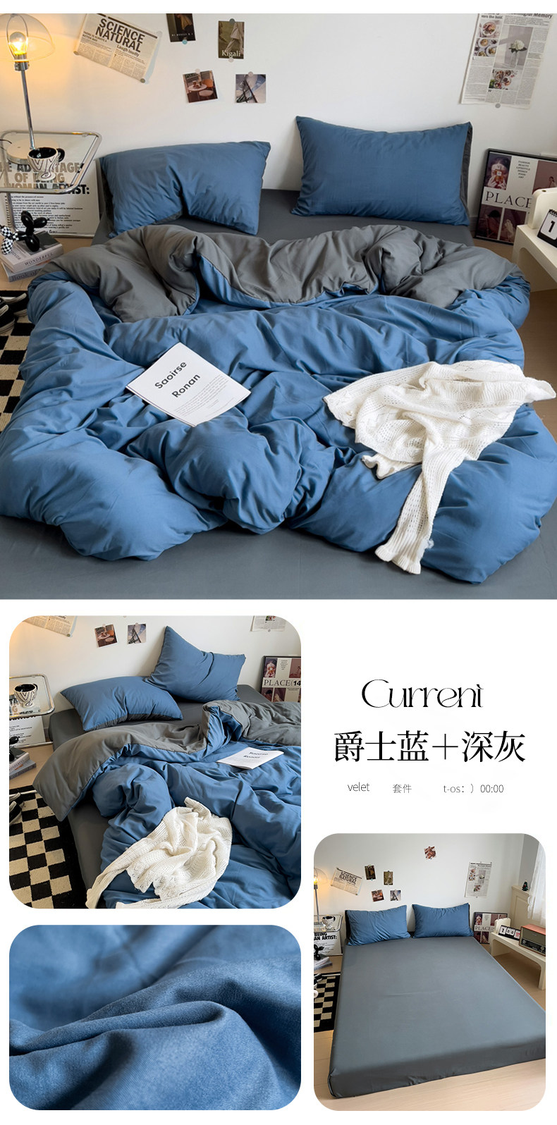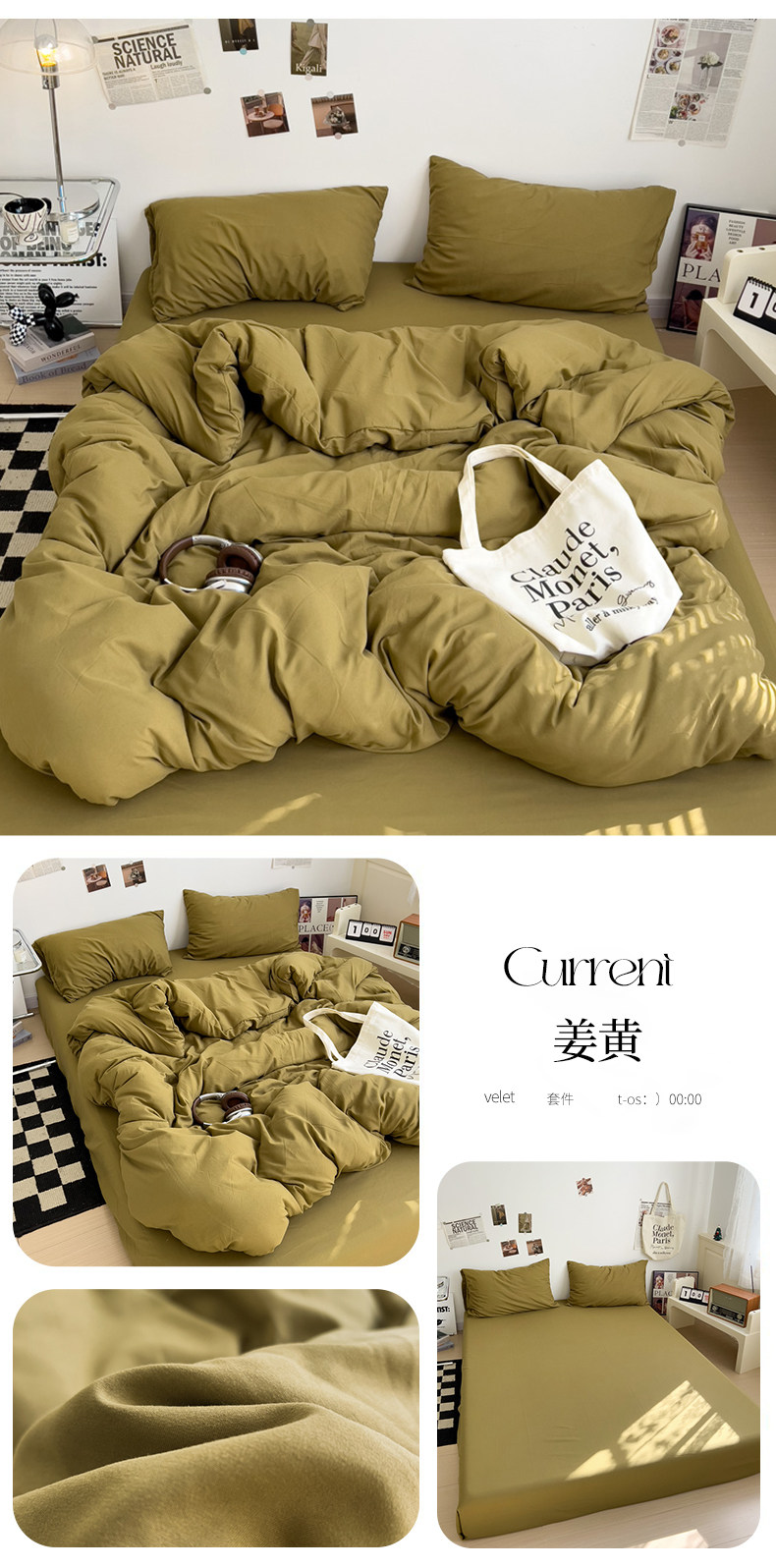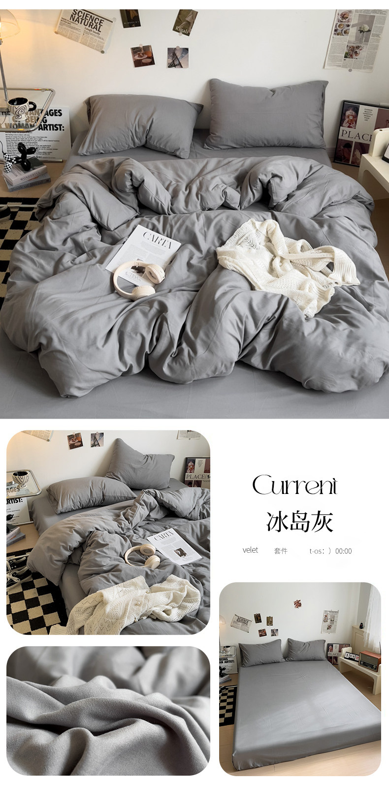 Simple Four-Piece Set, Non-Pure Cotton, All-Cotton Bed Sheet, Duvet Cover, Bedding, Student Dormitory Single Three-Piece Set, Fitted Sheet Style
