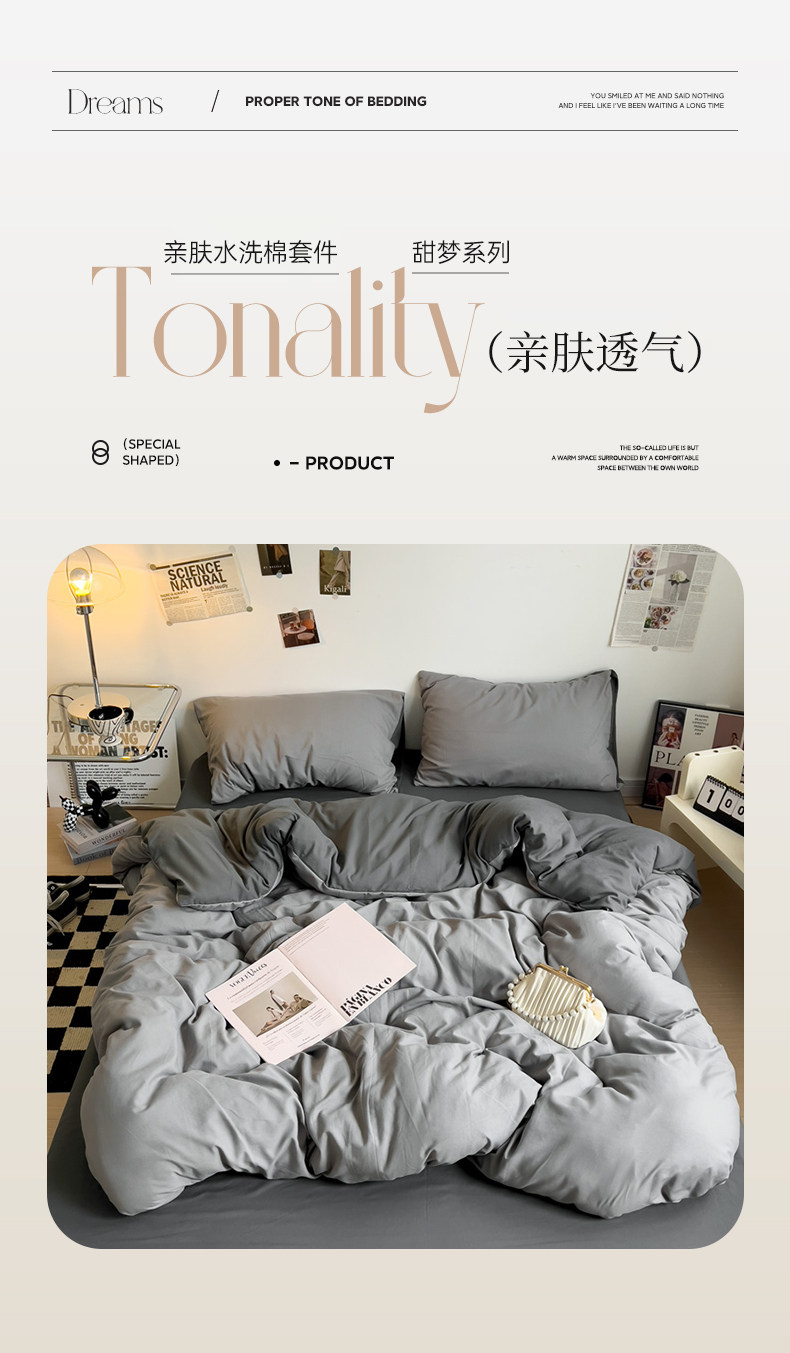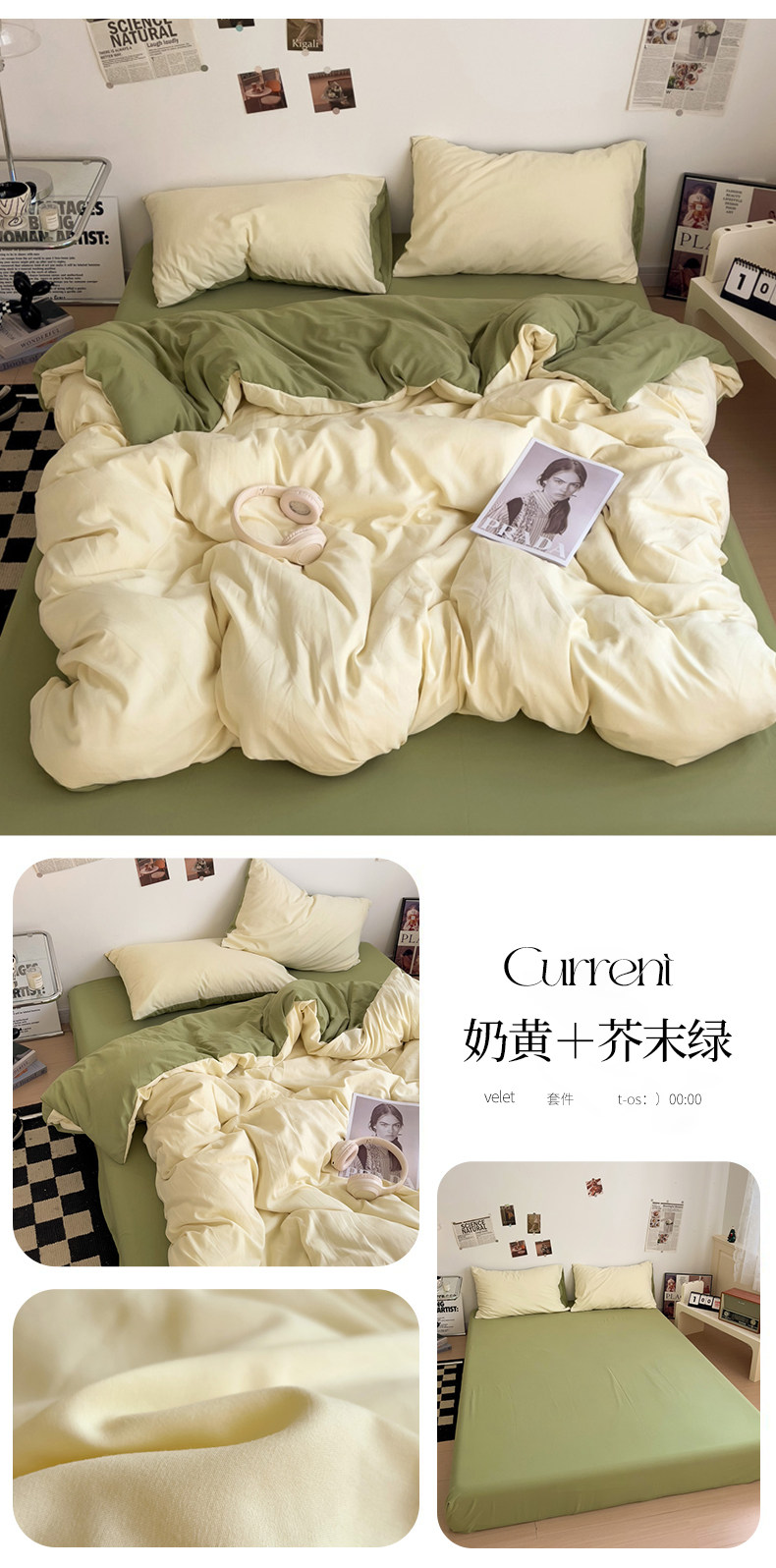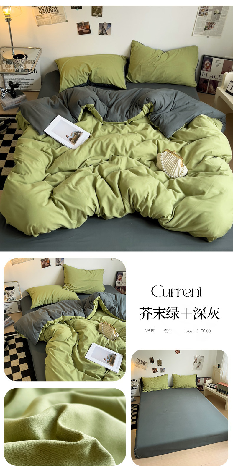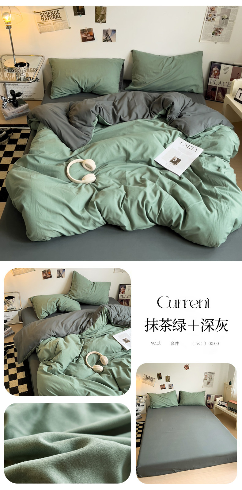 Simple Four-Piece Set, Non-Pure Cotton, All-Cotton Bed Sheet, Duvet Cover, Bedding, Student Dormitory Single Three-Piece Set, Fitted Sheet Style