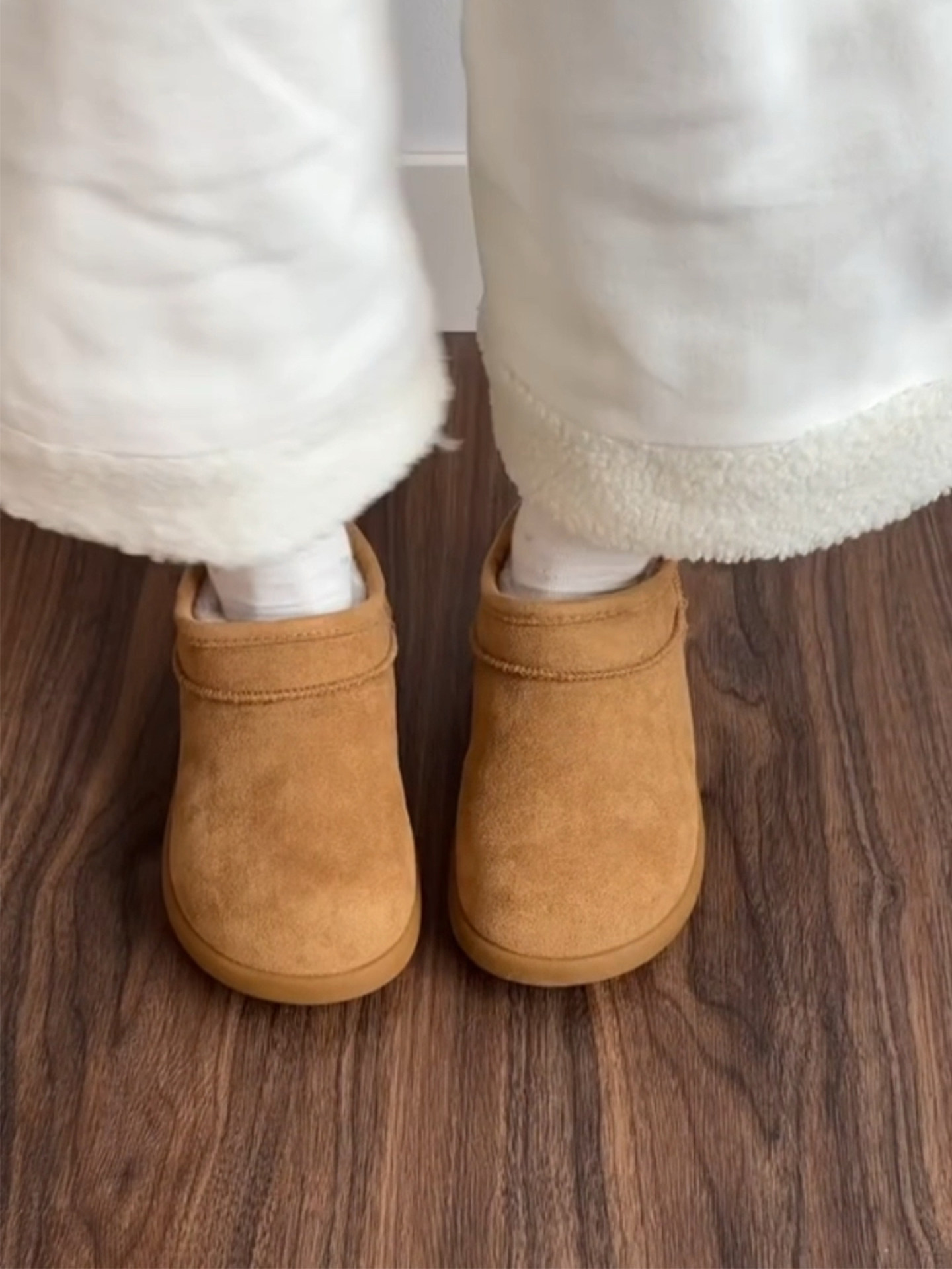 Camel-Colored Thick-Soled Snow Boots for Women, Small Potato Style, Fleece-Lined, Warm, Furry Birkenstock-Style Shoes, Winter Slip-On Cotton Short Boots