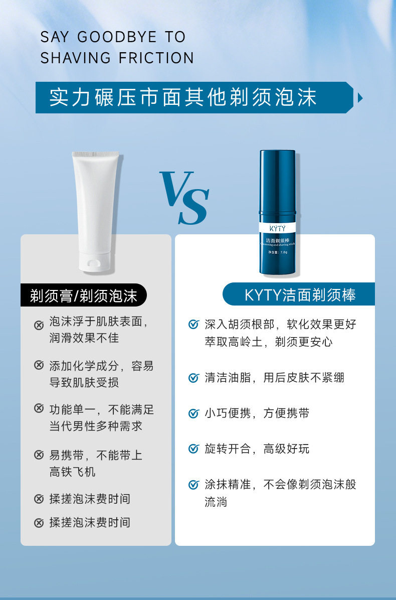 Kyty Shaving Cream Men's Special Foam Cleanser 2-in-1 Gentle Softening Beard Portable Travel Shaving Stick