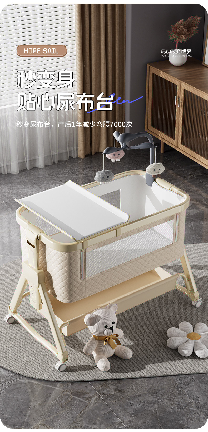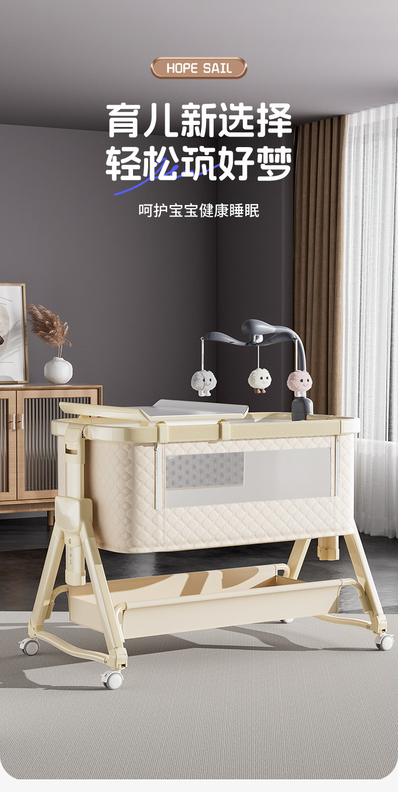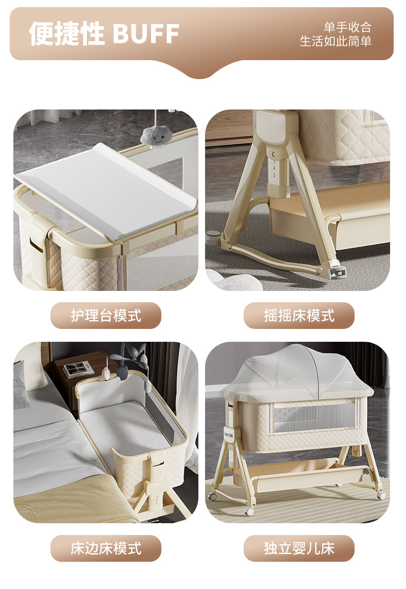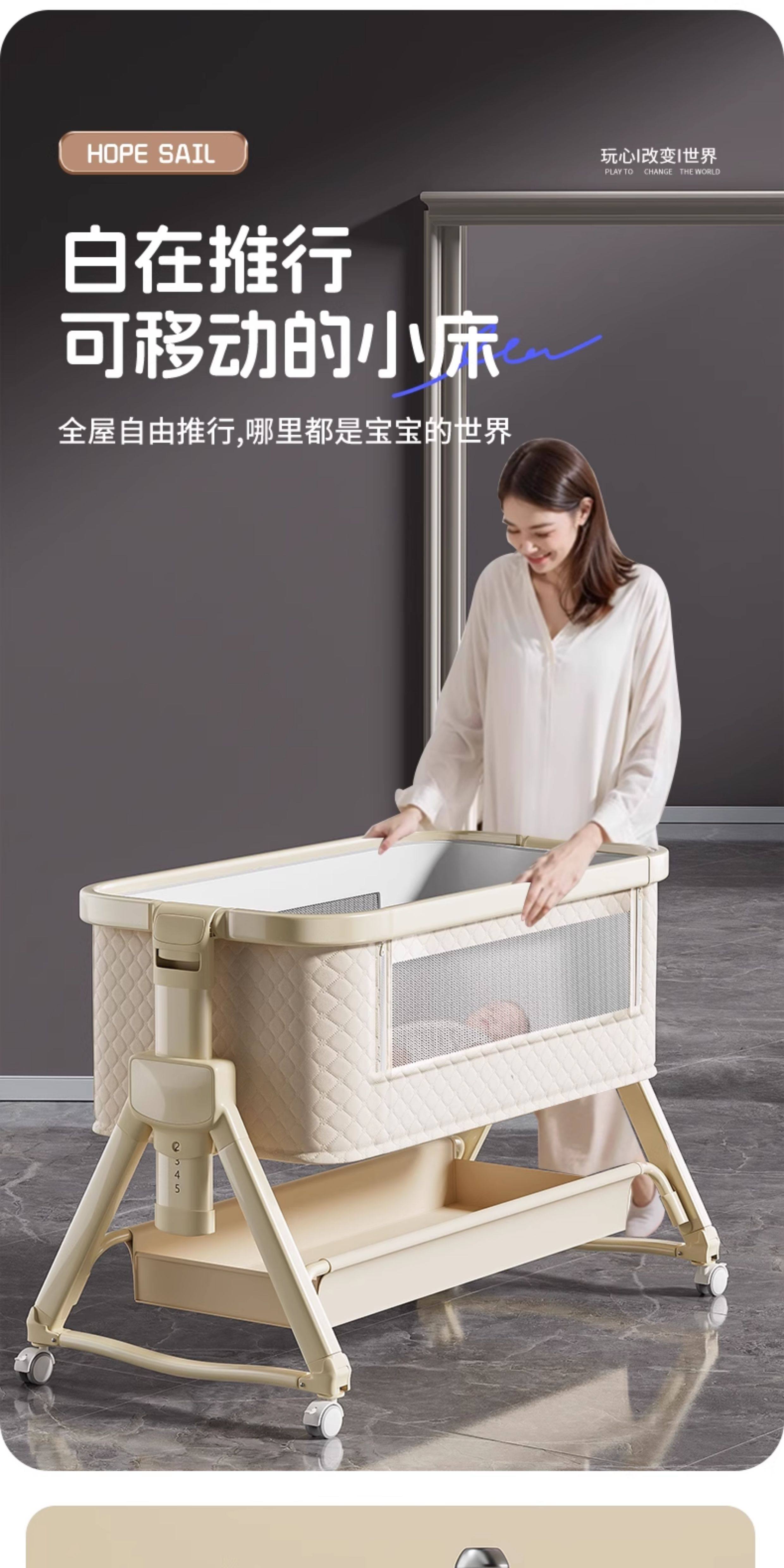Gelala Crib Movable Baby Bed Multifunctional Cradle Foldable 2025 New Model Newborn Splicing Bed