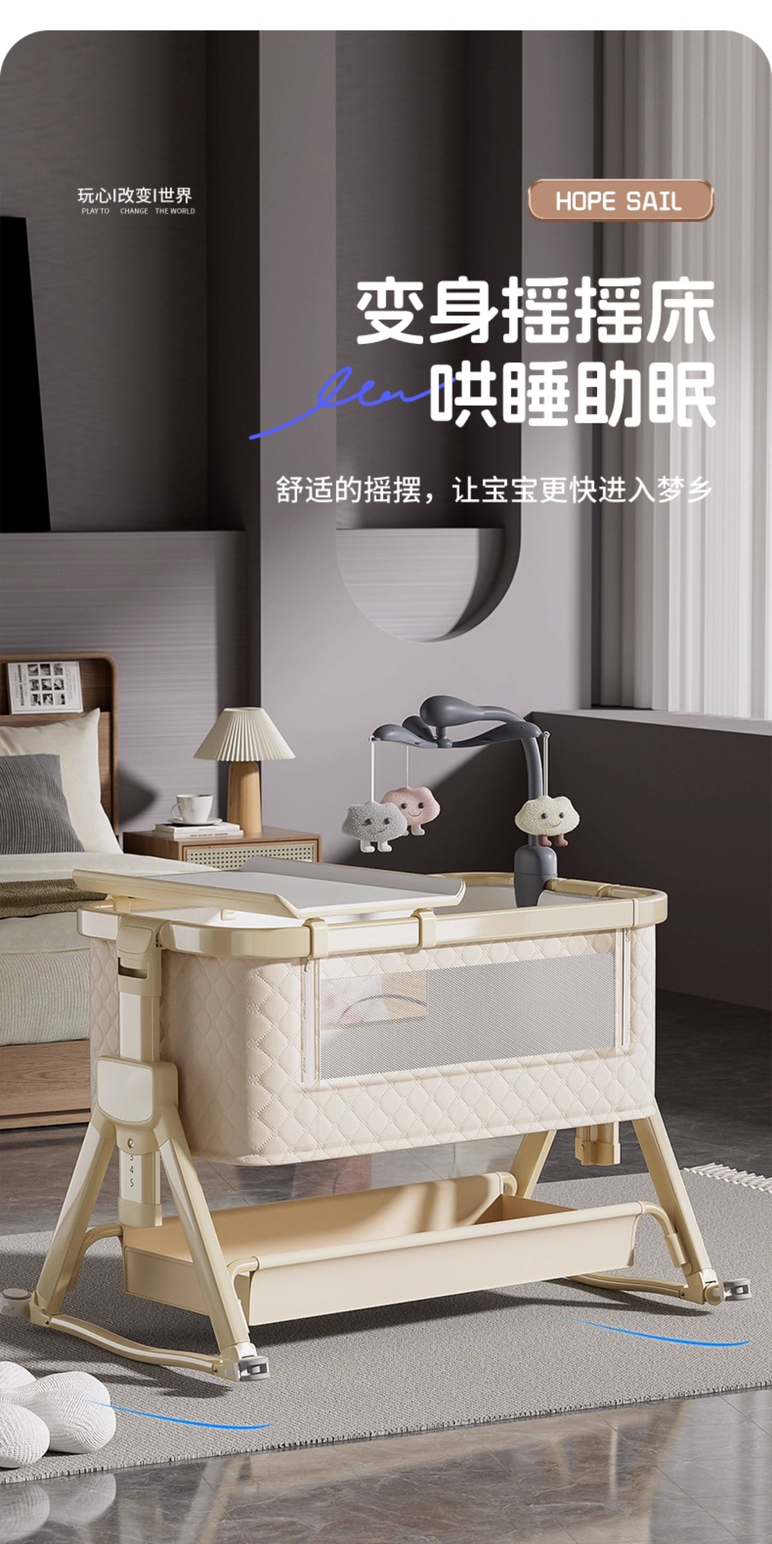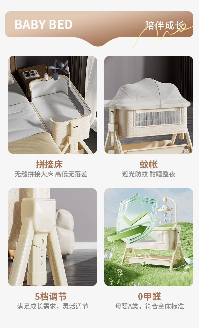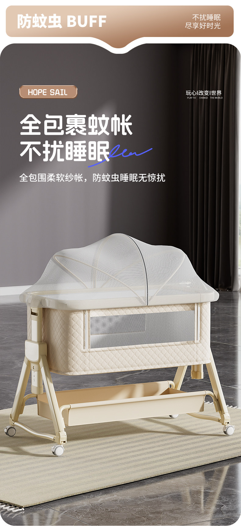 Gelala Crib Movable Baby Bed Multifunctional Cradle Foldable 2025 New Model Newborn Splicing Bed