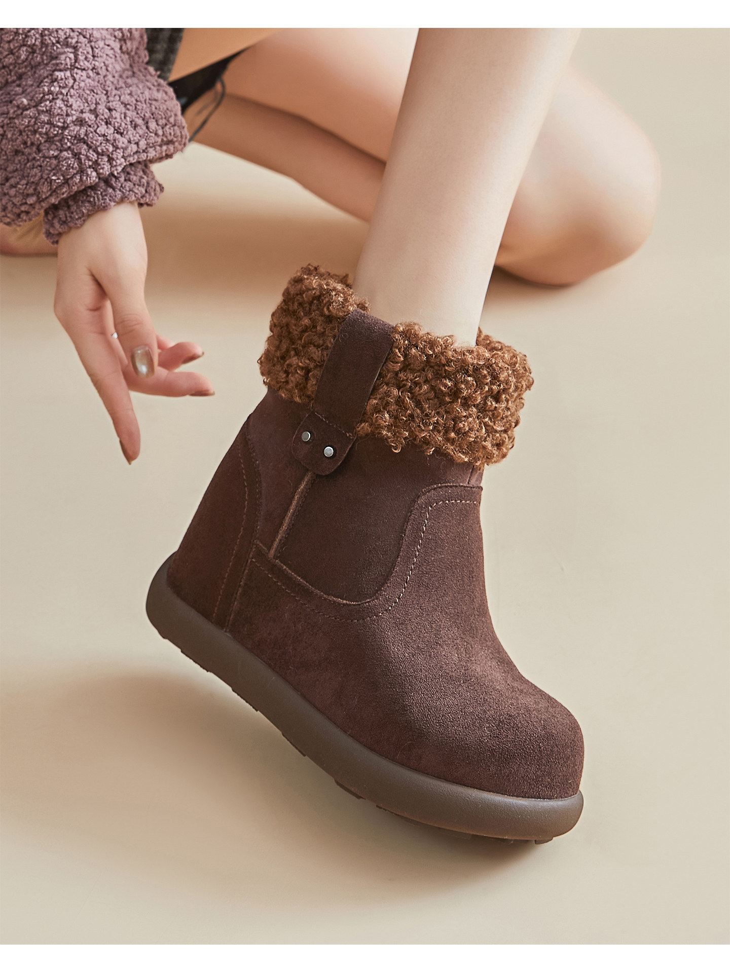Women's Winter Snow Boots 2025 New Style, Fleece-Lined and Thickened, Northeast Cotton Shoes with 10cm Thick Soles and Internal Height Increase